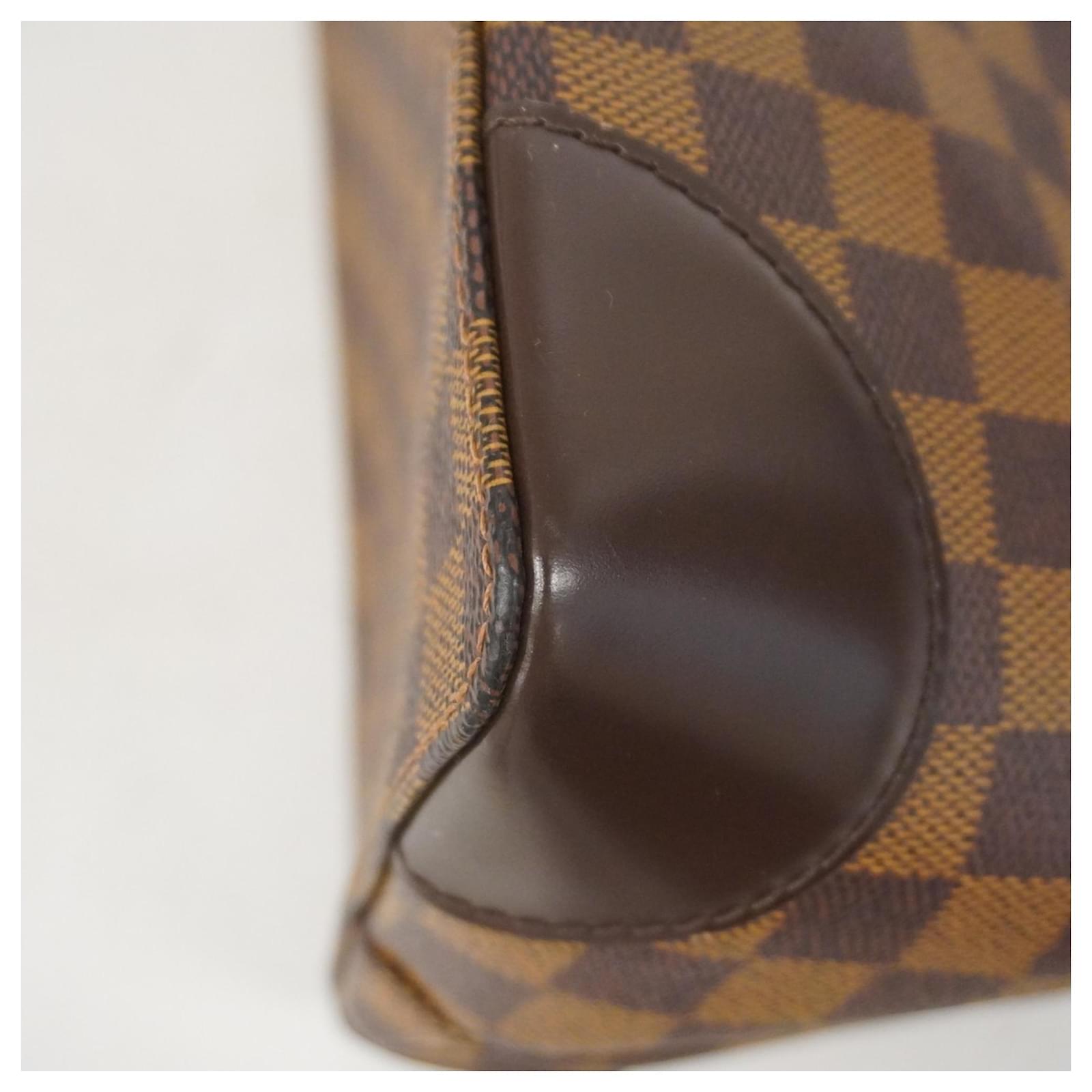 This Louis Vuitton Tote Bag, model Damier Hampstead MM N51204, is designed in a rich Ebene color. It is categorized as a used item in good condition, with slight traces of usage, including minor scratches and dirt. The seller ranks it as Rank AB, indicating it has been well-maintained despite visible signs of wear. Please refer to the provided images for a detailed view of the bag’s condition. No additional accessories are included with this purchase.
