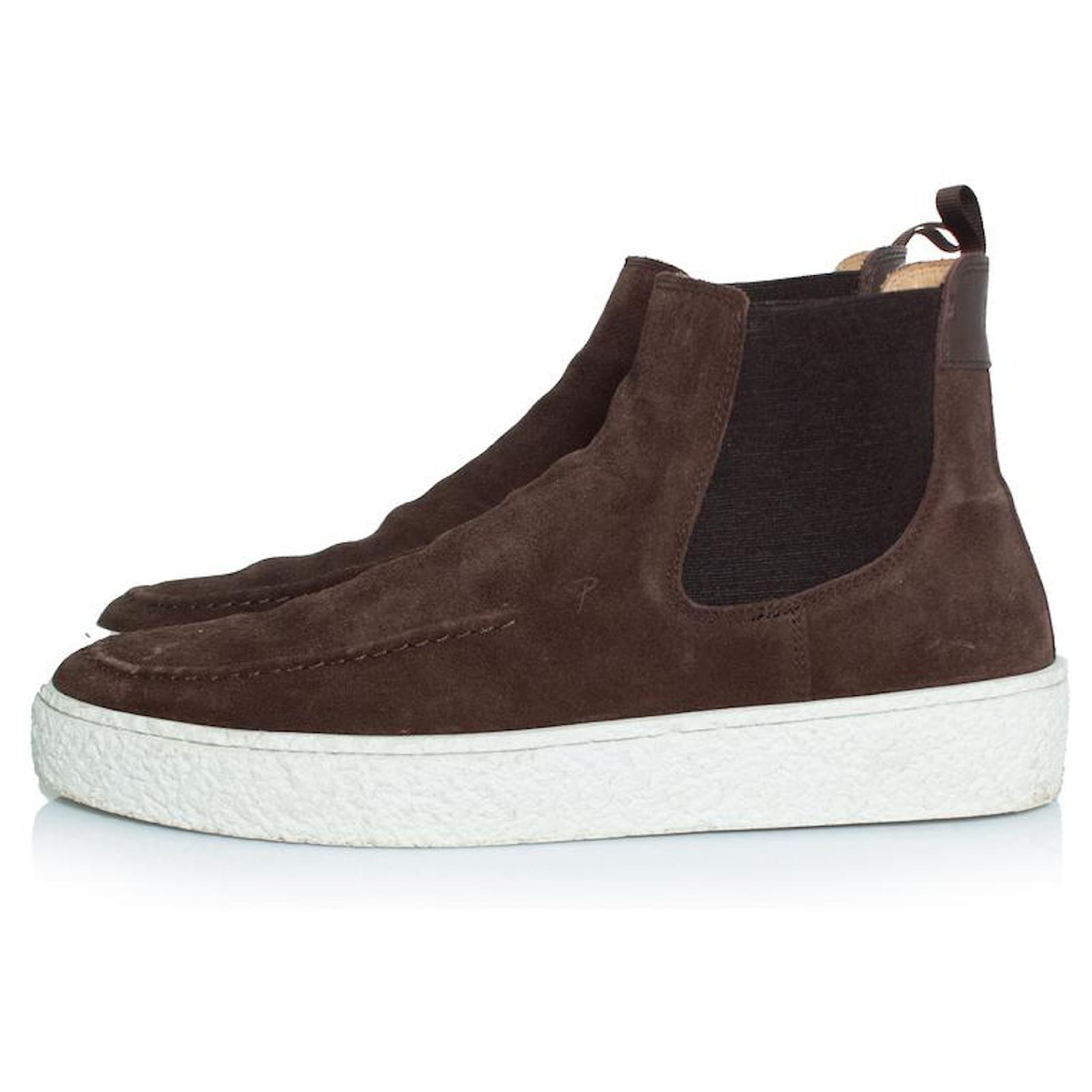 CONDITION: good condition\nSIZE: 44\nINSOLE MEASUREMENTS: 29 cm\nHEEL MEASUREMENTS: 3.5 cm PLATFORM: 2.5 cm\nSHAFT HEIGHT: 12.5 cm WIDTH TOP: 12 cm\nMATERIAL: suede\nCOLOUR: brown\nITEM LOCATION: The Netherlands\nITEM NUMBER: 8615\n