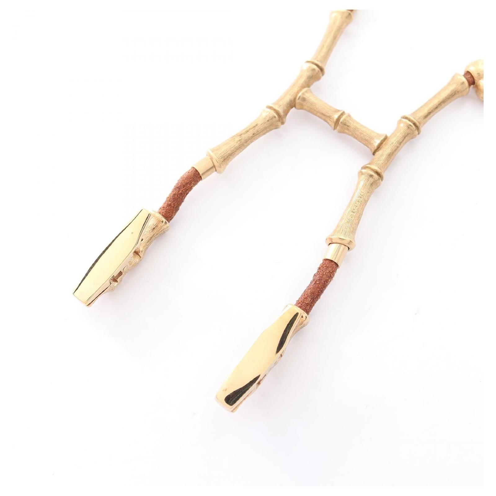 – General information -\nBrand : HermesItem name : Hermes Bamboo Bustier Leather NecklaceModel number : – Design -Type : NecklaceMaterial : LeatherColor : BrownGender : Female- Size -Size : Chain Length(cm) : 31-60Top Width(cm) : 4Top Length(cm) : 9.5Meterail : Leather, Gold-plated- Inventory -Serial Number : SKU : 1202450012061500A0025839874- Included Items -Accessories : null*Before purchasing, please refer to the images of the accessories included with the item.- Condition -Condition : Very Good ConditionRank : Used A Used condition with some scratches and stains.Condition Notice : Before purchasing, please refer to the images for the exact condition of the item. Measurments: width: 40 mm height: 95 mm \n Product Id: 524545 \n
