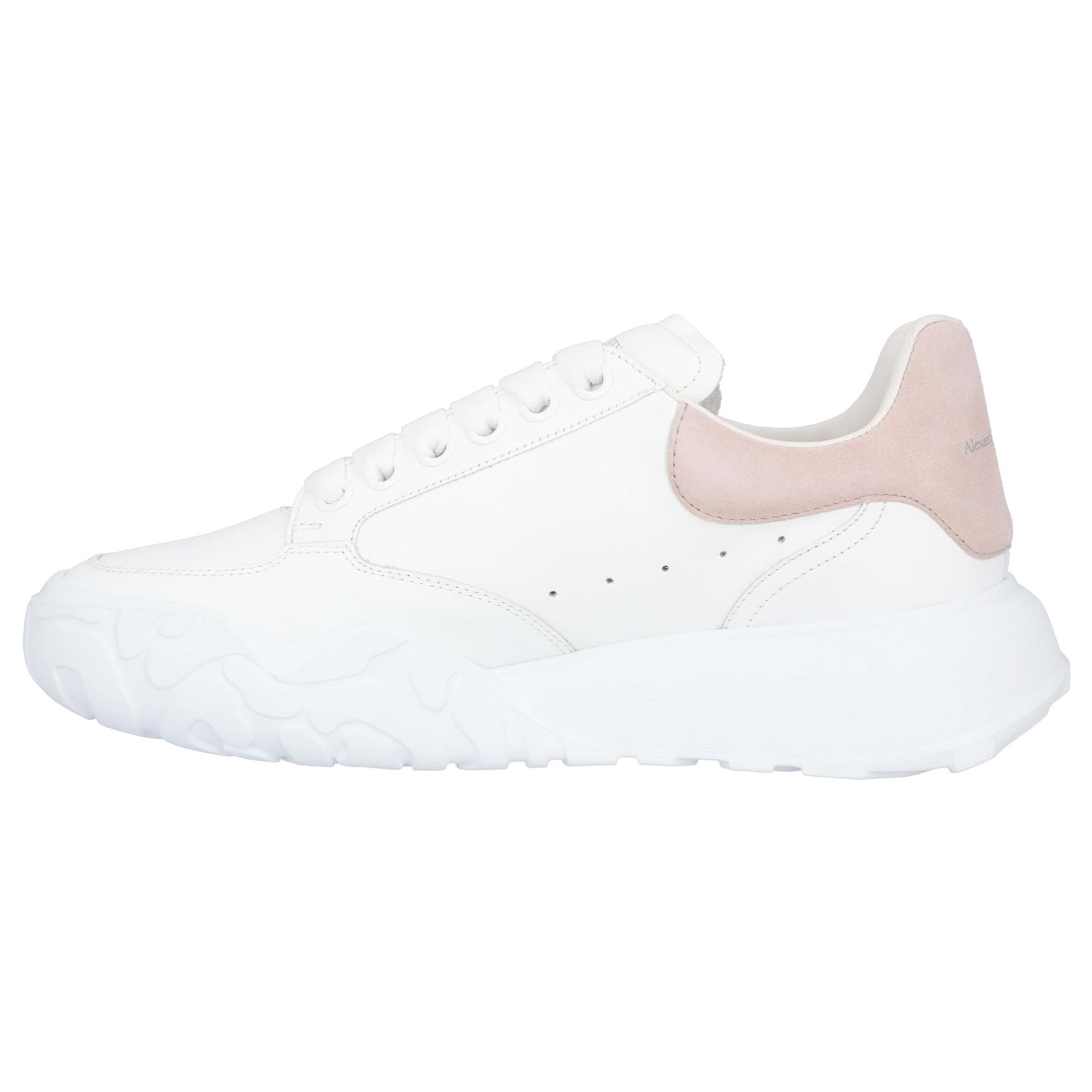 – Court’ white nappa sneakers with contrast suede insert on the heel, rubber sole closure with leopard pattern, logo print on the tongue and heel tab \n Product Id: 461976 \n