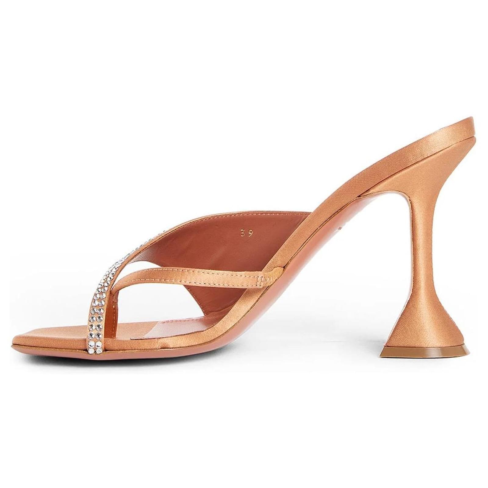 \nComposition: 100% Silk \n\nInner: Leather\nInsole: Leather\nSole: Leather\nSquare toe\nHeel 9,5 cm\nTop crystals detaiil\nThong strap\nPyramid heel\nMade in Italy\nGender: WOMEN\nProduct code: SHIONASLIPPER_LATTEWHIYE\nCode: SHO 1N 2 SN SS25 12833\n \n Product Id: 511959 \n