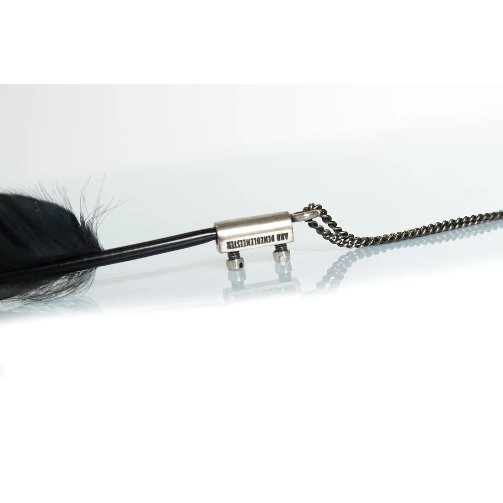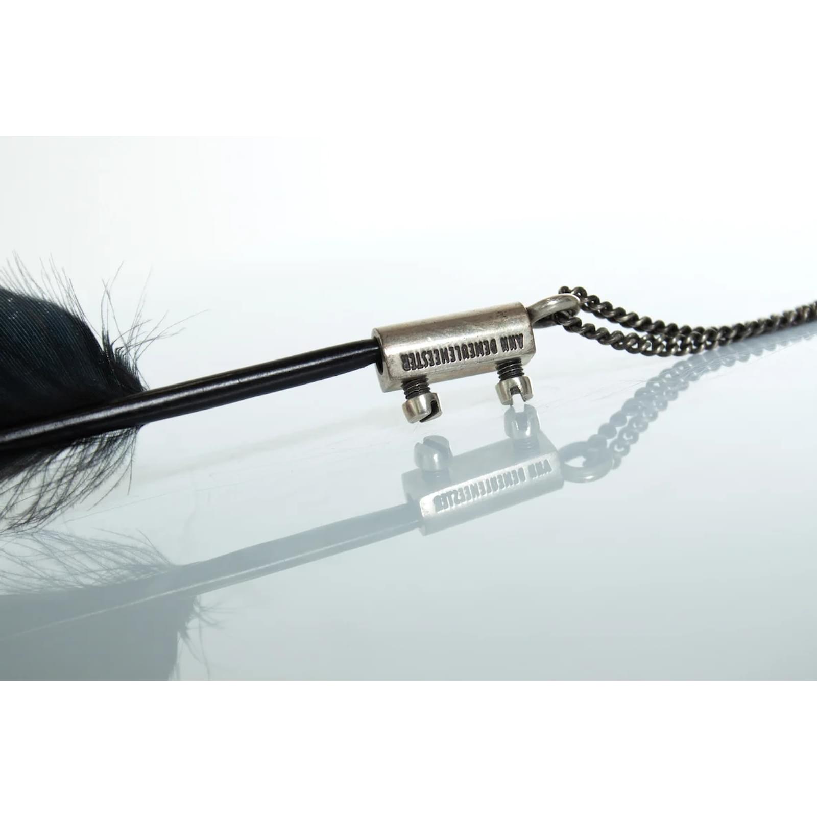 CONDITION: very good condition\nSIZE: one size\nMEASUREMENTS: length with feather 61 cm, length feather 18\nMATERIAL: metal\nCOLOR: silver, black\nPRODUCT LOCATION: the netherlands\nPRODUCT NUMBER: 8926\n