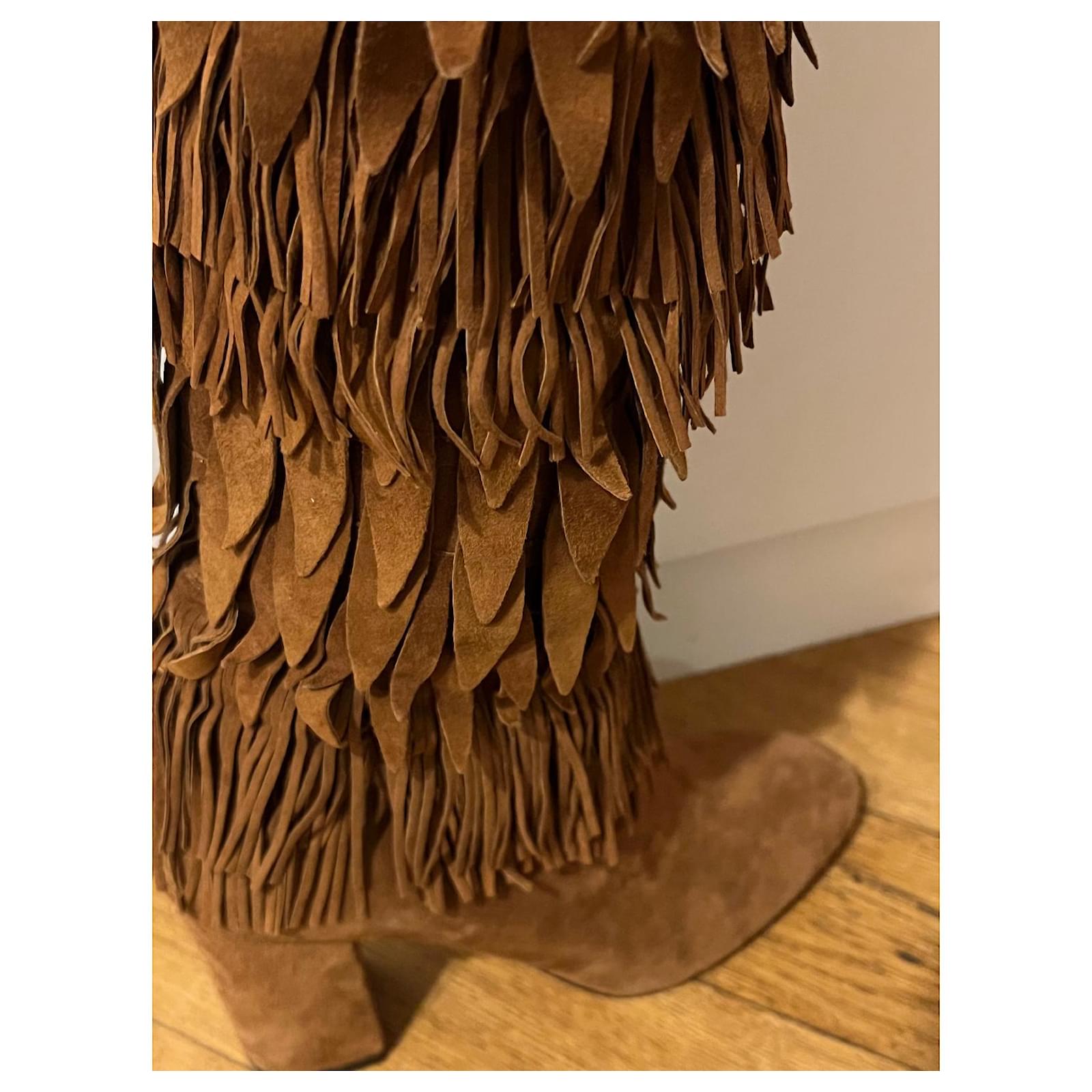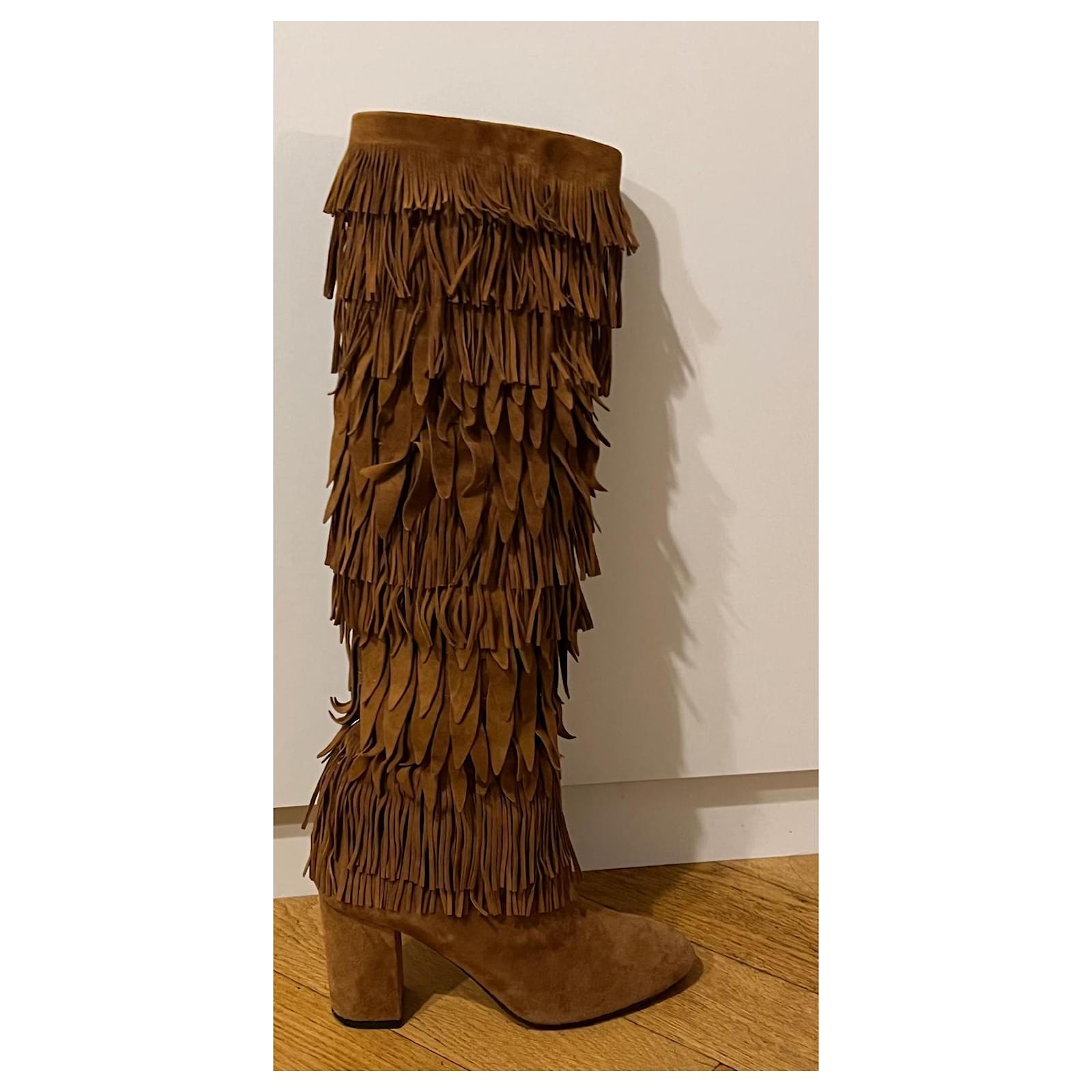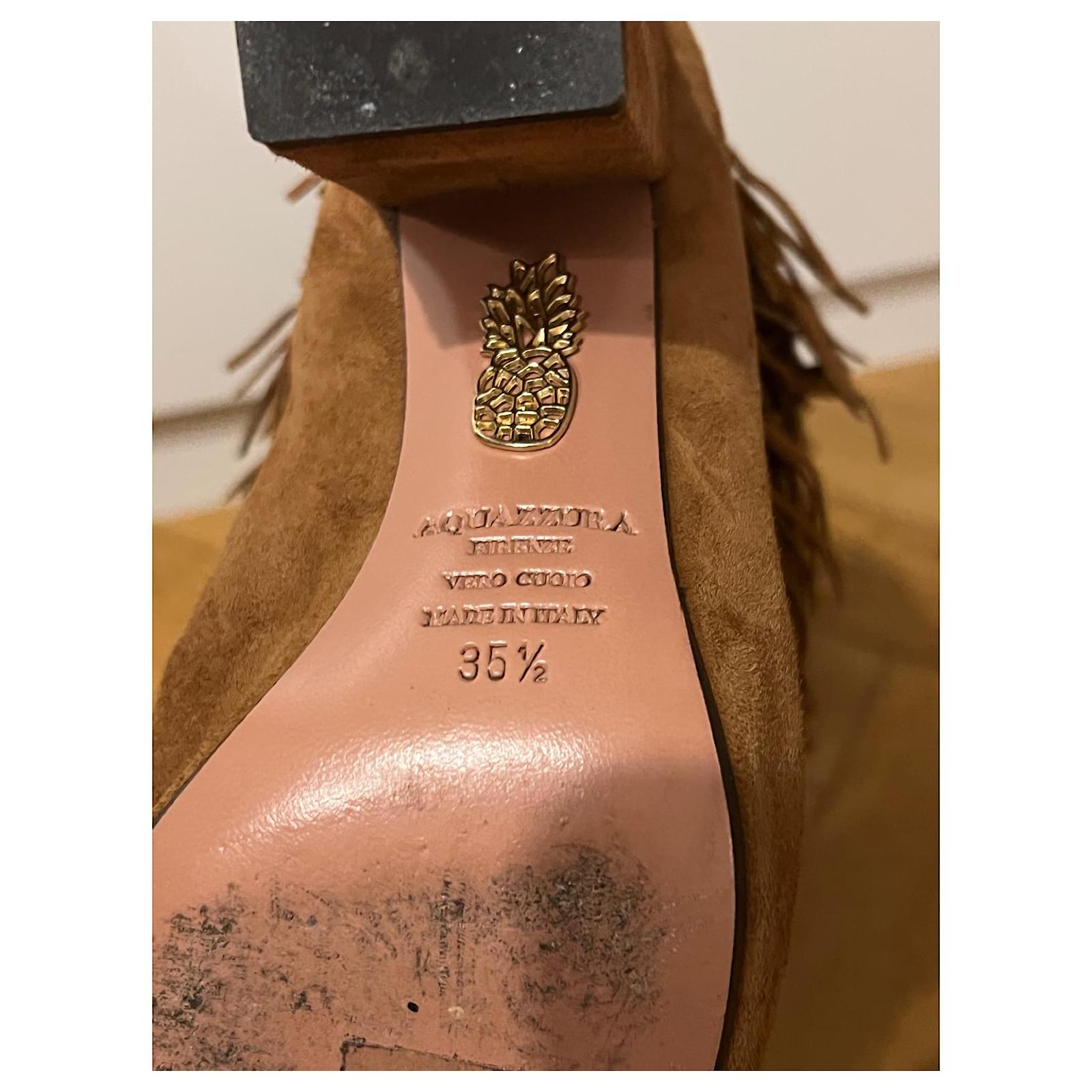 Aquazzura fringed camel suede boots, 8 cm heel, size IT 35.5.