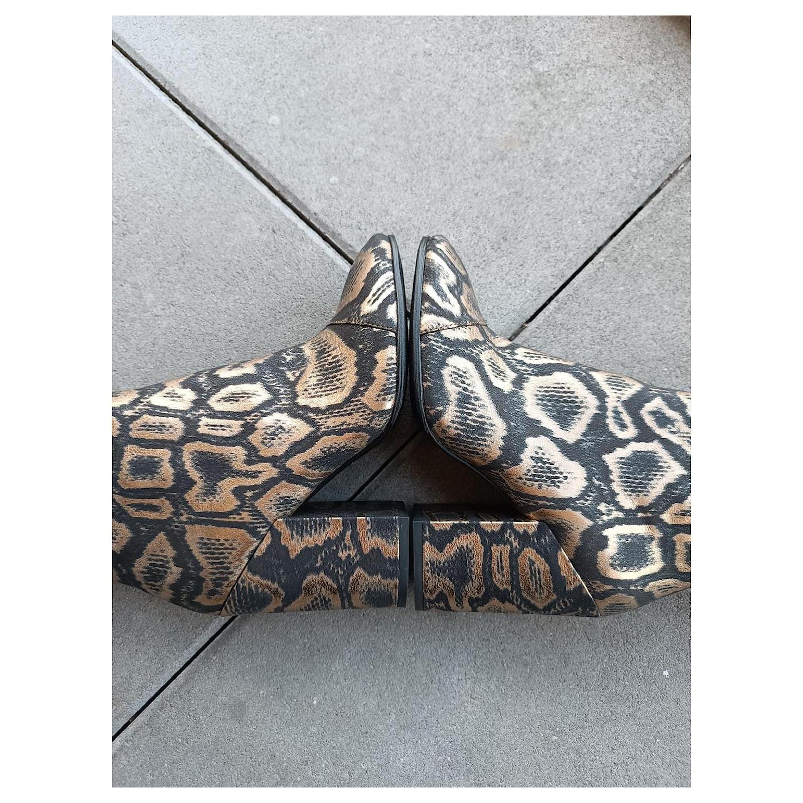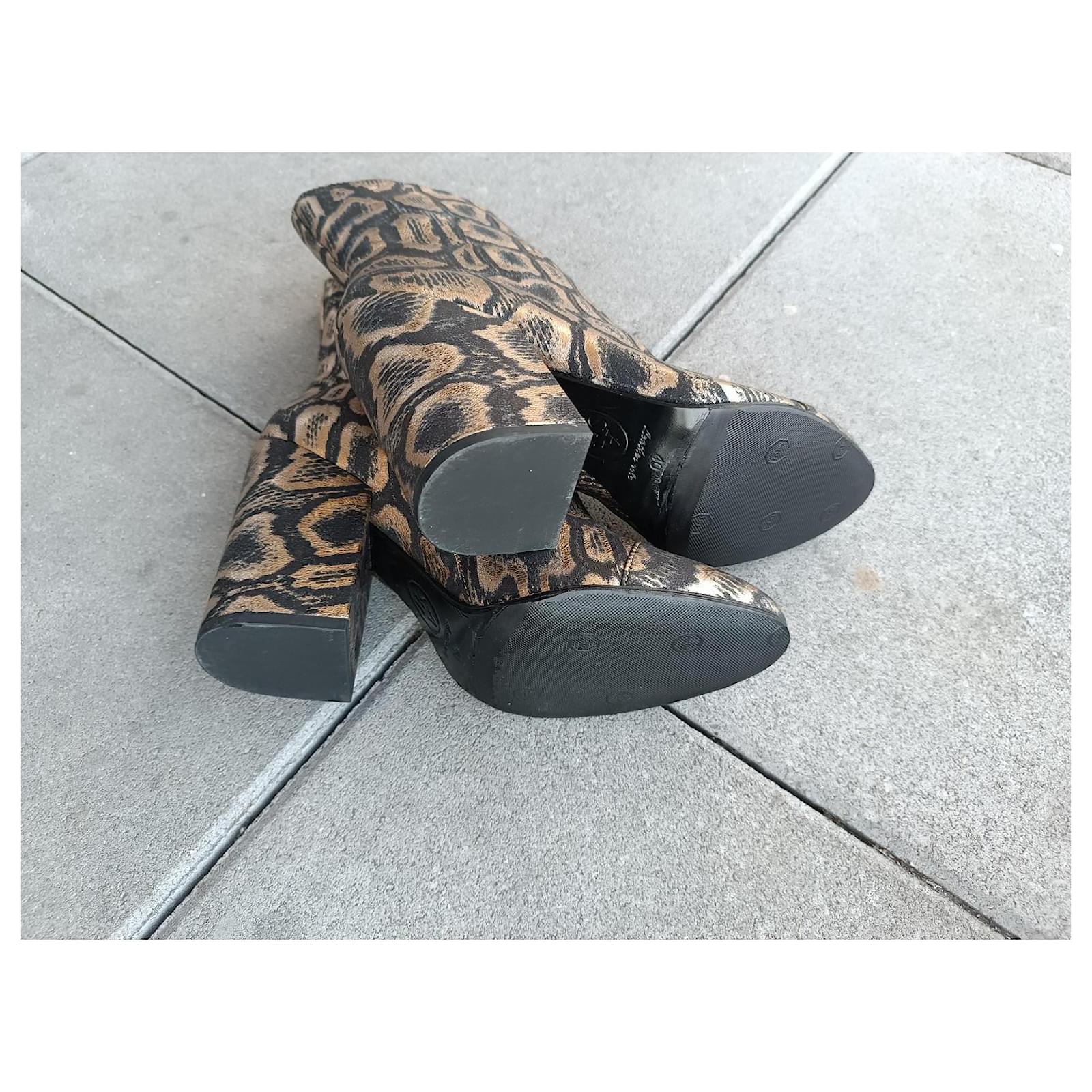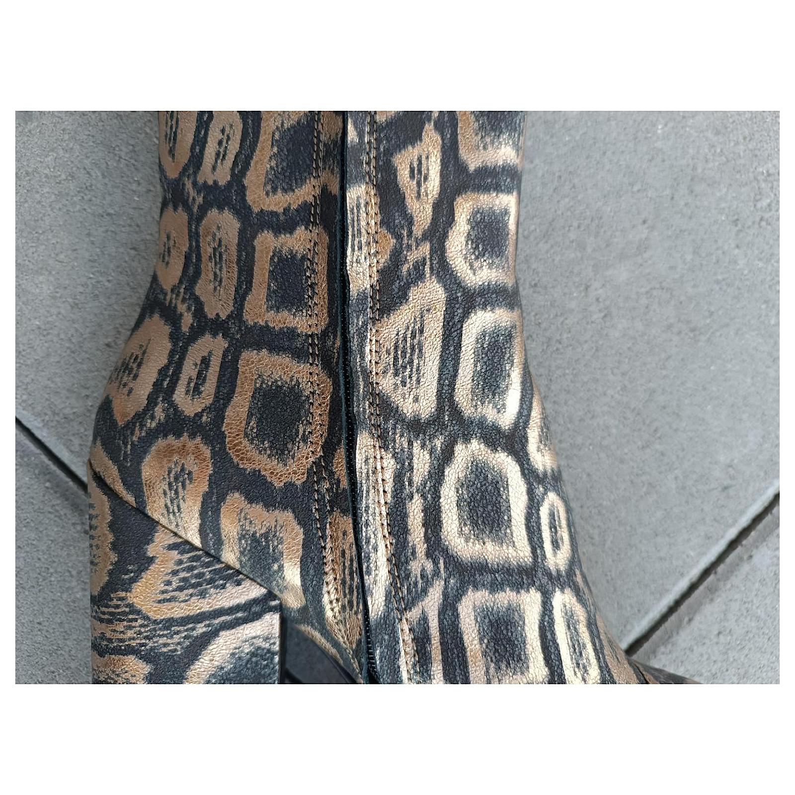 – New Ash ankle boots never worn, just tried on and then resoled – in golden/black fabric – zipper on the inner side – size 40 FR – inner sole length approximately 27 cm – heel height approximately 10.5 cm