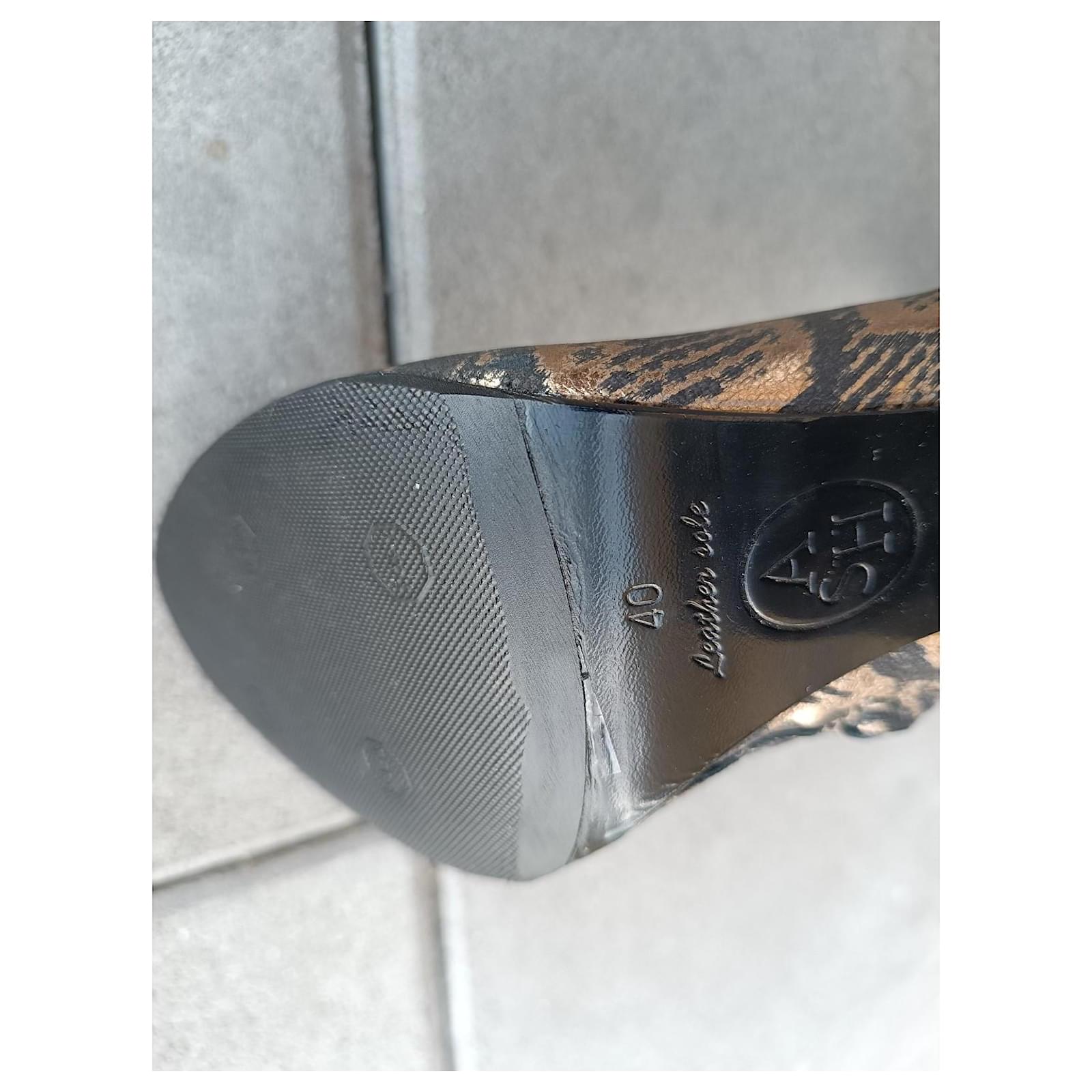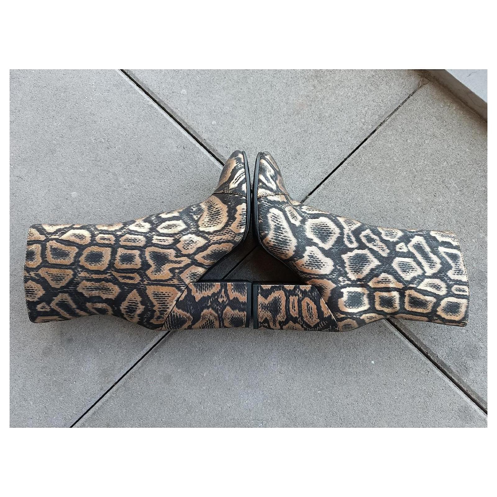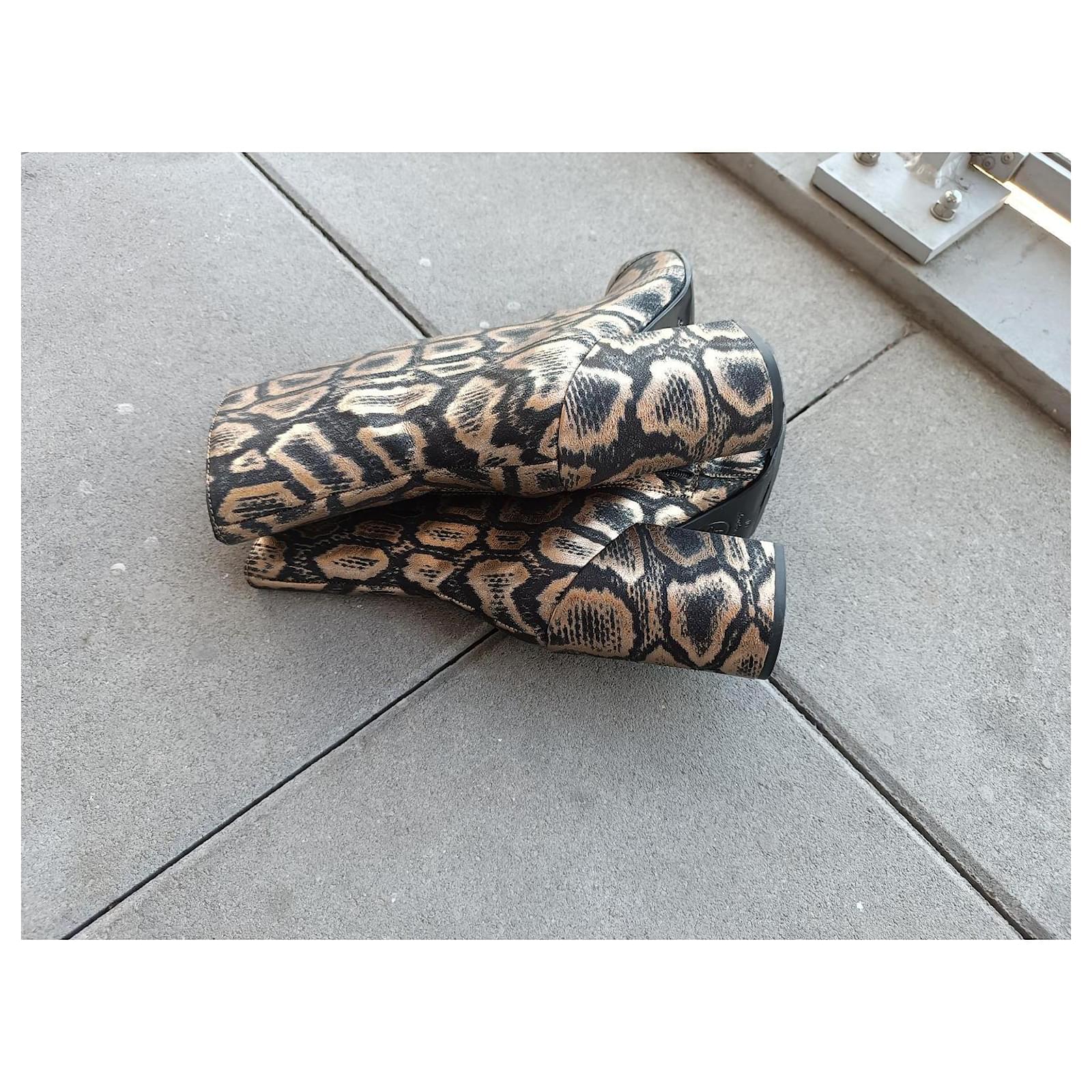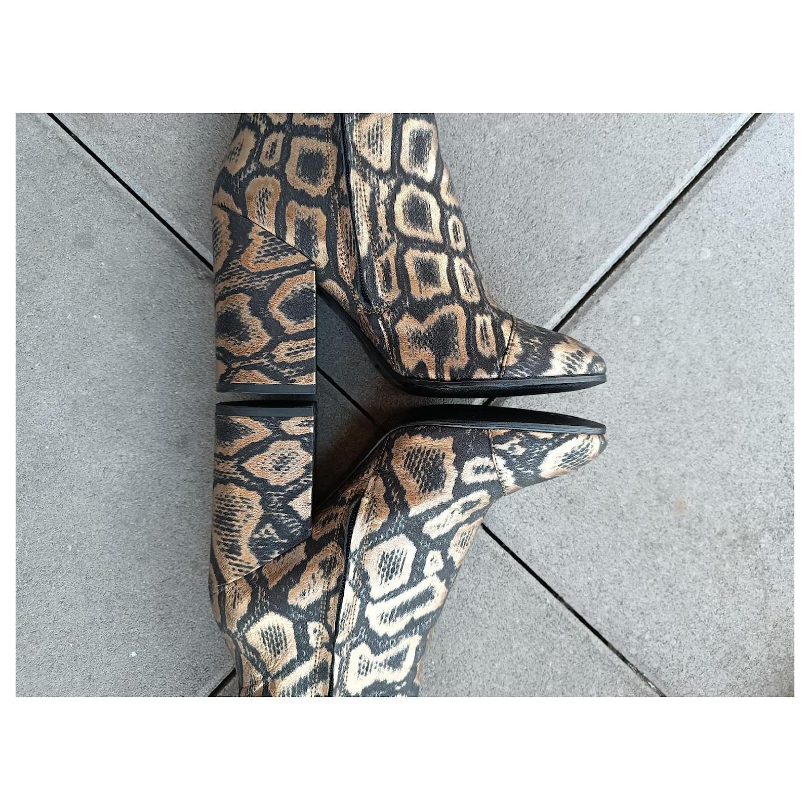 – New Ash ankle boots never worn, just tried on and then resoled – in golden/black fabric – zipper on the inner side – size 40 FR – inner sole length approximately 27 cm – heel height approximately 10.5 cm