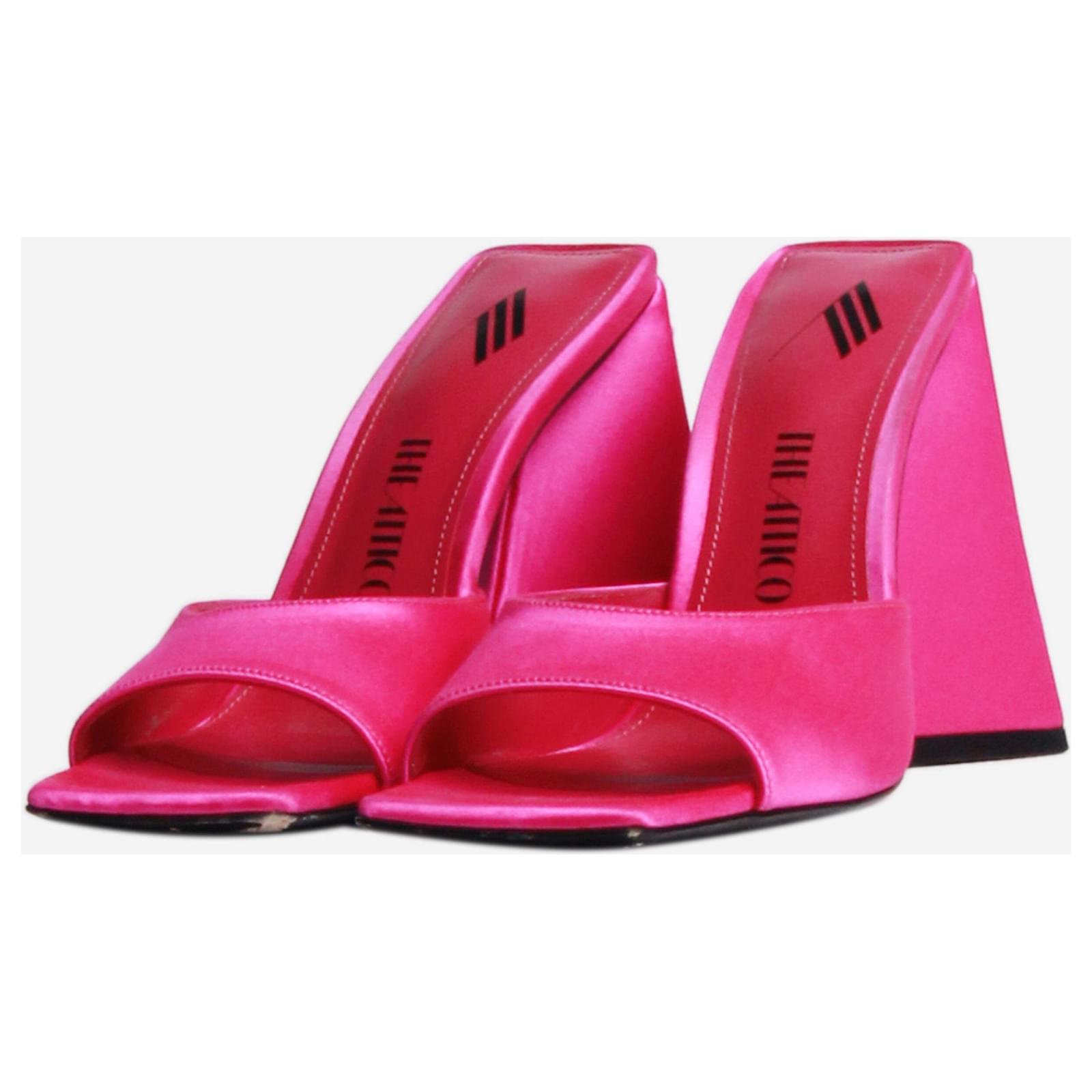 The Attico pink Devon satin mules.\nCondition: This item is in very good pre-owned condition, showing little sign of wear.\nMaterial: Satin\nSize: EU 36 (UK 3)\nComes with: Dustbag and box\nHeel height: 10 cm\n
