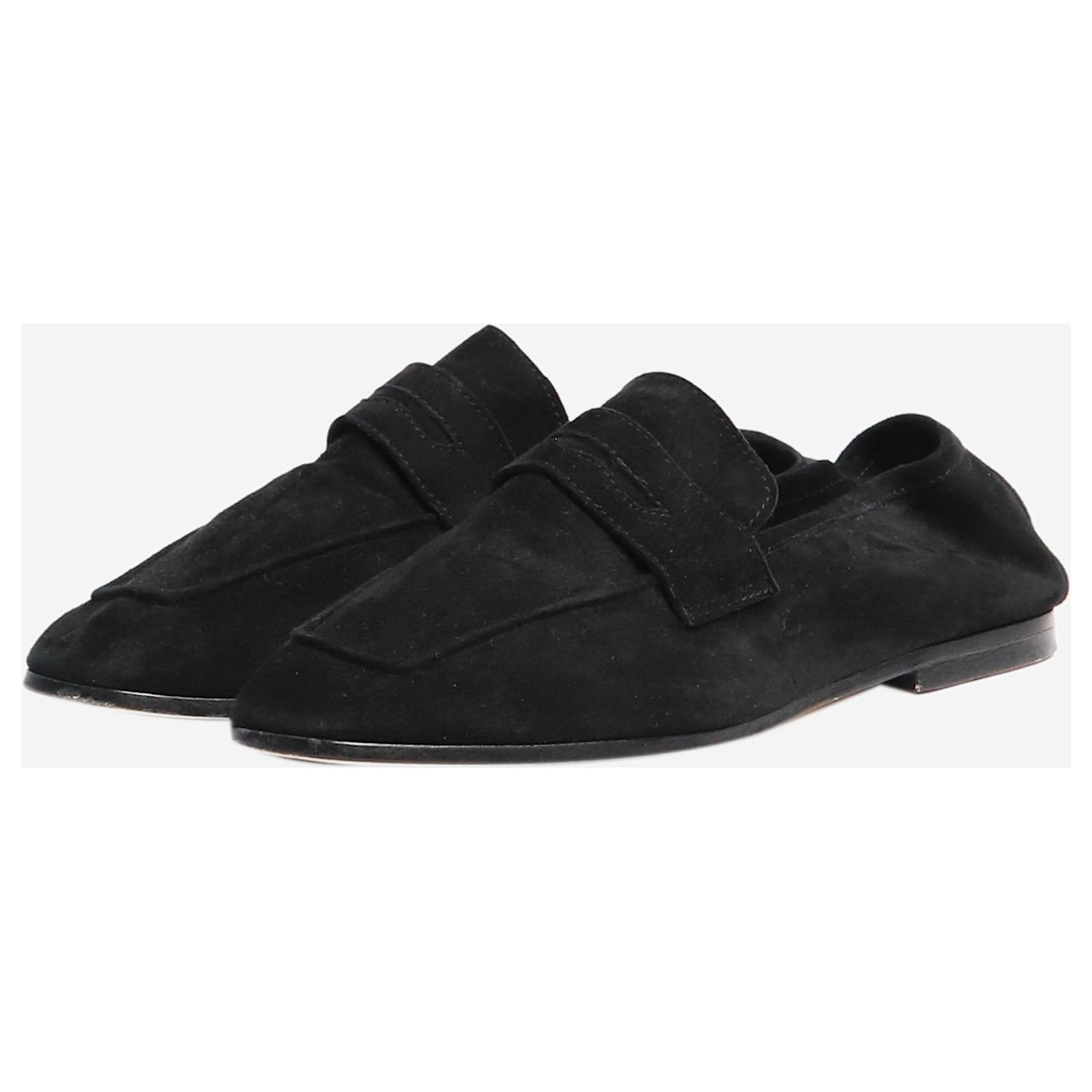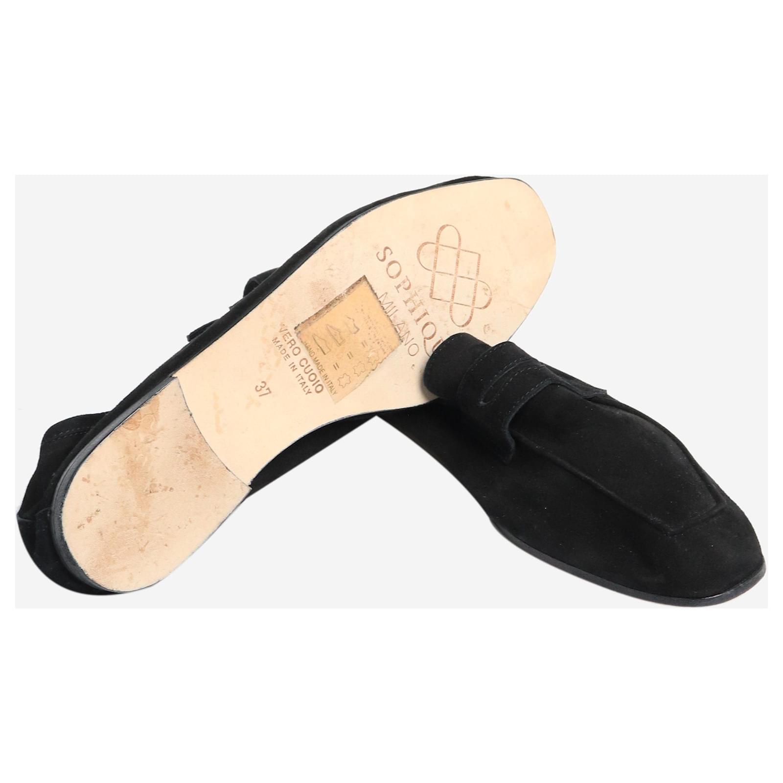 Sophique Milano black suede loafers.\nCondition: This item is in very good pre-owned condition, showing no significant signs of wear.\nSize: EU 37 (UK 4)\nMaterial: Leather\nComes with: Dust bag\nHeel height: 1 cm\n