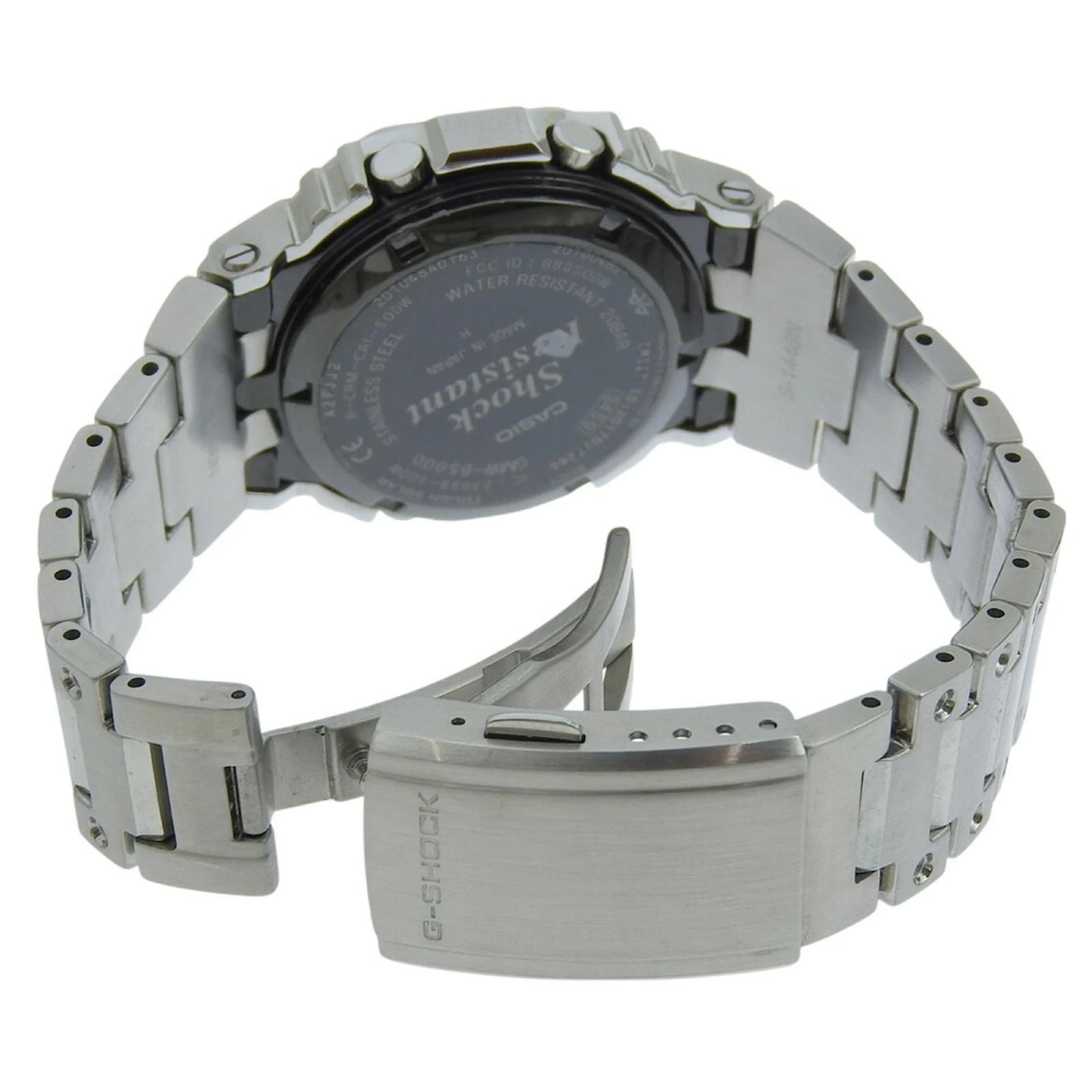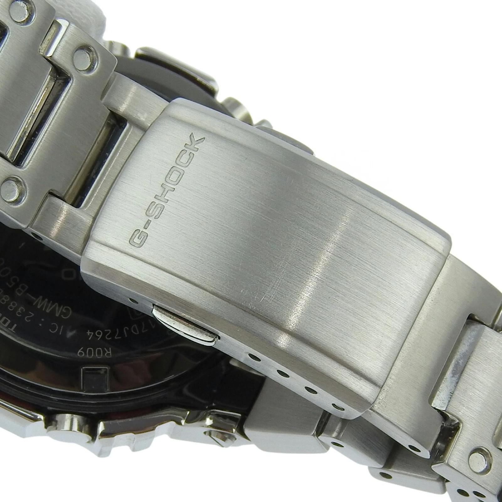 The Casio G-SHOCK GMW-B5000 is a men’s wristwatch featuring a black dial and a durable stainless steel case and band. This model utilizes radio wave control solar movement, ensuring accurate timekeeping. With a case diameter of 43.5mm and a wrist size accommodating up to 20cm (7.87 inches), it offers a comfortable fit. \n\nThis particular watch is in very good used condition, classified as Rank A, with insignificant scratches on the bezel, case, and band, while the dial and glass remain free of any scratches. Please refer to the images for a detailed view of the item’s condition and included accessories, as none are provided with the watch.