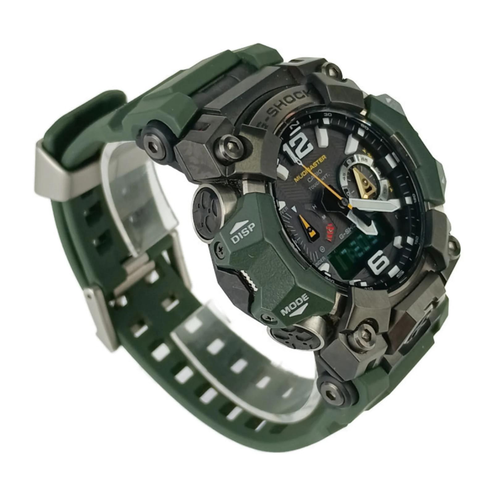 The Casio G-SHOCK MUDMASTER GWG-B1000-3AJF is a men’s wristwatch featuring a black dial and a combination of resin and stainless steel materials. This timepiece is powered by a radio wave control solar movement, ensuring accurate timekeeping. It is designed to fit a wrist size of 21.5cm (8.46 inches). \n\nThis watch is in very good used condition, with insignificant scratches on the bezel, case, and crown, while the dial and glass remain free from any scratches. It is important to review the provided images for a detailed view of the item’s condition. The watch does not come with any accessories. \n\nOriginating from Japan, this Casio model reflects the brand’s commitment to durability and functionality.
