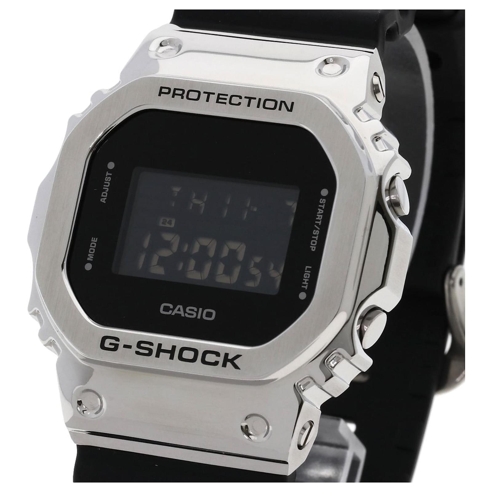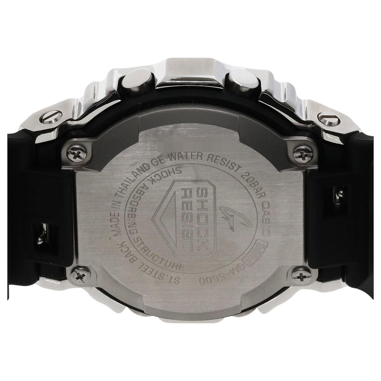 The Casio GM-5600 G-Shock Watch features a black dial and is designed for durability with a stainless steel case and a rubber band. It operates on a quartz movement and accommodates wrist sizes ranging from 13cm to 22cm (5.11” to 8.66”) with a case diameter of 43.5mm (1.71”). This used watch is in very good condition, showing only slight scratches on the case and crown, while the bezel, dial, and glass remain free of scratches. The item is ranked as \”A\” for its overall condition, indicating minimal signs of wear. Please refer to the images for a detailed view of the watch’s condition and included items.