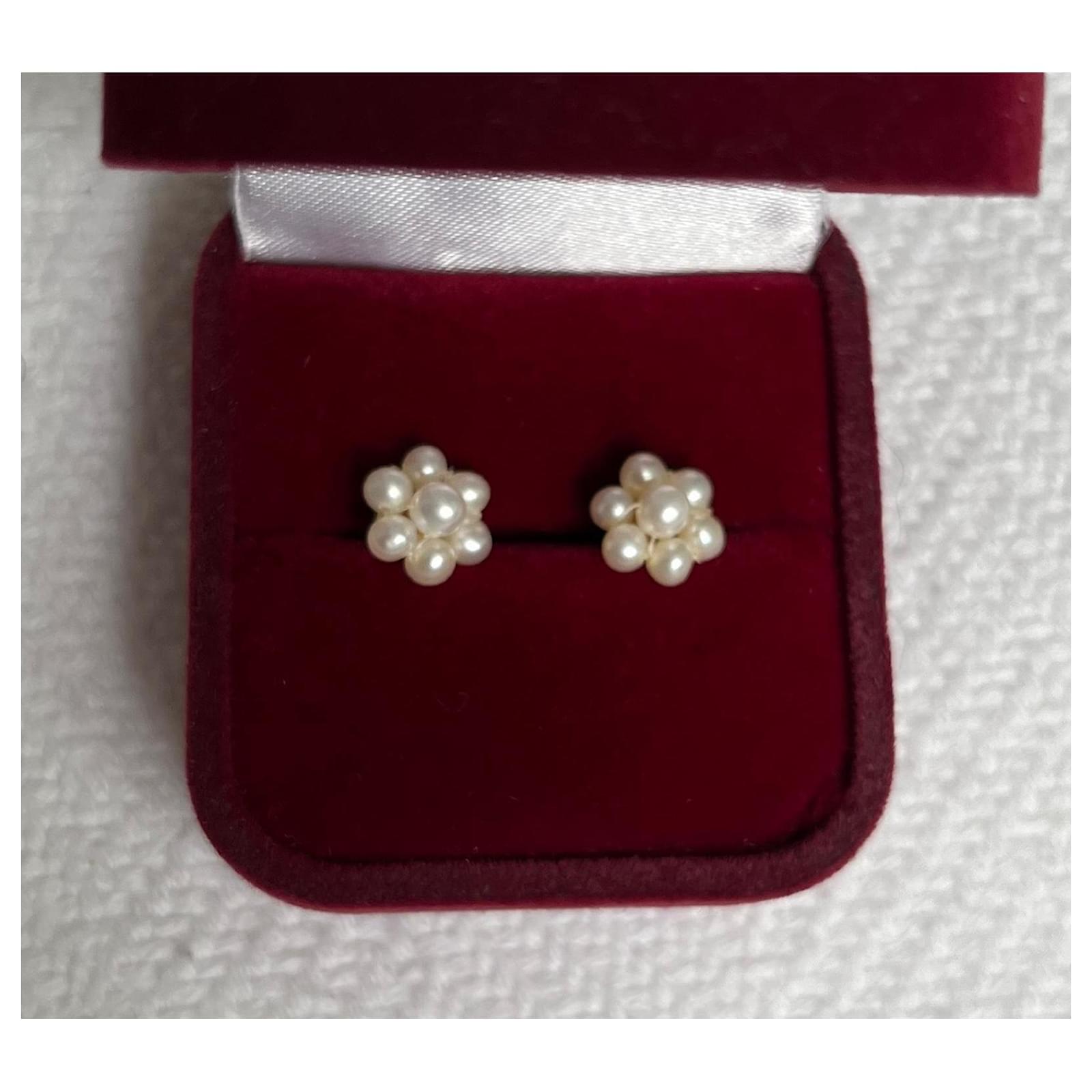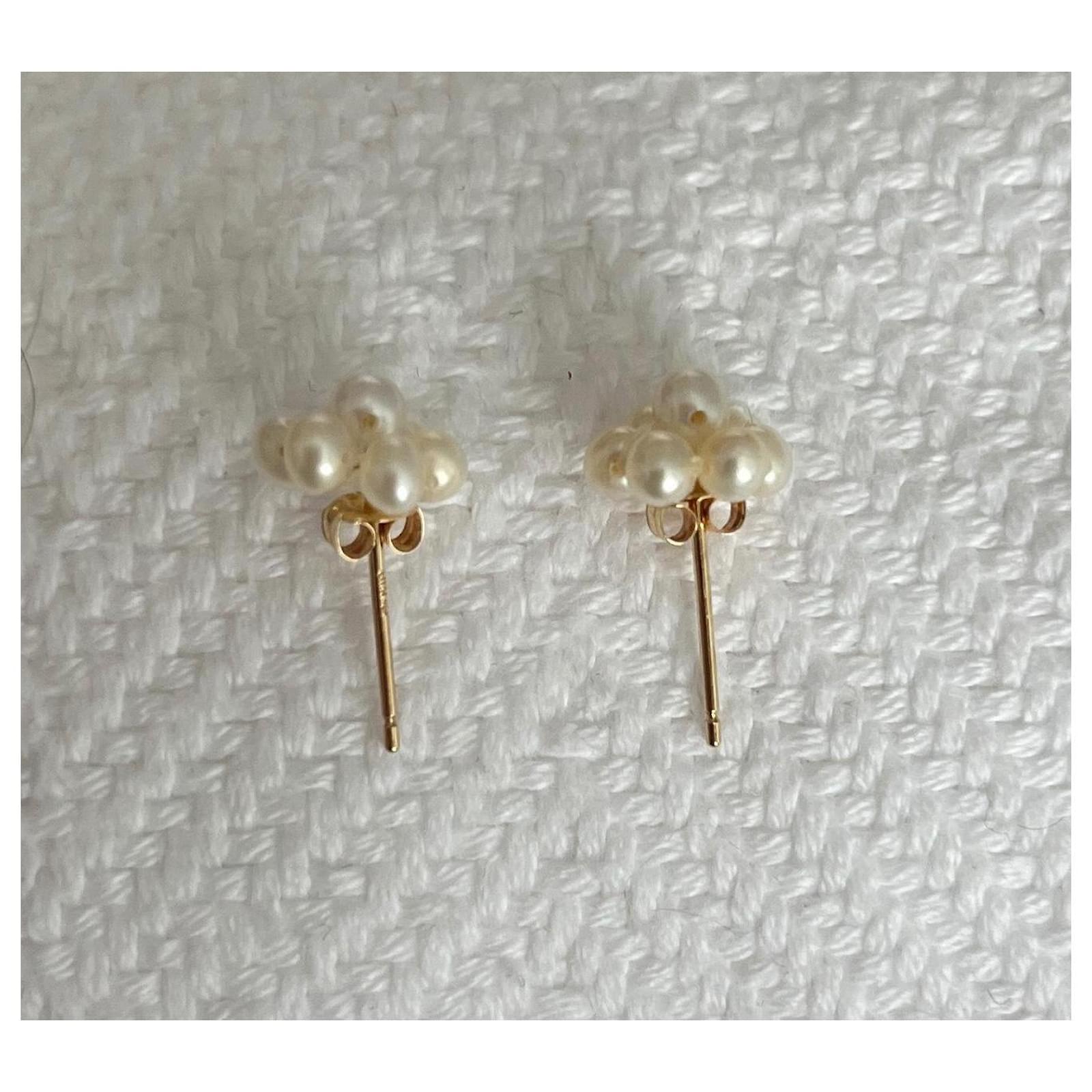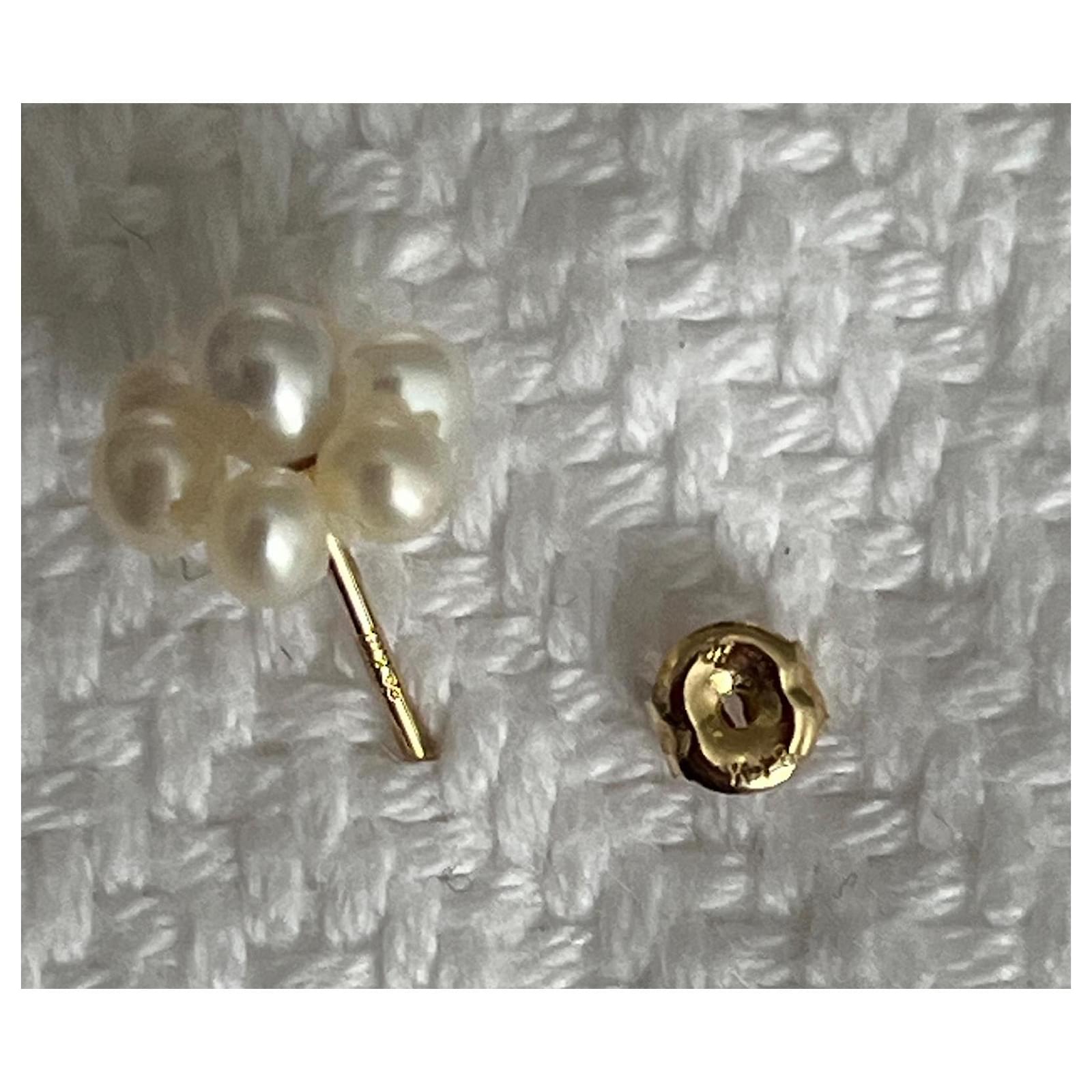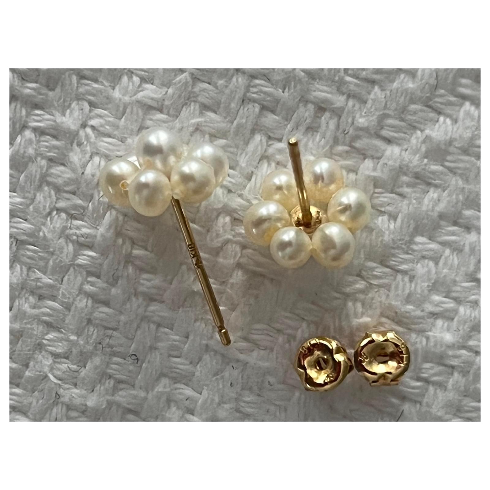 Flower shape sweet water cultivated pearls, 18 kt yellow gold. Very good condition, few times used. 10 mm x 10 mm. Box.