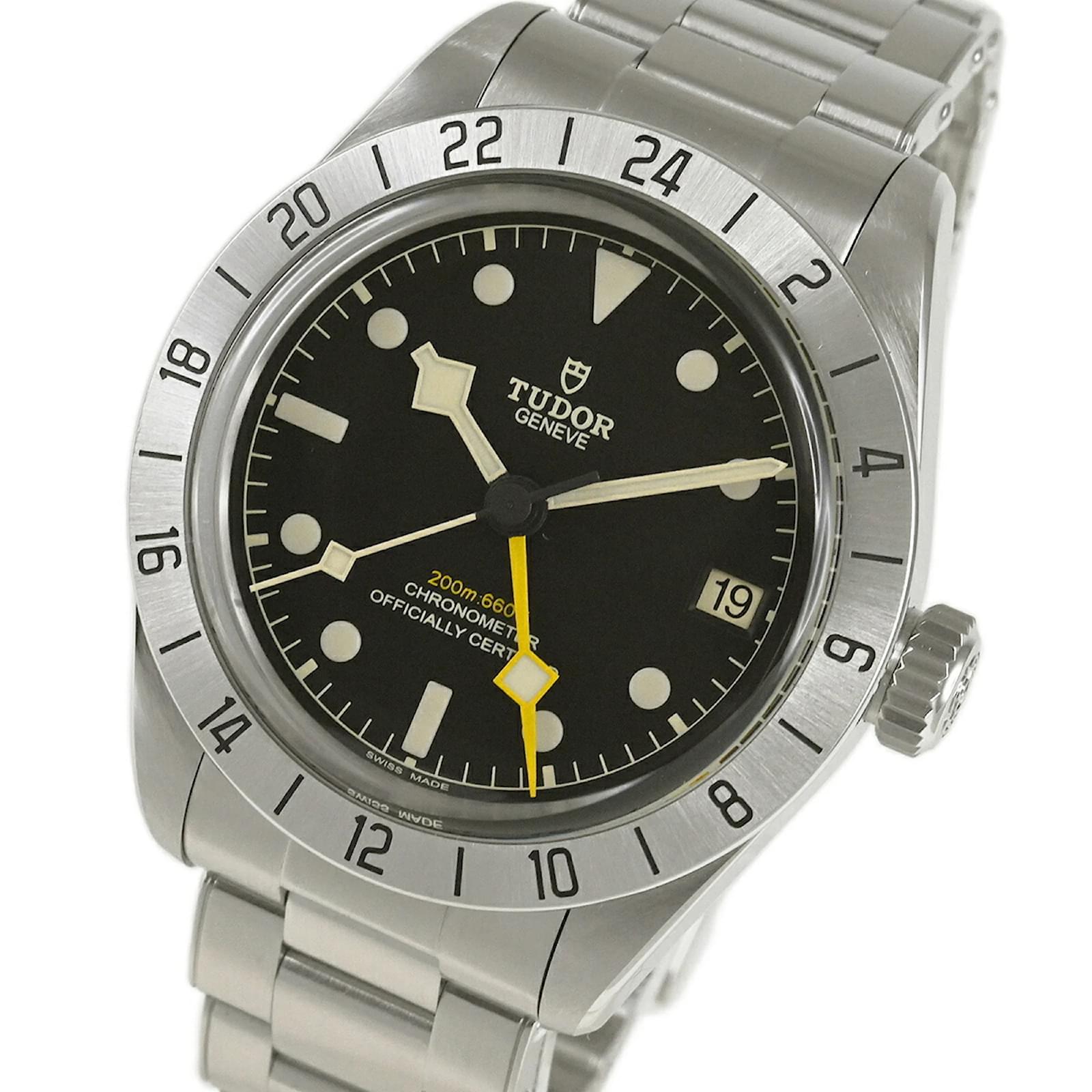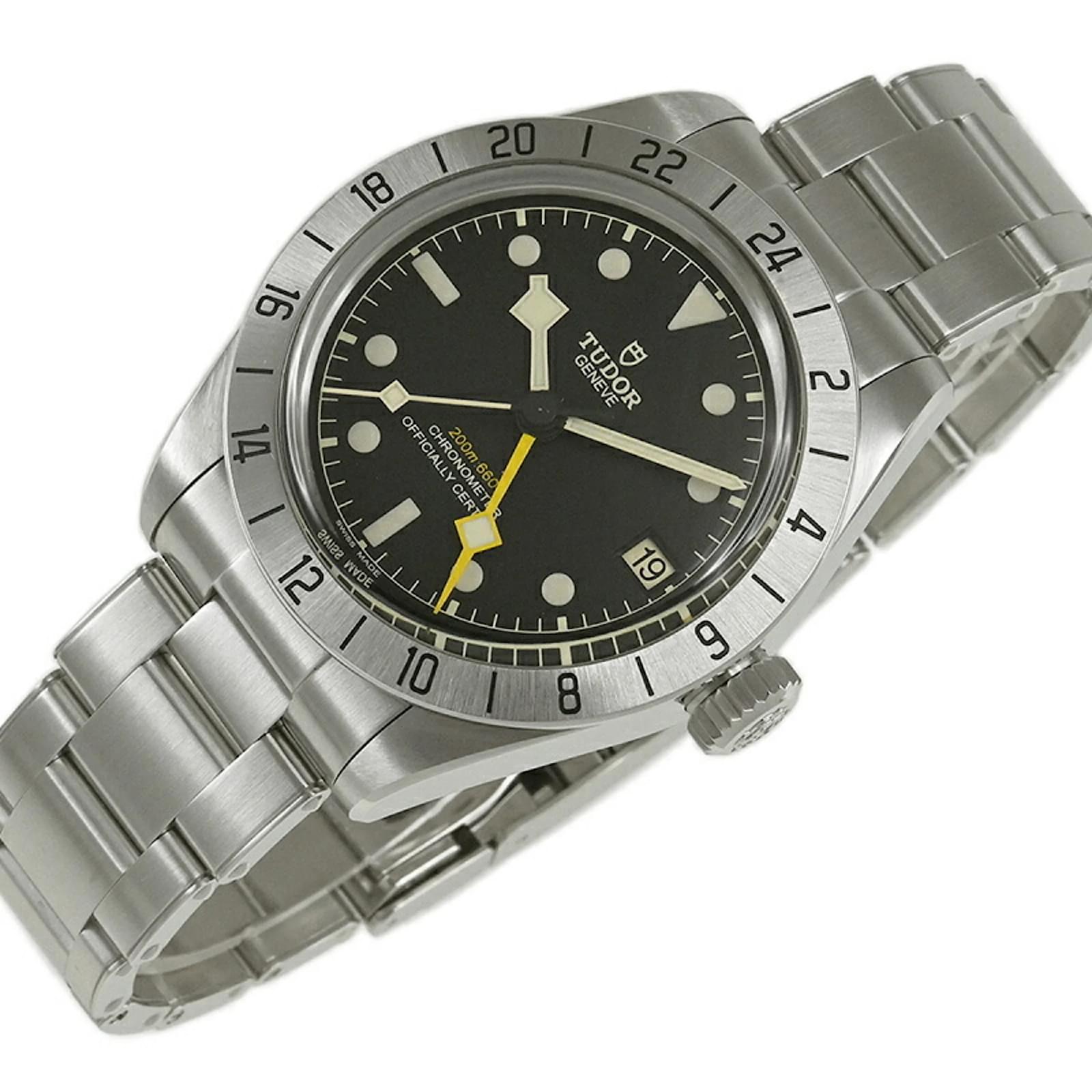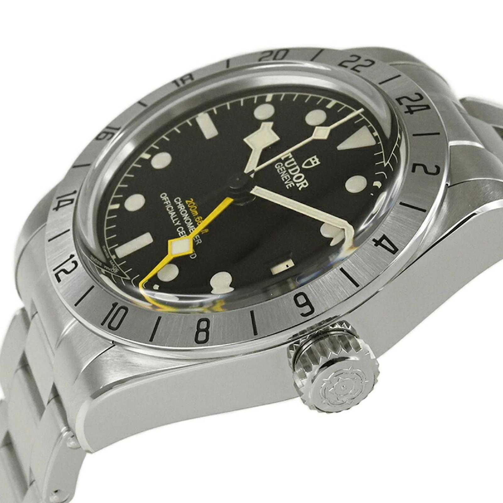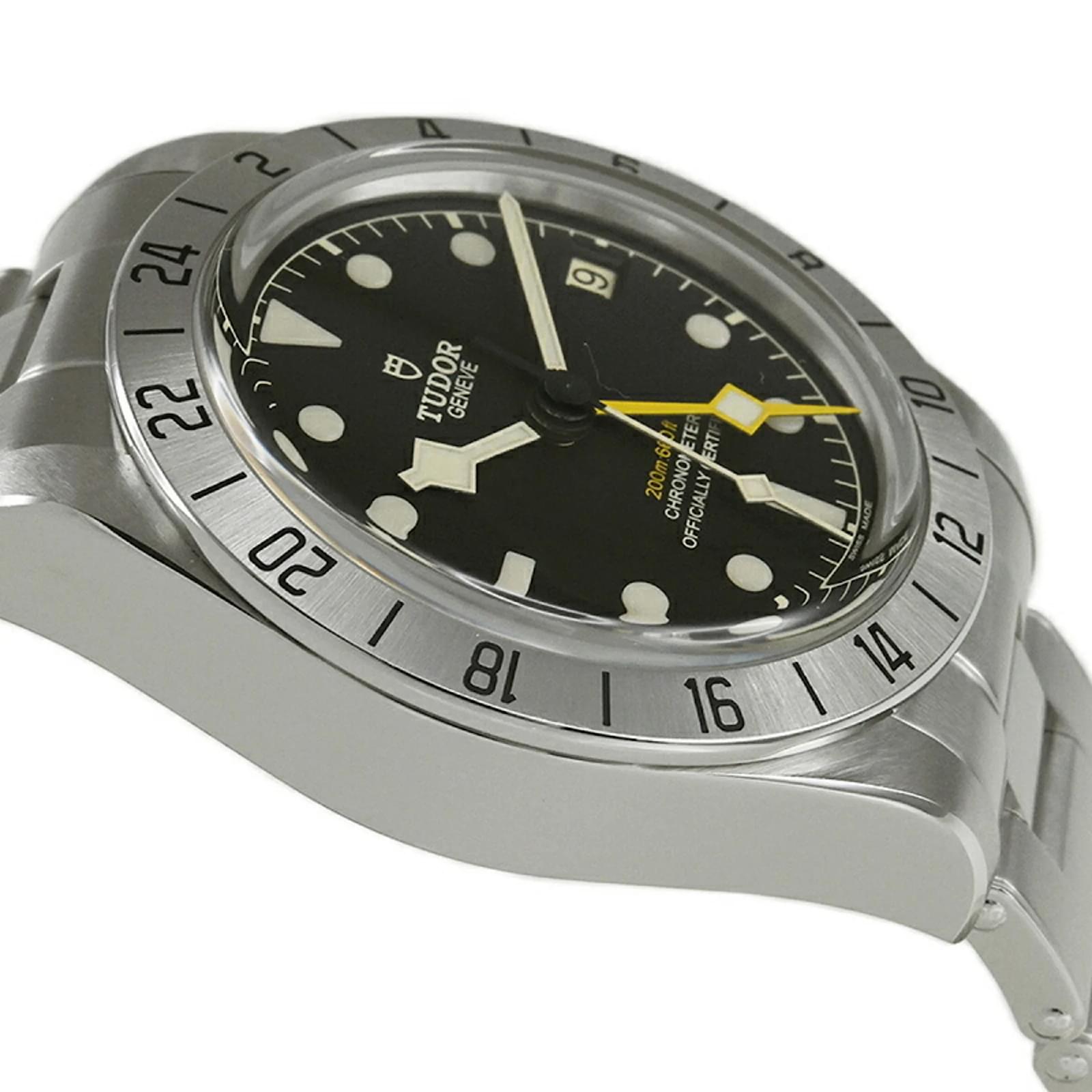 The TUDOR Black Bay Pro Watch 79470 is a sport-style wristwatch featuring a black dial and a stainless steel case. It is equipped with a self-winding automatic movement and offers a water resistance depth of 200 meters. The watch has a case diameter of 39mm and a thickness of 14.5mm, suitable for a wrist size of 20.5cm (8.07 inches). \n\nThis pre-owned timepiece is in good condition, showing slight signs of wear, including minor scratches on the bezel, case, glass, and crown. The watch comes with its original booklet, certificate, and both inner and outer boxes. It was purchased in August 2023 and is made in Switzerland. Please refer to the images for a detailed view of the item’s condition and included accessories.