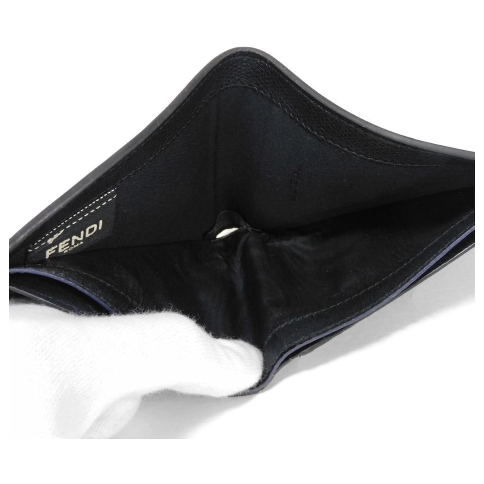 This Fendi bi-fold wallet features a striking black design with a unique Bag Bugs eye motif in multicolor. Measuring 9.5cm x 11cm x 2cm, it is compact yet functional, making it suitable for everyday use. The wallet is classified as used but remains in good condition, showing slight traces of usage such as minor scratches and peeling. It comes with a dust bag for protection. Potential buyers are encouraged to review the provided images to assess the item’s exact condition and included accessories.