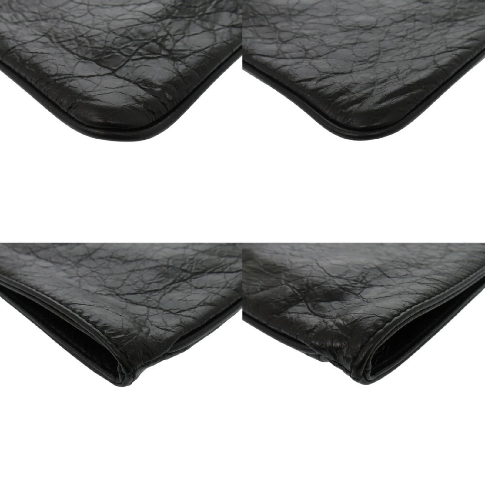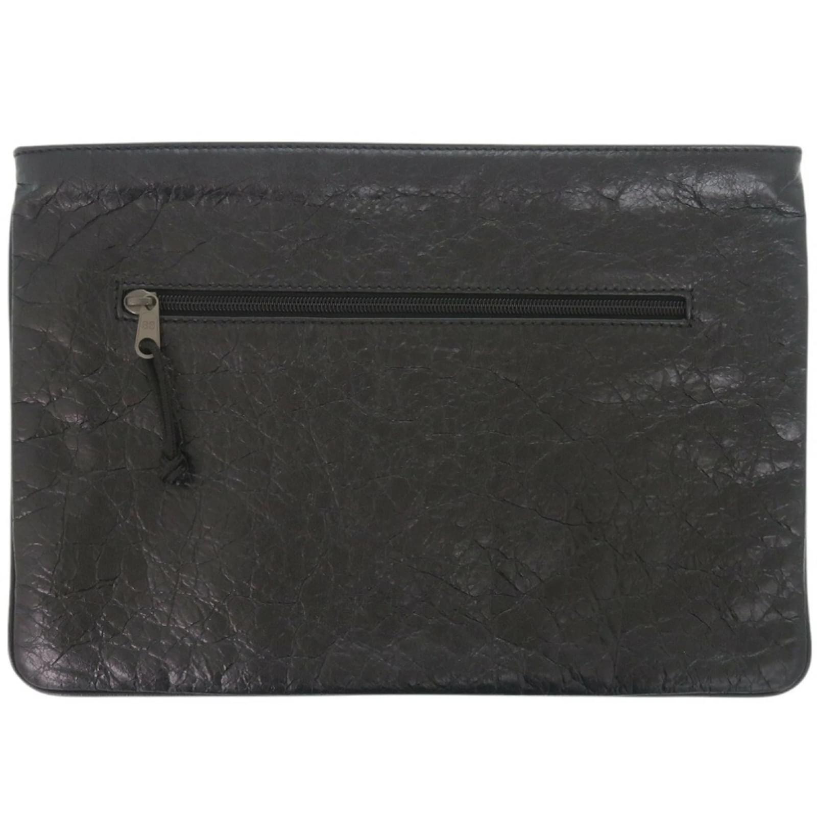 This Balenciaga clutch bag, crafted from black leather, features a wrinkled texture and measures 23.5cm x 33.5cm (9.25” x 13.18”). It is a used item in like-new condition, with insignificant traces of use, scratches, and dirt. The bag is made in Italy and is part of the brand’s collection. Please refer to the images for a detailed view of its condition, as no accessories are included with the purchase.