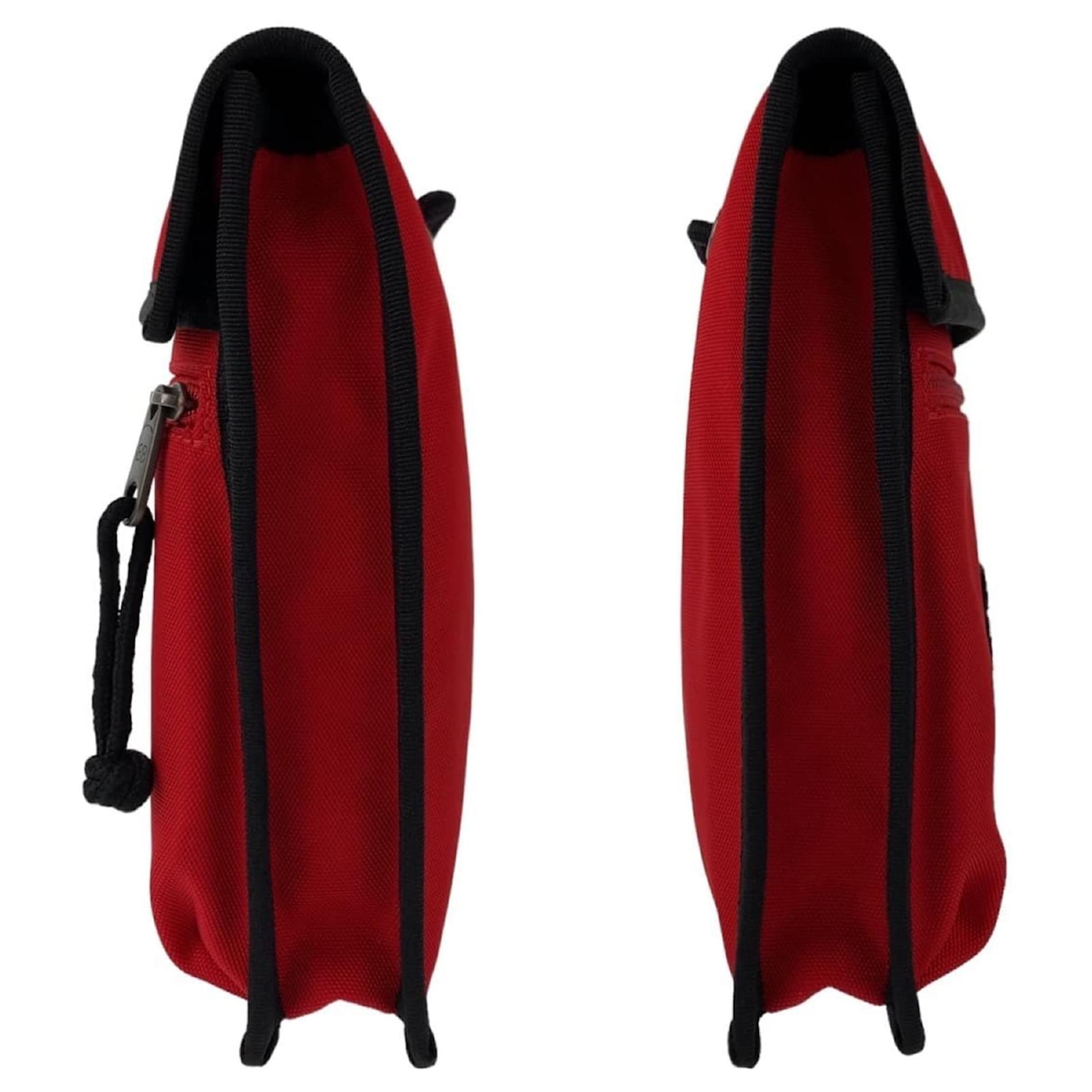 This Balenciaga Explorer BB logo shoulder bag is crafted from durable nylon in a vibrant red color, featuring silver hardware. The bag is designed as a pochette and shoulder bag, secured with a Velcro closure. It includes a zipper outer pocket for added convenience. Measuring 19cm x 15cm x 3cm, with a strap length of 110cm, it is suitable for various occasions. \n\nThe bag is pre-owned and classified as being in good condition, with some visible traces of usage, including slight scratches and dirt. It comes with a dust bag for protection. Potential buyers are encouraged to review the provided images for a detailed view of the item’s condition and included accessories. \n\nThis product originates from France and is a part of Balenciaga’s collection, making it a stylish addition to any wardrobe.