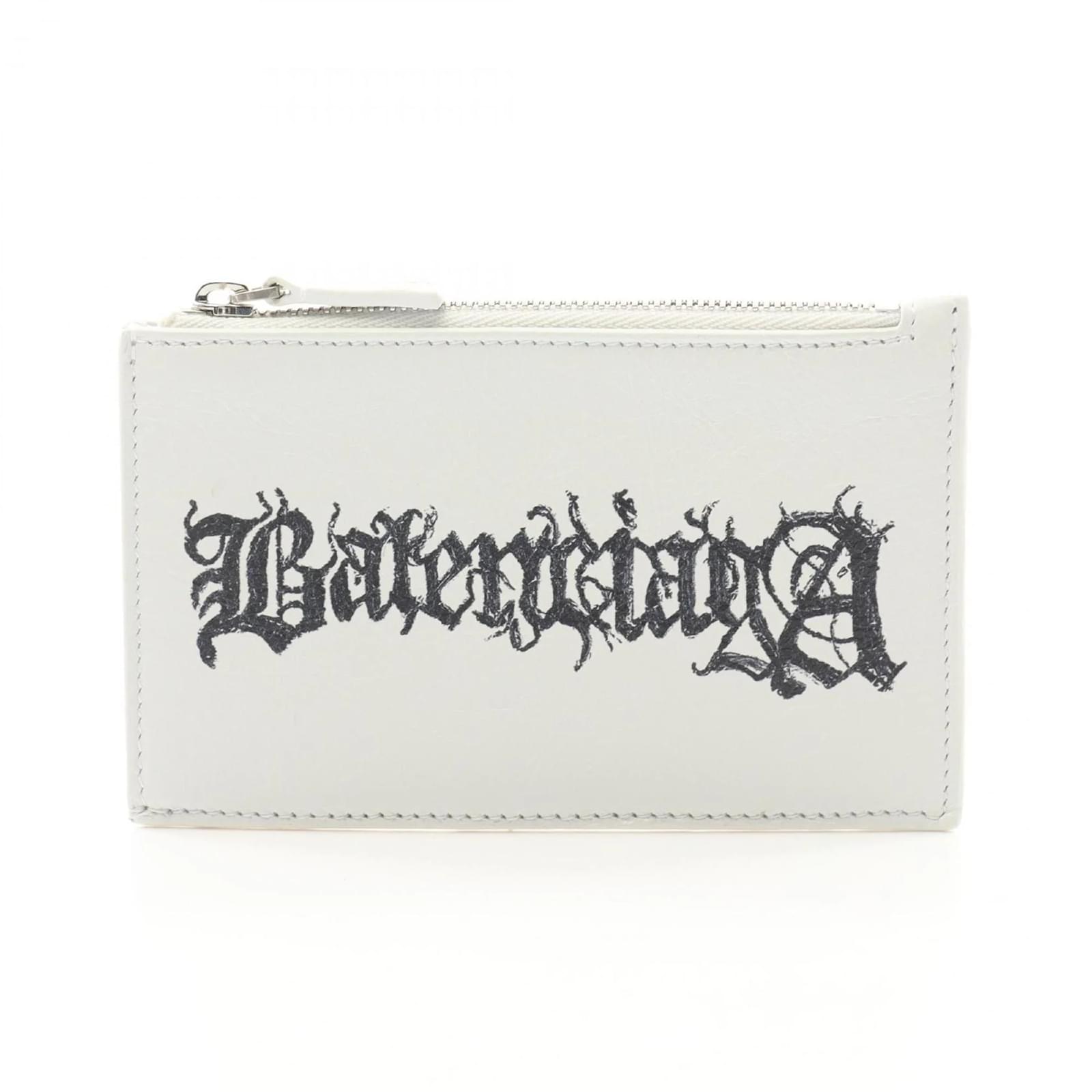 This Balenciaga coin purse is crafted from white leather and designed for practicality. Measuring 8.5cm x 13cm x 1cm, it is compact yet functional, making it suitable for carrying coins and small essentials. The item is in opened condition but has never been used, showing insignificant traces of use, scratches, or dirt. It comes with a box and dust bag for protection. Please refer to the images for a detailed view of the item and its accessories.