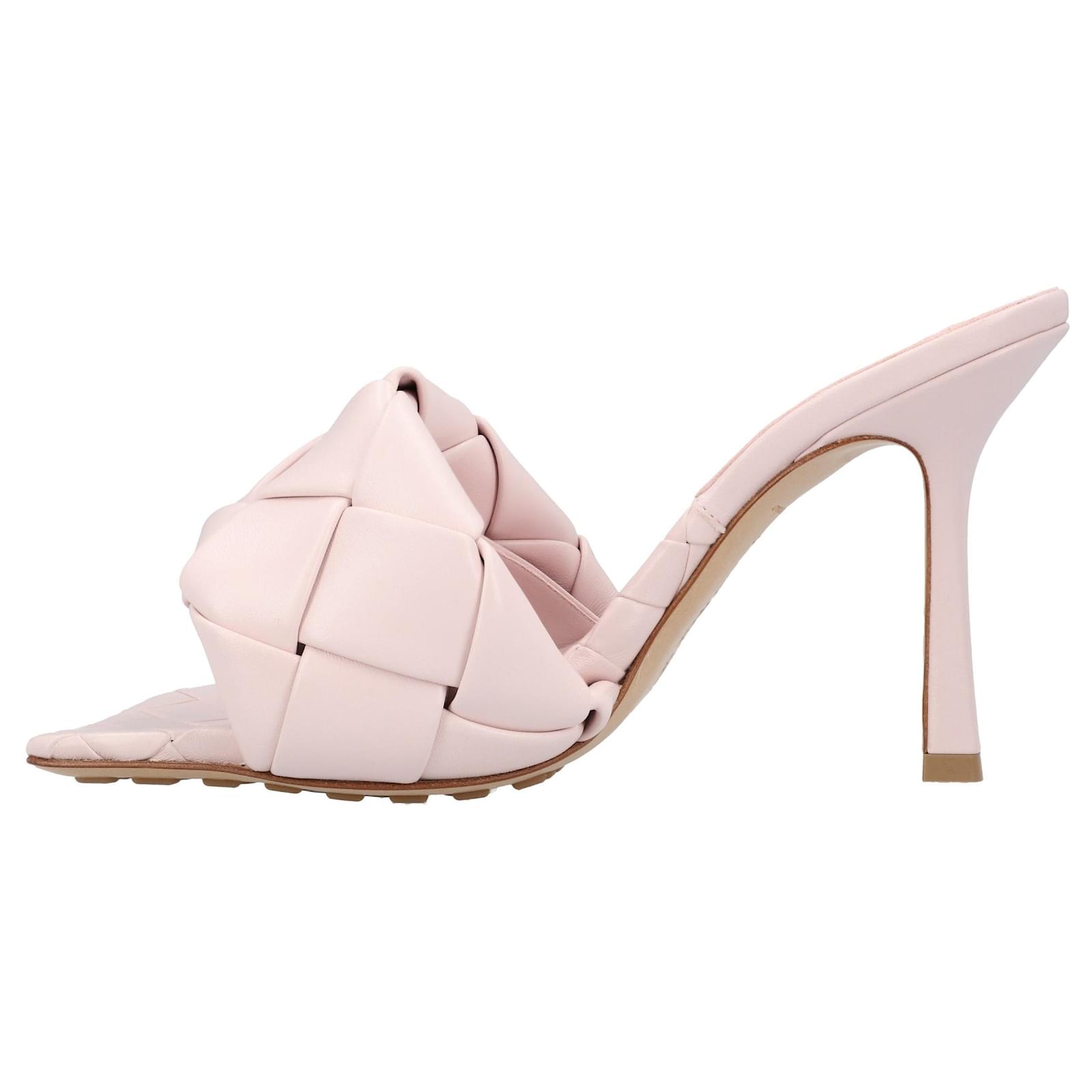 Intrecciato leather mules. \n • Rubber-injected leather outsole\n • Heel: 9 cm | 3.5\”\n \n Made in: ItalyMeasurments: \n Product Id: 378366 \n