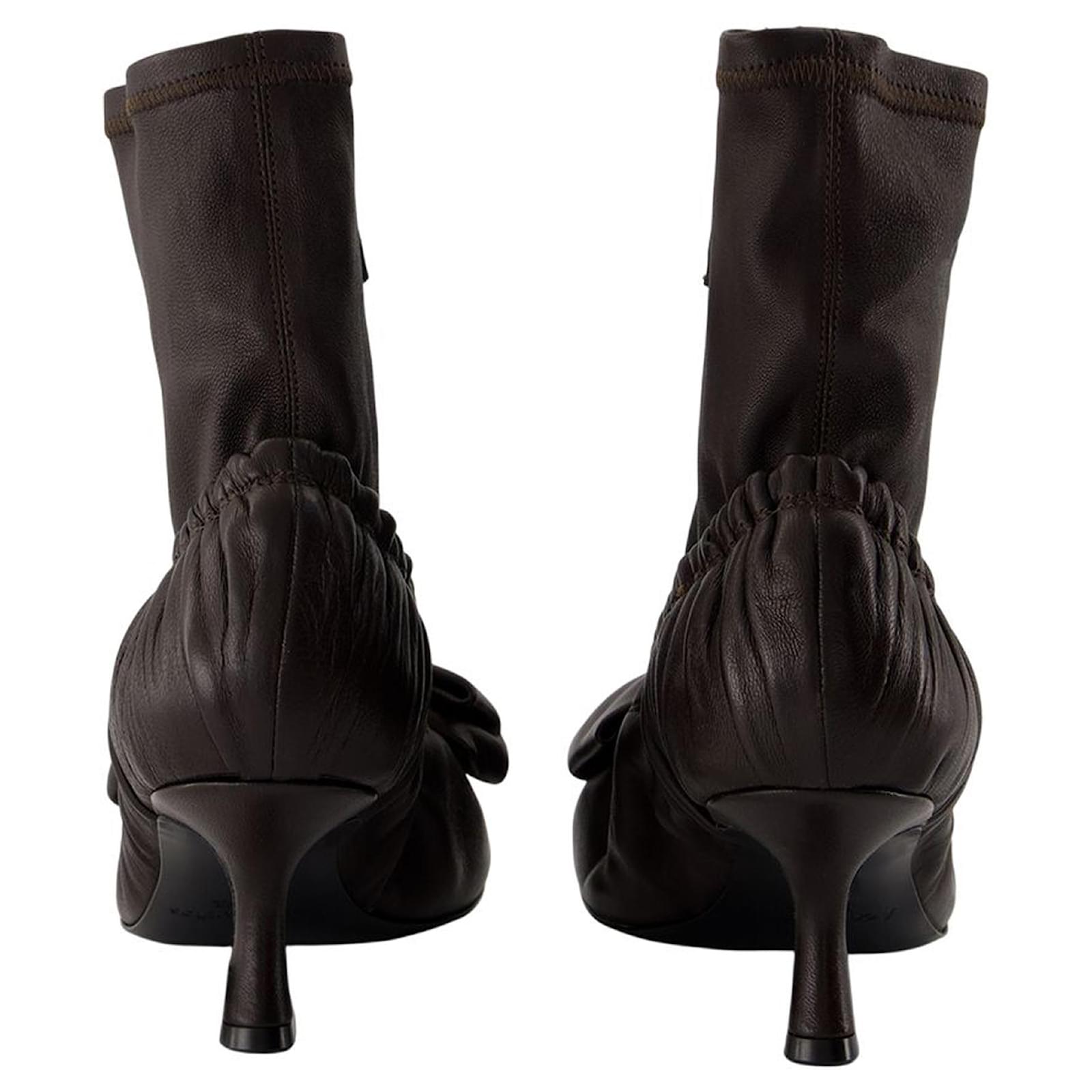 Upper material: calfskin.Laminated brass or nickel details.Closure: ankle strap with buckle.Toe: round.Fit: true to size – Sizing: European. \n Product Id: 470040 \n