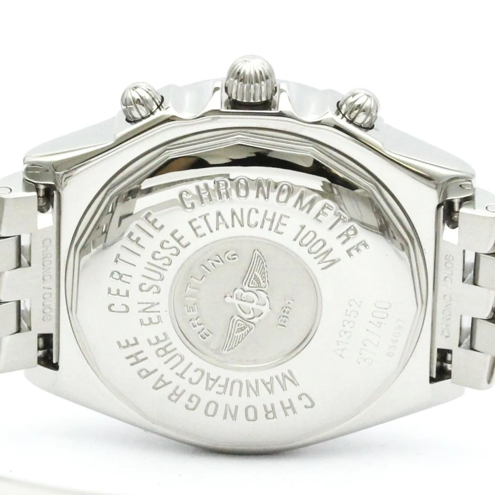 The Breitling Chronomat A13352 is a sport wristwatch featuring a striking blue shell dial and a stainless steel case. With a case diameter of 40mm, this self-winding automatic watch is designed for both functionality and style, equipped with chronograph and date functions. The watch is in very good used condition, showing insignificant signs of wear, with no scratches on the glass or dial. It has a wrist size of 16.5cm and weighs 150g. This limited edition timepiece is numbered 372 out of 400, making it a unique addition to any collection.