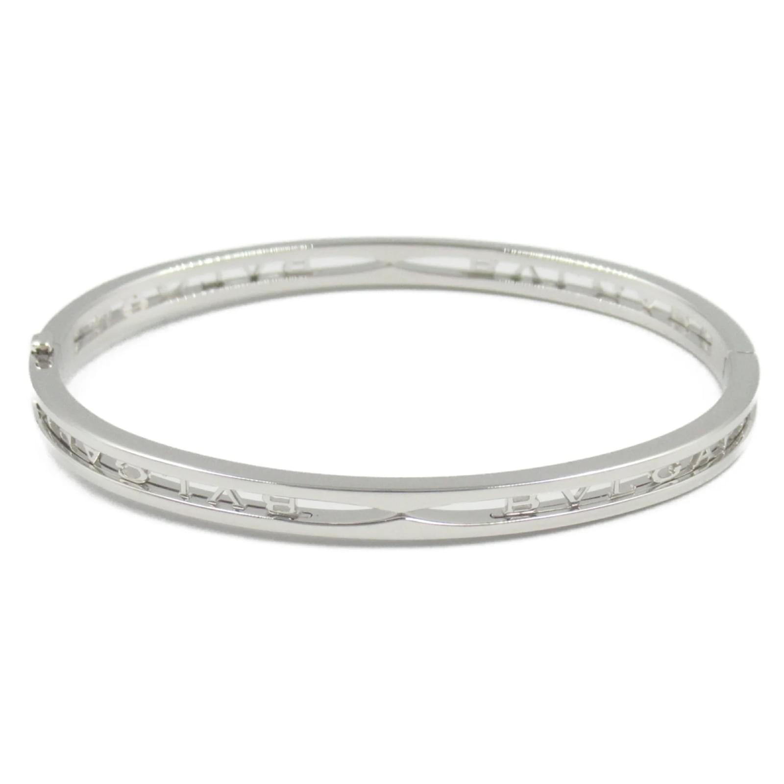 This Bvlgari B.zero1 Spiral Bracelet is crafted from 18K white gold, offering a sophisticated charm bracelet design. It measures 17cm in length and weighs 21.9g. The bracelet is pre-owned and classified as being in good condition, with some traces of usage, including slight scratches and dirt. It has been polished for maintenance. Please note that no additional accessories are included with the item, and potential buyers are encouraged to review the images for a detailed view of its condition.