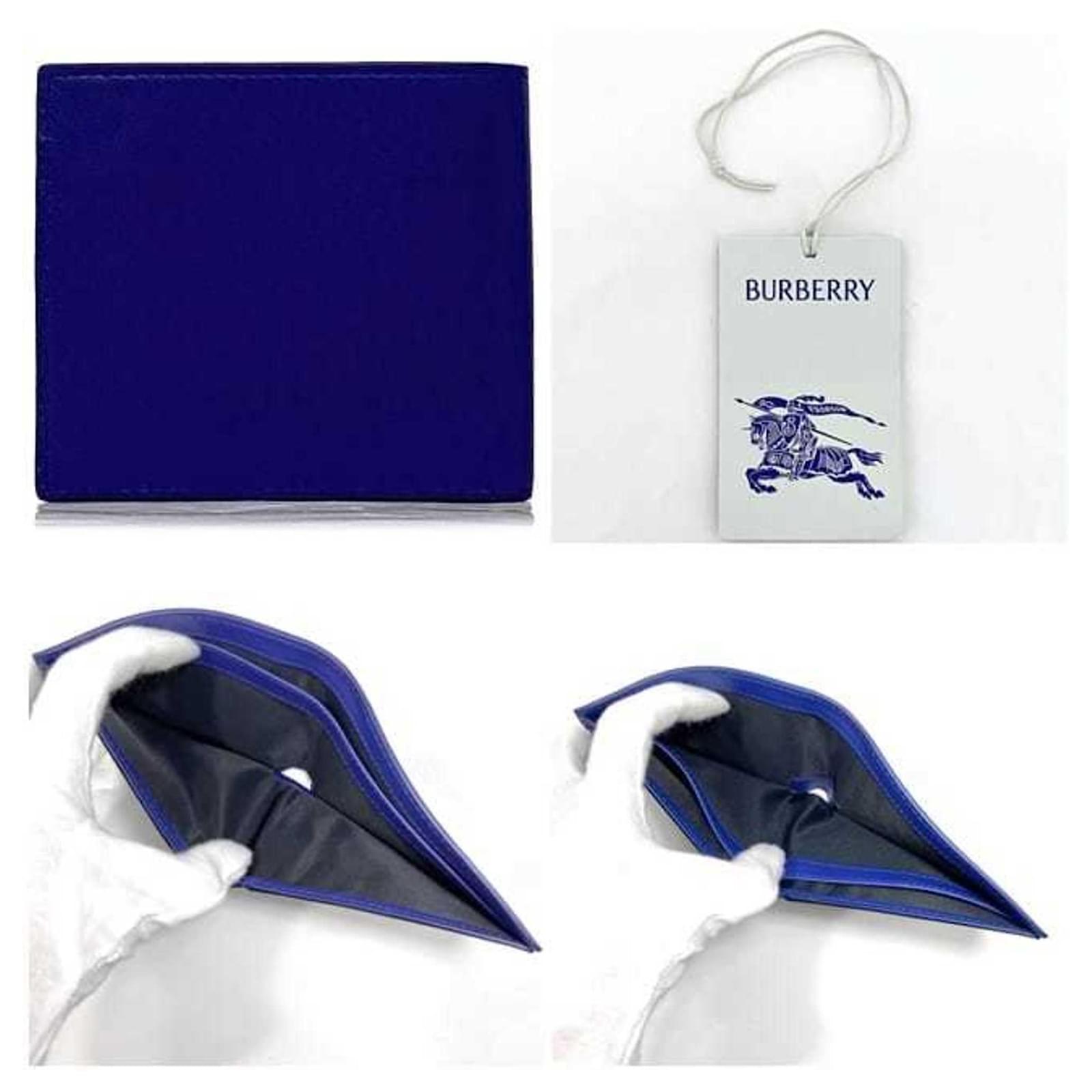 This Burberry bi-fold wallet is crafted from leather and features a classic blue color. Measuring 9.7 cm in height, 11 cm in width, and 9 cm in depth, it is designed to fit comfortably in your pocket. The wallet includes one bill compartment and is categorized as used but in like-new condition, with insignificant traces of use, scratches, and dirt. It is a genuine product from Burberry, identified by the model number ec-22838. Before purchasing, potential buyers are encouraged to review the images for a clear understanding of the item’s condition and included accessories.