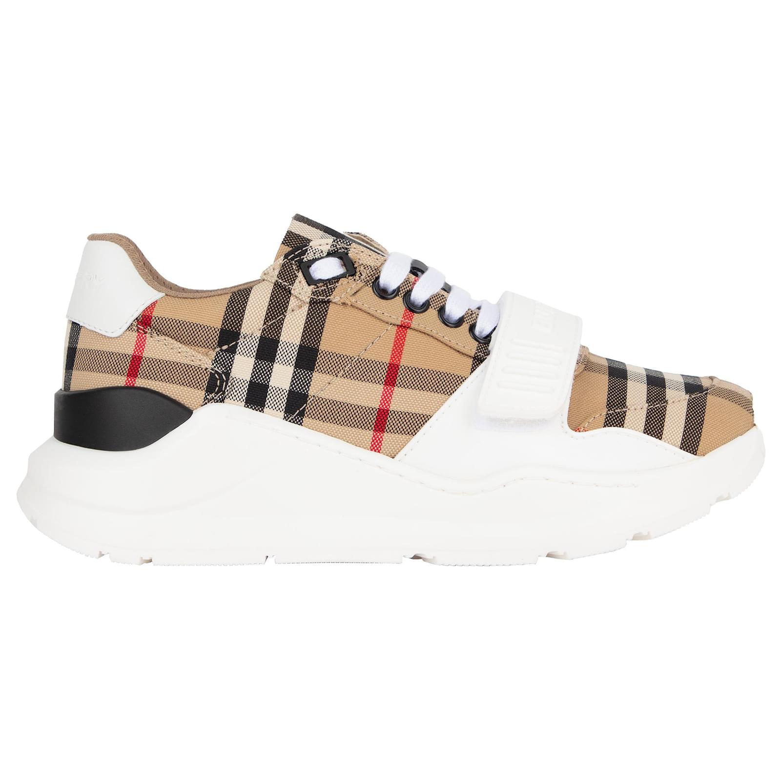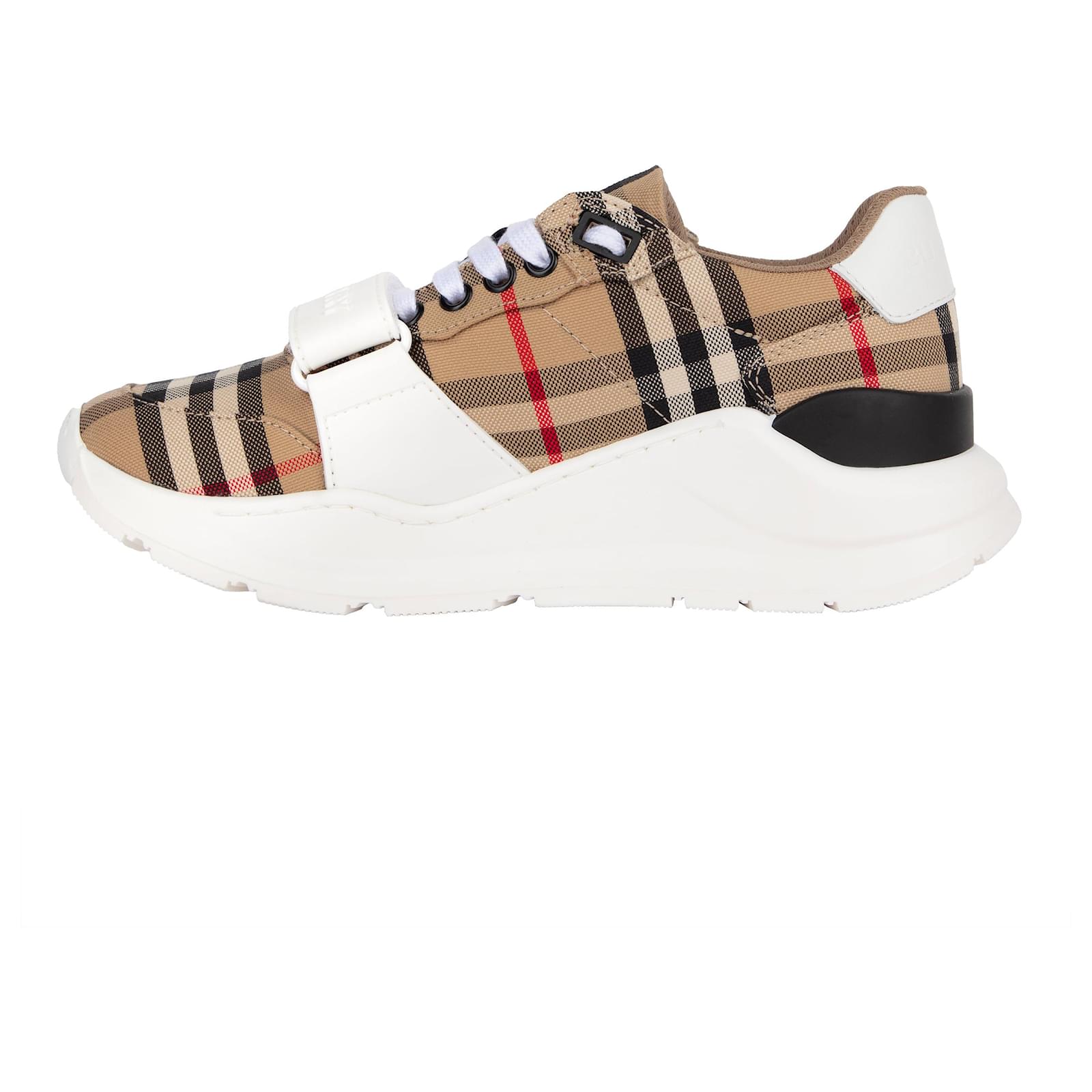 Burberry’s vintage check-pattern sneakers are put on a chunky sole. Featuring touch-strap fastening across the front, round toe, paneled design, front-lace-up fastening, branded insole, padded ankle, rubber outsole. \n Product Id: 459644 \n
