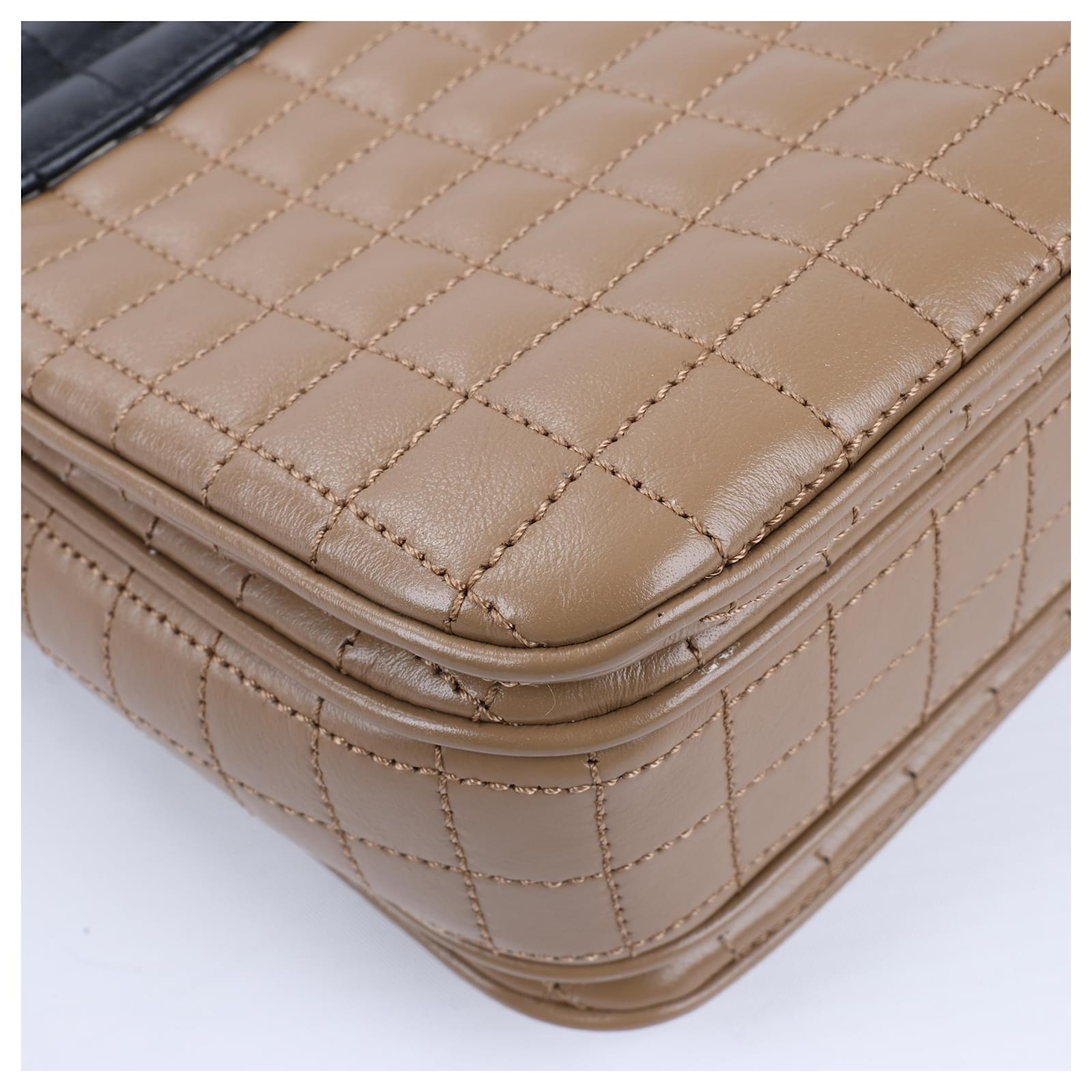 The Celine C Sées Medium Leather Chain Shoulder Bag in Black and Brown is a chic\naccessory. Crafted from premium leather, it features a contrasting design,\nelegant chain strap, and a spacious interior, blending modern style with\npractical functionality for any occasion.\nBrand: Celine\nModel: C Bag\nSize: Medium\nWidth: 21 cm \nHeight: 15 cm\nExterior Condition: Excellent\nInterior Condition: Excellent\nCondition Details: The exterior leather is clean and in excellent condition. The\ngoldtone hardware is still bright and crisp with light hairline scratches. The\nshoulder strap is clean and in good condition. The interior lining is clean and\nin excellent condition.\nColour: Brown, Black\nInterior Colour: Brown\nHardware Colour: Gold\nMaterial: Leather\nComes With: Dustbag, papers