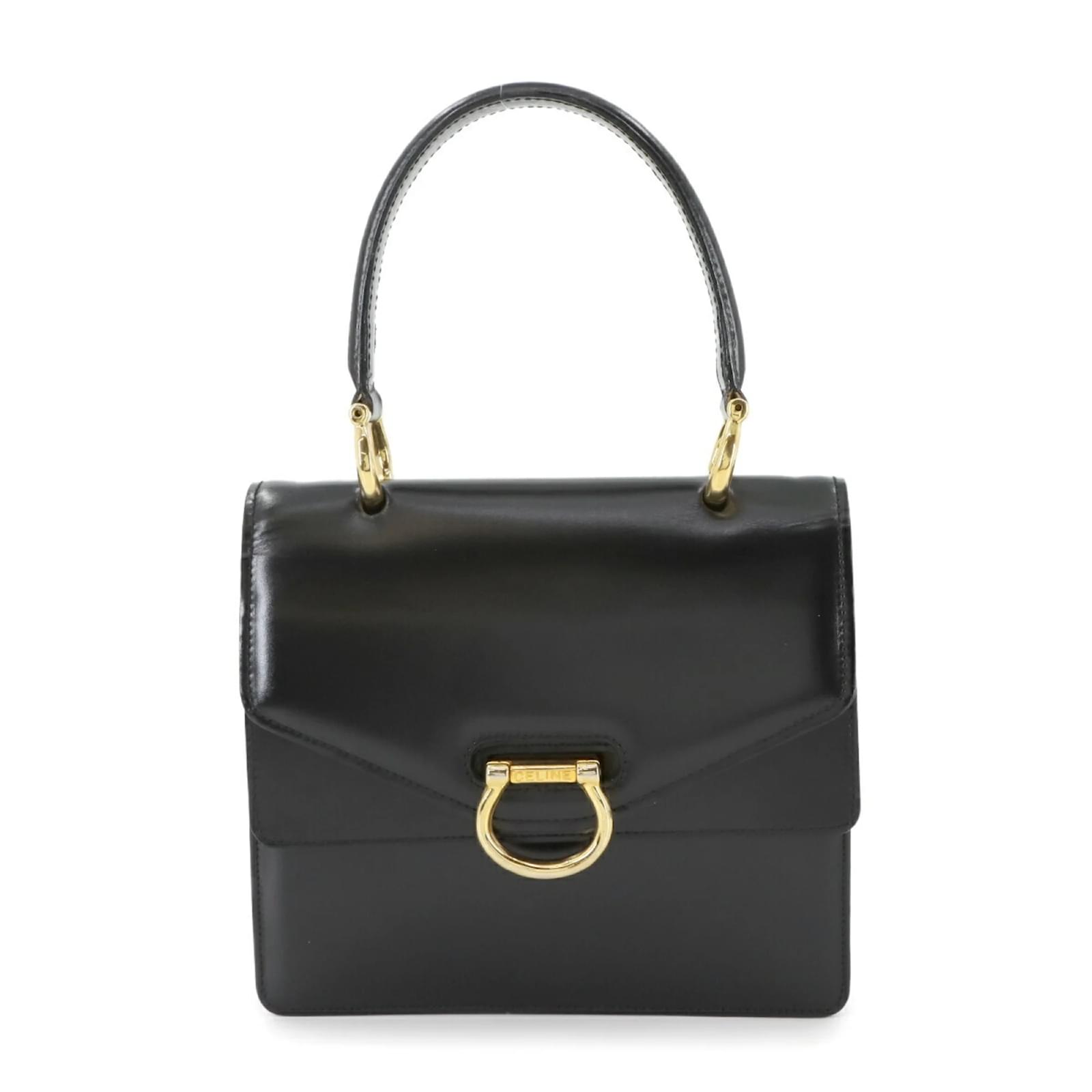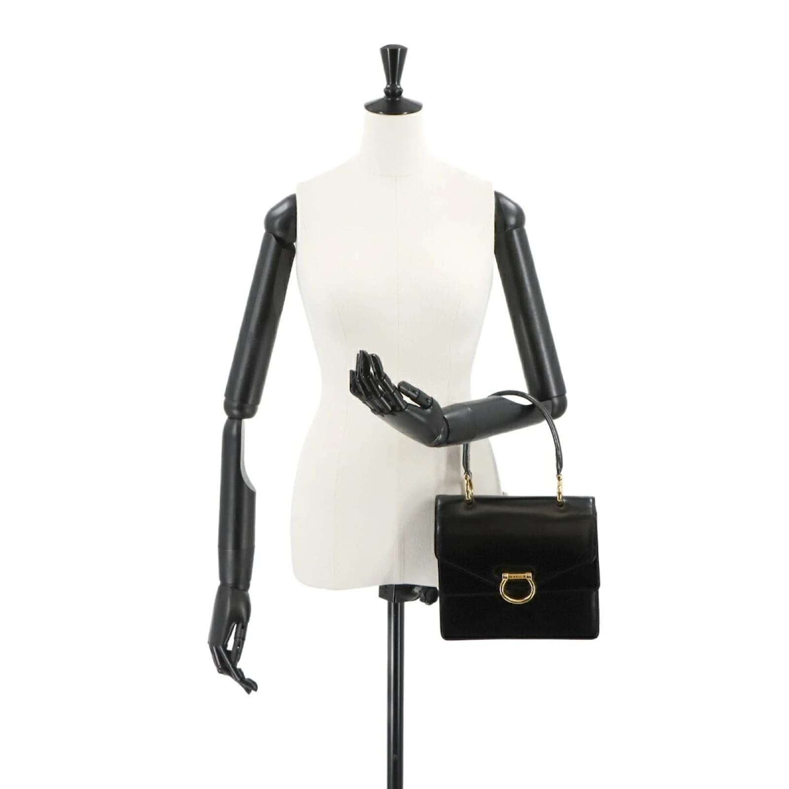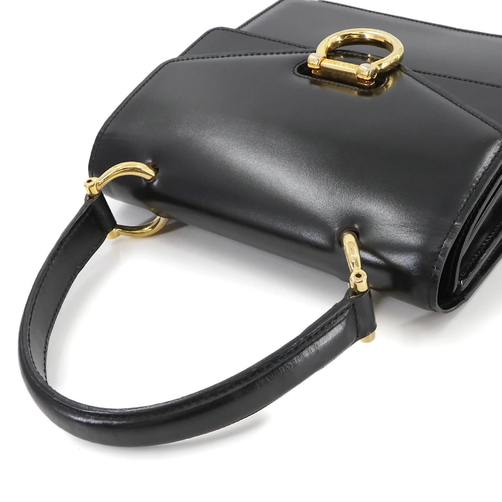 This Celine Gancini handbag is crafted from black leather and features gold hardware, offering a classic and elegant look. The dimensions of the bag are 18cm in height, 21.5cm in width, and 5.5cm in depth, making it a compact accessory suitable for various occasions. \n\nThe handbag is in used condition, rated as \”like new\” with insignificant traces of use, scratches, and dirt. It is categorized as Rank S, indicating it is in mint condition. Please refer to the images for a detailed view of the item and its condition. No additional accessories are included with the purchase.