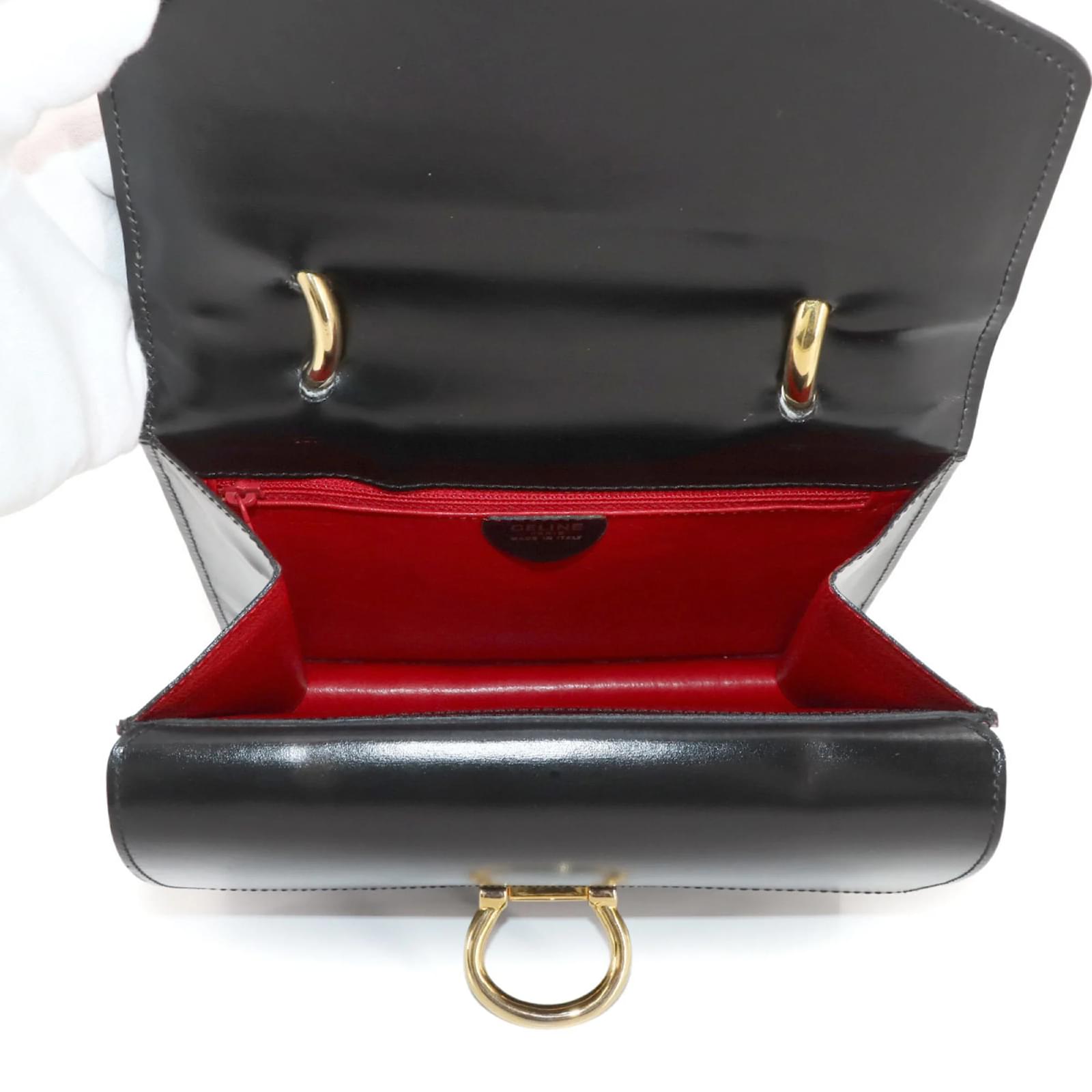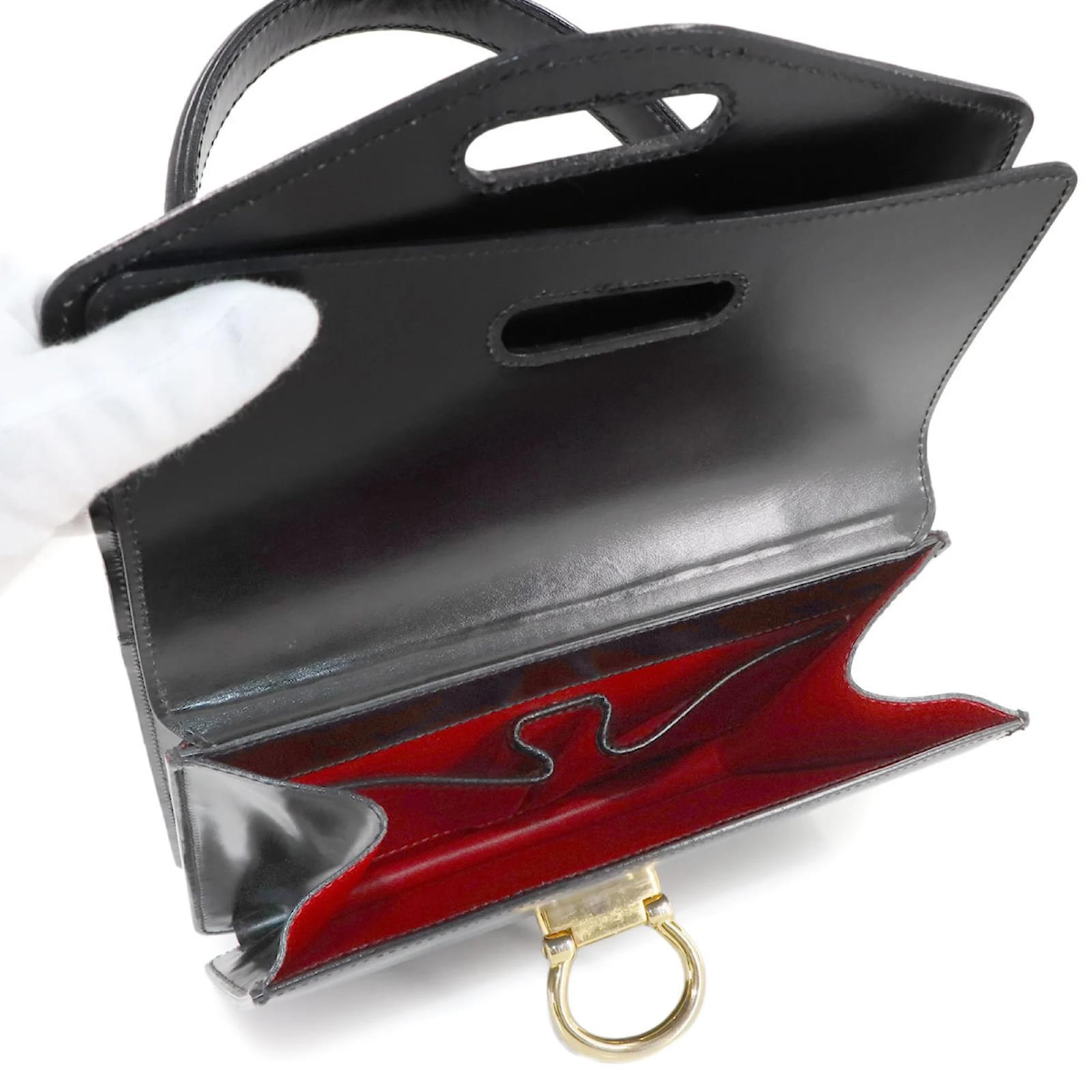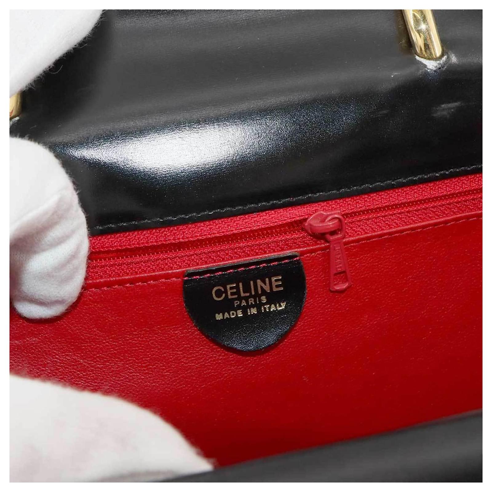 This Celine Gancini handbag is crafted from black leather and features gold hardware, offering a classic and elegant look. The dimensions of the bag are 18cm in height, 21.5cm in width, and 5.5cm in depth, making it a compact accessory suitable for various occasions. \n\nThe handbag is in used condition, rated as \”like new\” with insignificant traces of use, scratches, and dirt. It is categorized as Rank S, indicating it is in mint condition. Please refer to the images for a detailed view of the item and its condition. No additional accessories are included with the purchase.