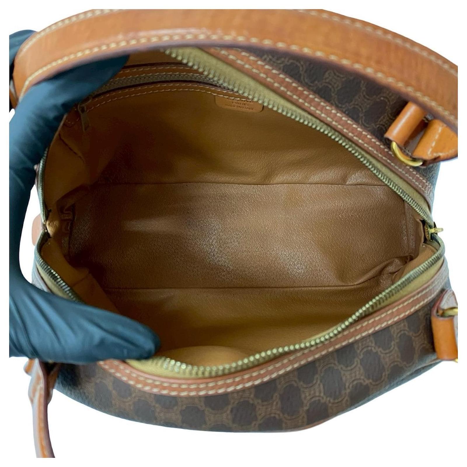– General information -\nBrand : CelineItem name : Celine Macadam Blazon Leather HandbagModel number : – Design -Type : HandbagMaterial : LeatherColor : BrownGender : Female- Size -Size : Length : 29Depth : 10Height : 19.5Item Material : Leather / PVCItem Series : Macadam Blazon TriompheItem Color : BrownClosure Type : ZipperInterior : Main compartment x 1- Inventory -Serial Number : M93SKU : 120210012501000A0025849292- Included Items -Accessories : null*Before purchasing, please refer to the images of the accessories included with the item.- Condition -Condition : Very Good ConditionRank : Used A Used condition with some scratches and stains.Condition Notice : Before purchasing, please refer to the images for the exact condition of the item. Measurments: width: 100 mm length: 290 mm height: 195 mm \n Product Id: 526108 \n