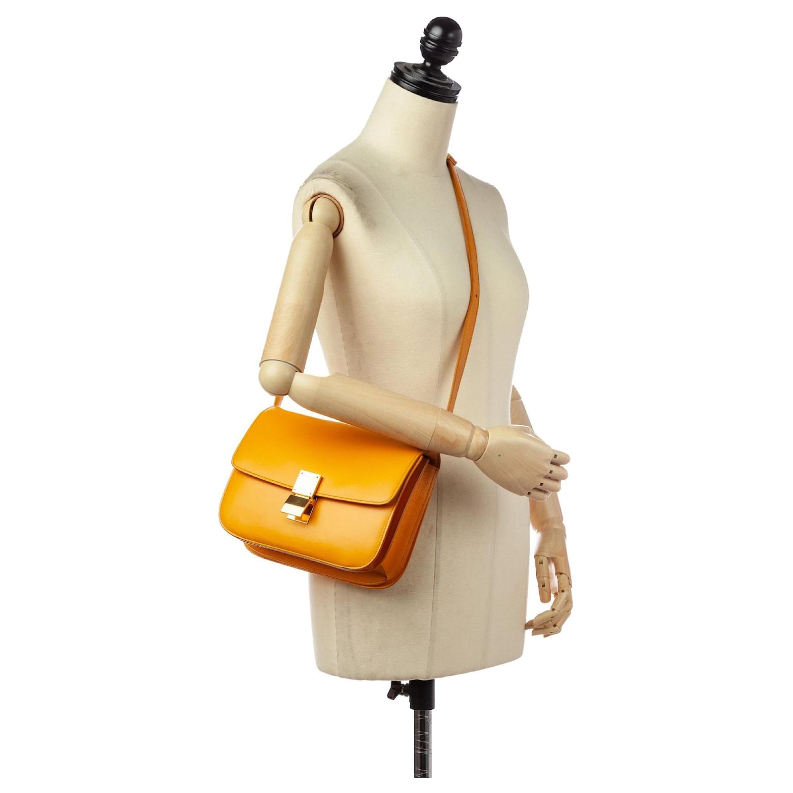 The Classic Box crossbody bag features a leather body, a flat leather strap, a front flap with a push lock closure, and an interior slip and zip pockets.\nProduct Condition Details: Exterior Front Scratched. Exterior Back Scratched. Buckle Scratched.Exterior Back Scratched. Exterior Front Scratched. Zipper Scratched.\nInclusions: Dust Bag.\nCountry of Origin: FRANCE.\nSerial Number: S-CE-0114 Measurments: width: 1 mm length: 1 mm height: 1 mm strap length: 1 mm handle drop: 1 mm \n Product Id: 526324 \n
