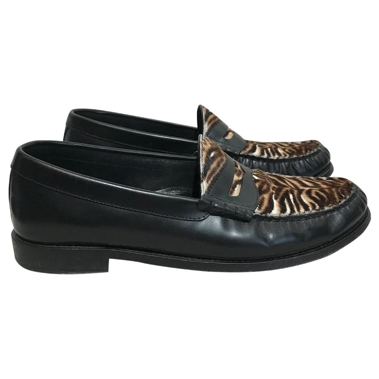 Celine moccasins \nSize 41. \nBlack leather loafers with zebra pattern ponytail detail.\nVery good condition with the usual small marks on the front and back (see photo)