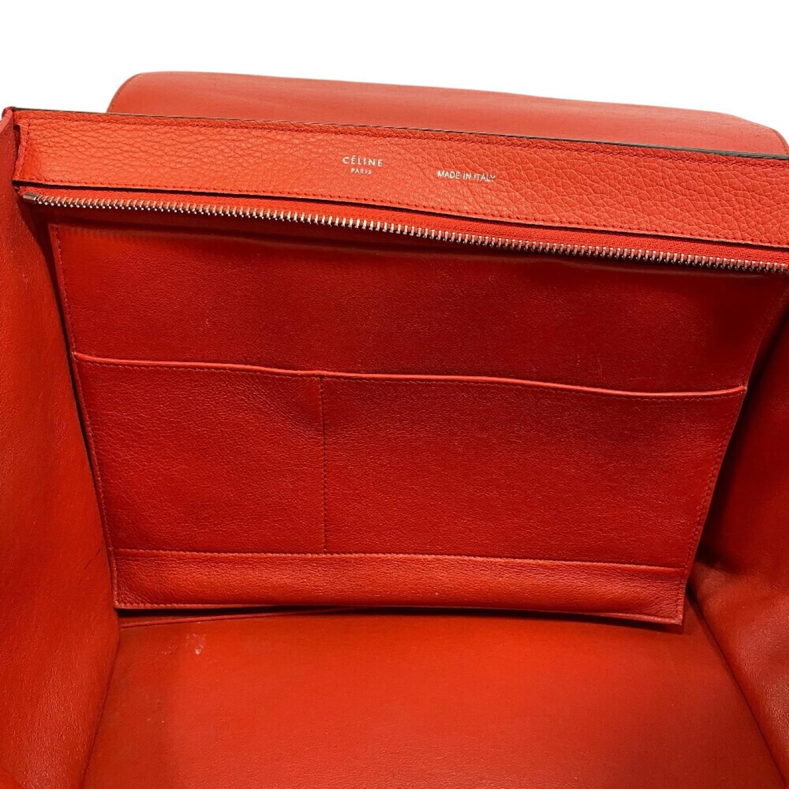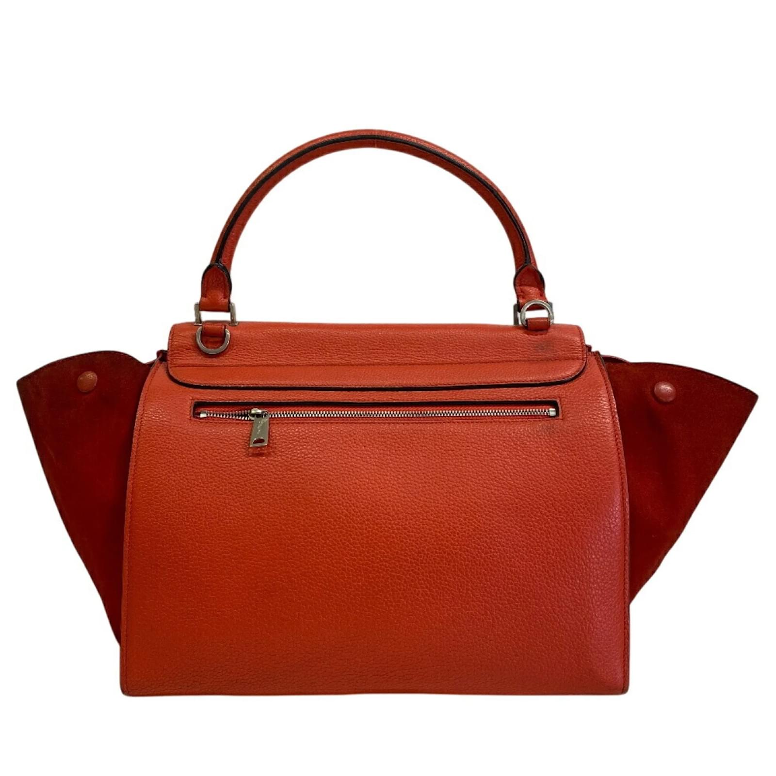 This Celine Trapeze Shoulder Bag is a versatile 2-way handbag designed for women, featuring a striking red leather exterior. The bag measures 24cm in height, 50cm in width, and 17cm in depth, with a handle length of 13cm and a strap length of 75cm, making it suitable for various carrying styles. \n\nThe bag is classified as used and is in good condition, with a seller ranking of Rank B. It shows traces of usage, including moderate scratches and dirt on both the exterior and interior, as well as some wear on the handles and corners. Potential buyers are encouraged to review the provided images for a detailed view of the bag’s condition. \n\nIncluded items and accessories are also available for review in the images.
