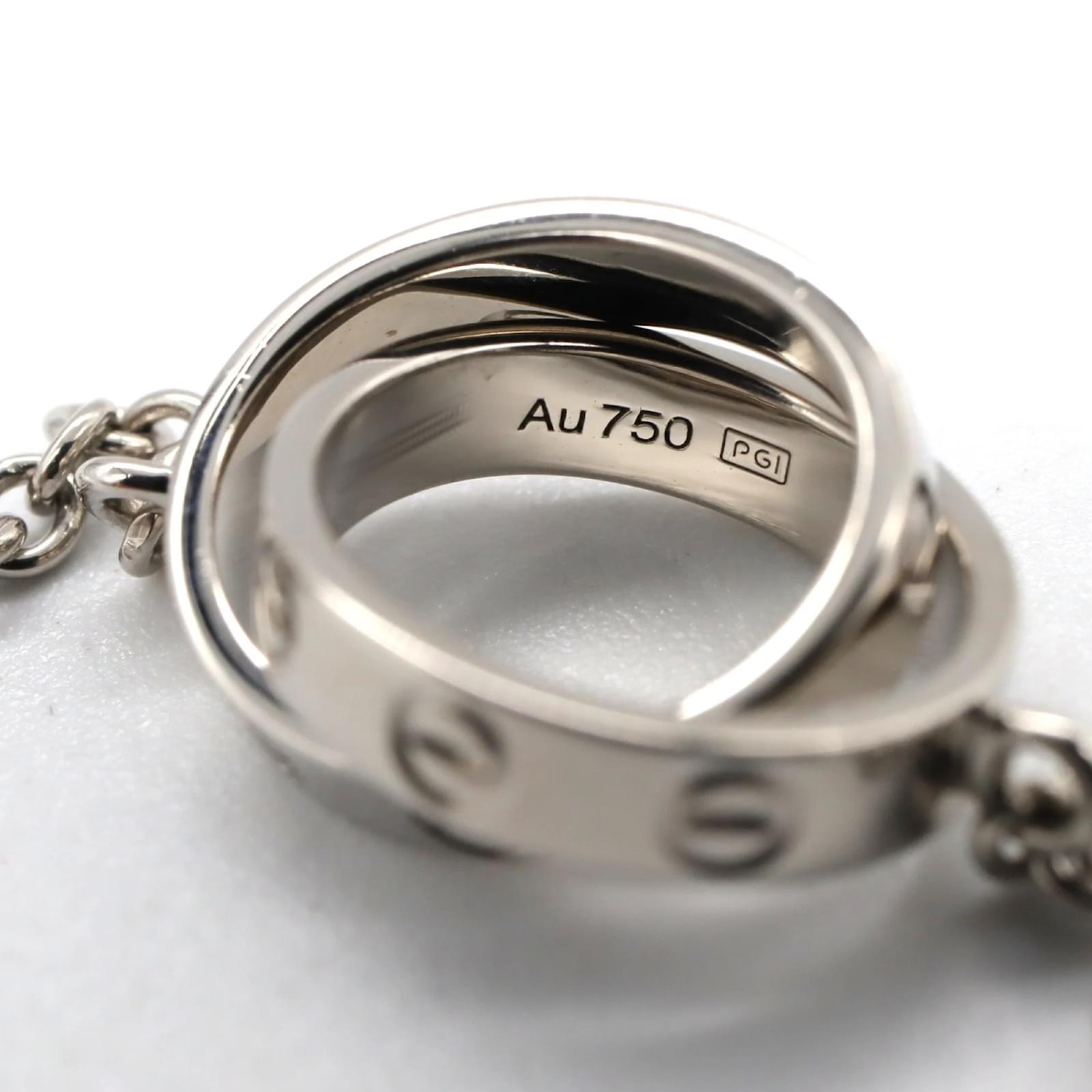 The Cartier Baby Love Necklace is crafted from 18K white gold, presenting a sleek silver finish. With a neck circumference of 43.5 cm (17.12 inches), this necklace is designed for women and showcases the elegance associated with the Cartier brand. \n\nThis particular piece is in used condition, rated as \”like new\” with insignificant traces of use, scratches, or dirt. It has been polished for maintenance. Potential buyers are encouraged to review the provided images for a clear understanding of the item’s condition and included accessories.