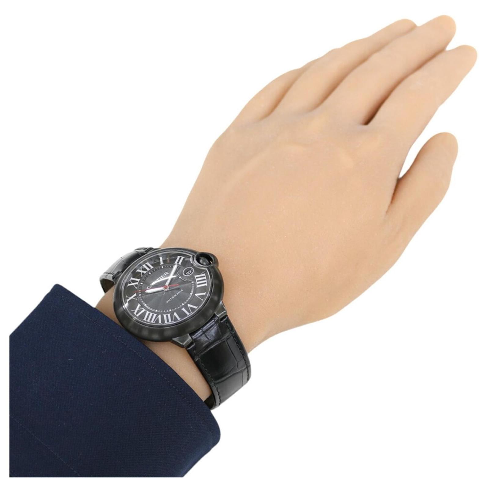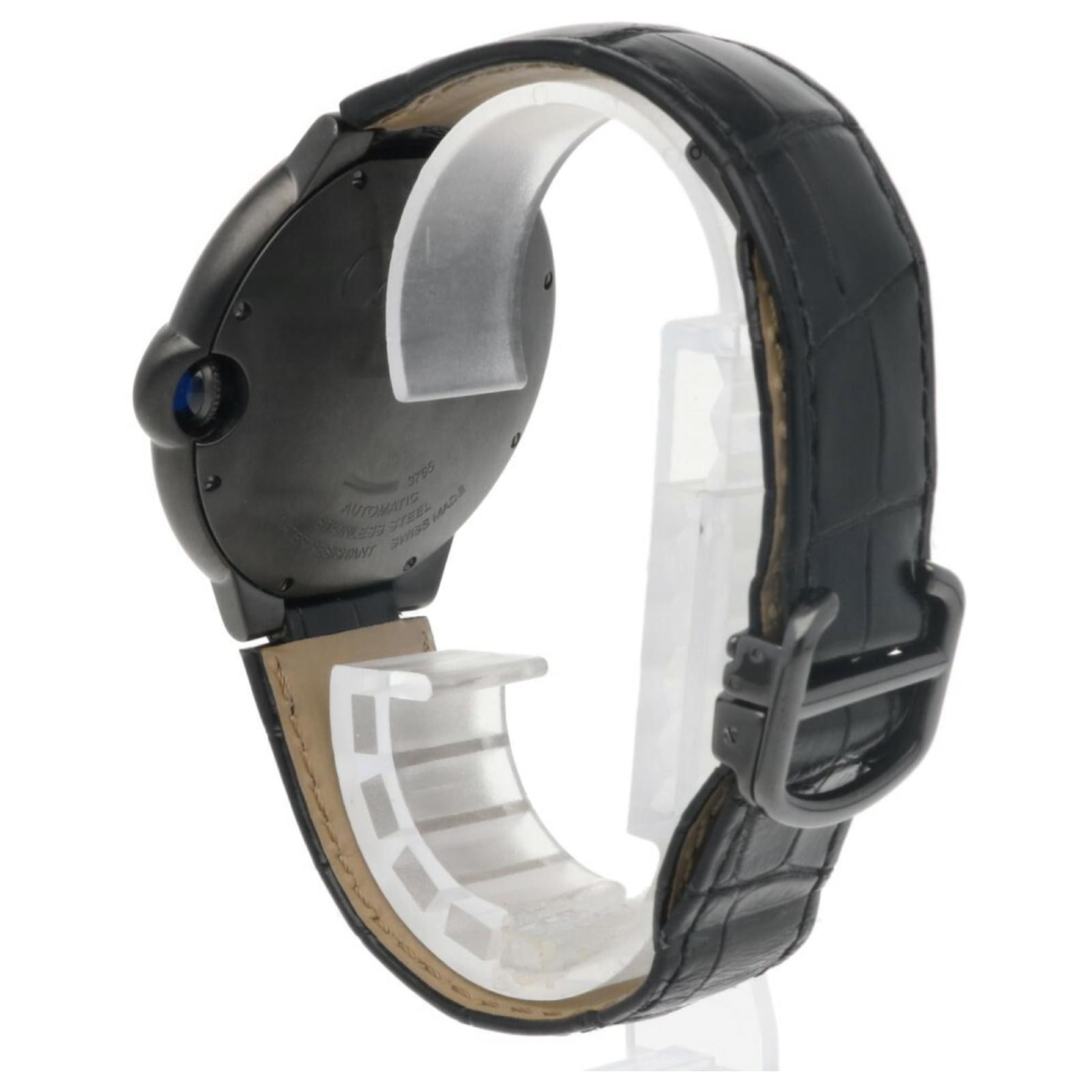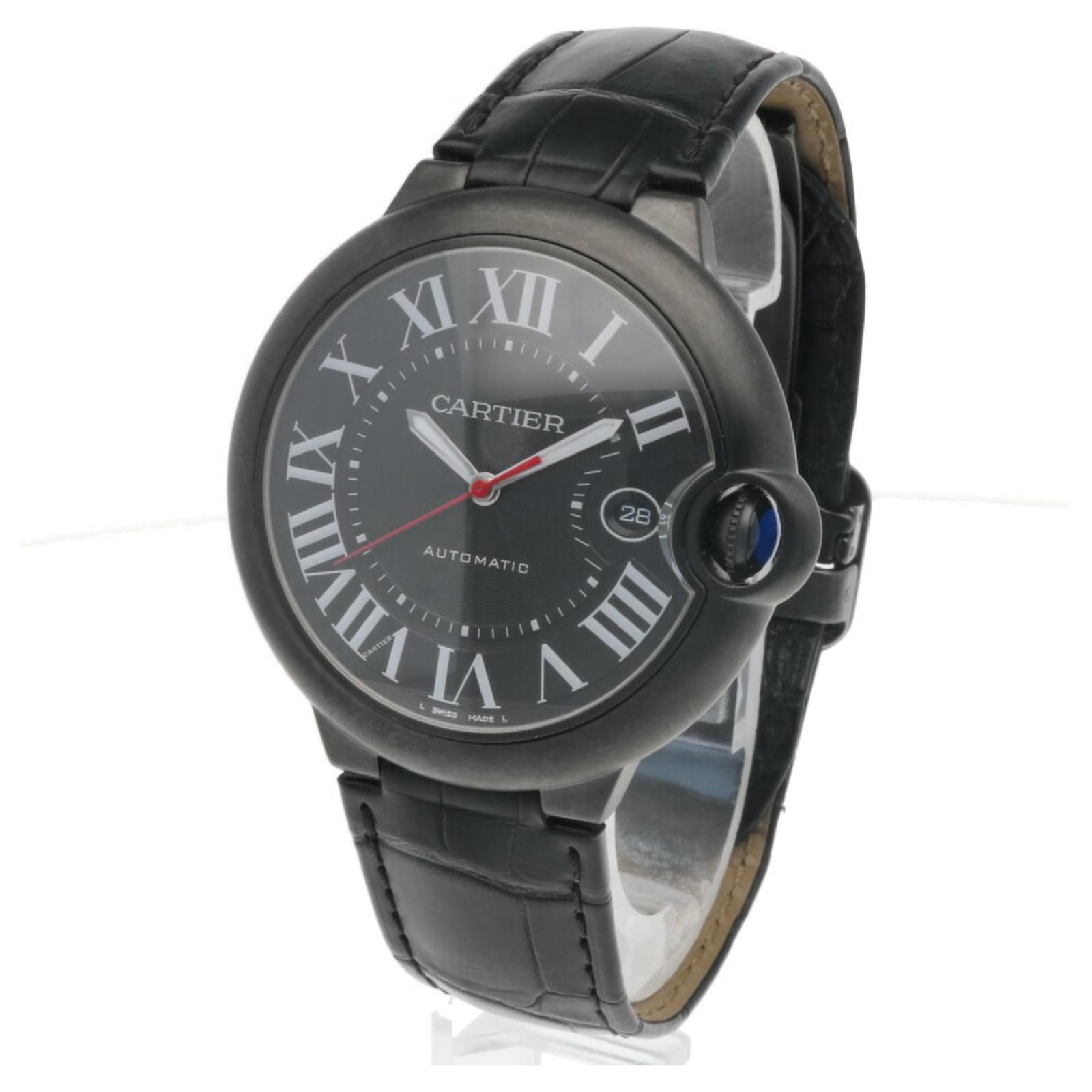 The Cartier Ballon Bleu ADLC Coated Watch is a men’s wristwatch crafted from stainless steel, featuring both a stainless steel case and band. This self-winding automatic timepiece has a wrist size of 18.5cm (7.28 inches). The watch is in good used condition, with slight scratches on the bezel, case, and crown, as well as minor creases on the band. The maintenance has been performed through an overhaul, ensuring its functionality. There are no scratches on the dial or glass, and the overall appearance shows traces of usage. Potential buyers are encouraged to review the images for a detailed view of the watch’s condition and included accessories.