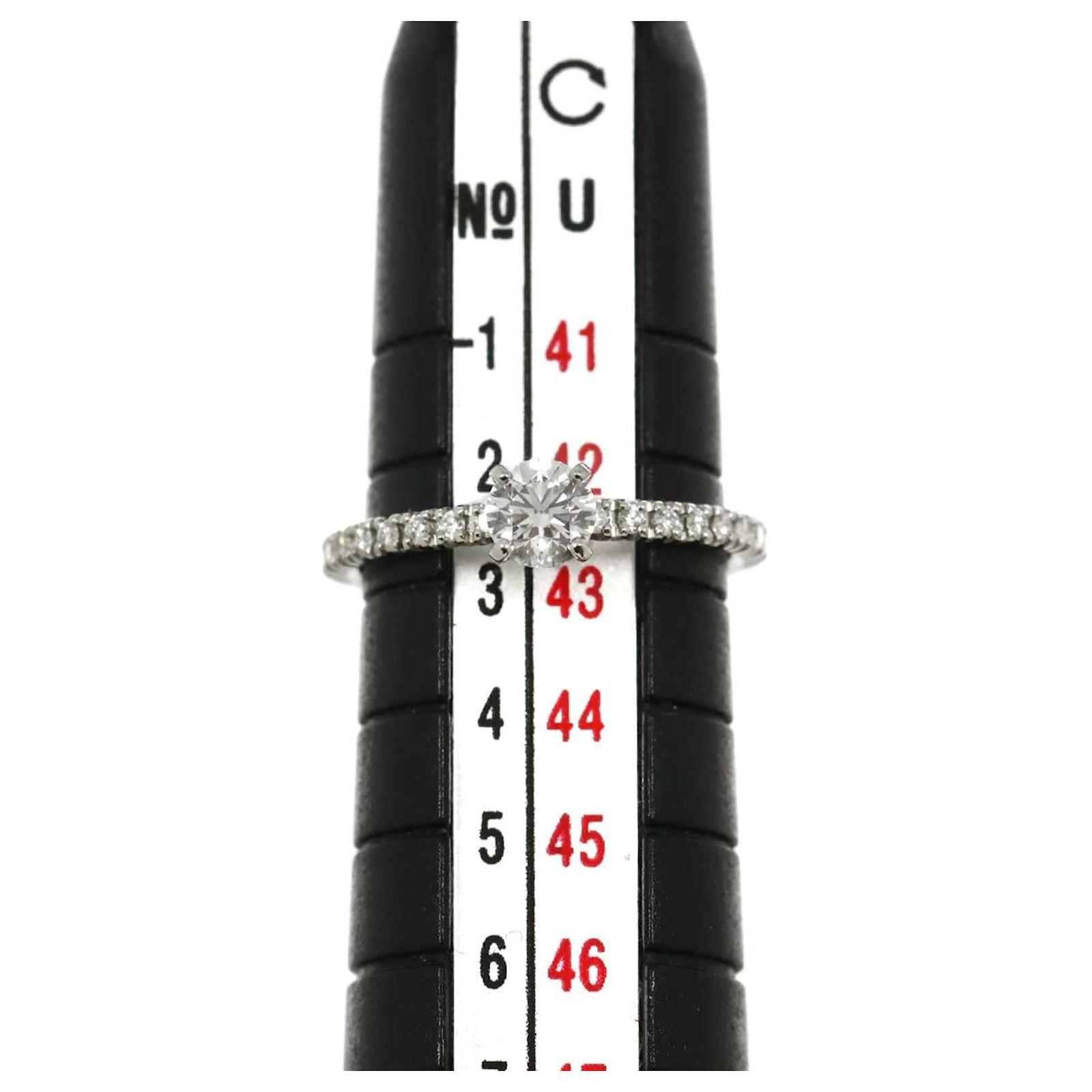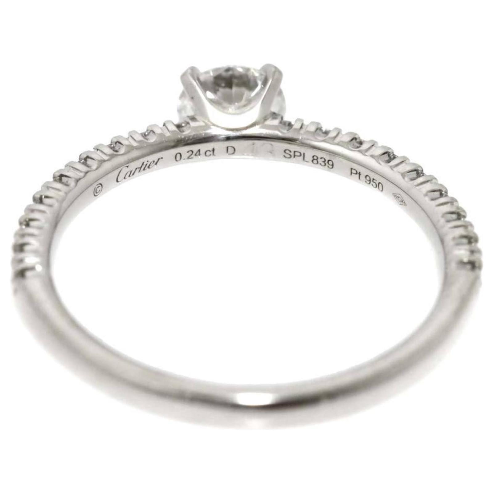 This Cartier Ethancel band ring is crafted from Platinum 950 and features a half diamond design with a total weight of 0.24ct, graded F VVS1. The ring is available in a Japanese size 3, which corresponds to a US size 2.5. \n\nThe item is classified as used but is in like-new condition, with insignificant traces of use, scratches, and dirt. It has been polished for maintenance. Included with the ring is a diamond grading report, and potential buyers are encouraged to review the images for a detailed view of the item’s condition and included accessories.
