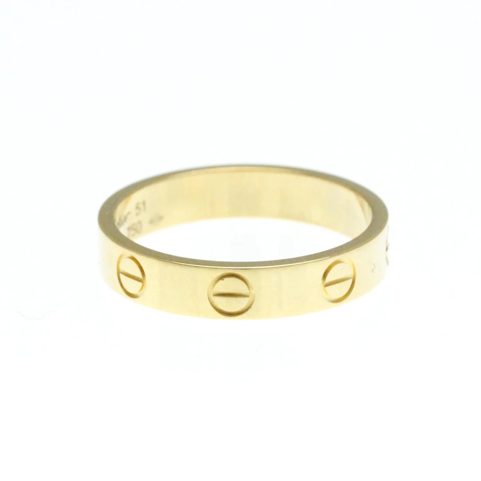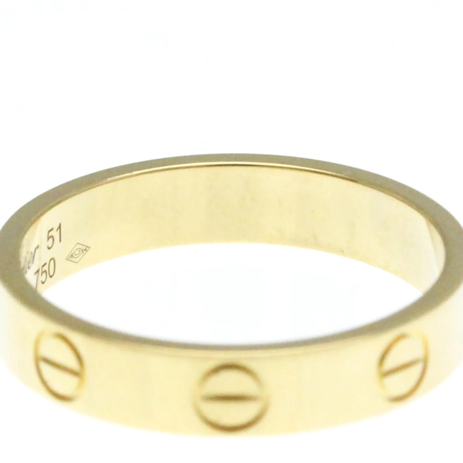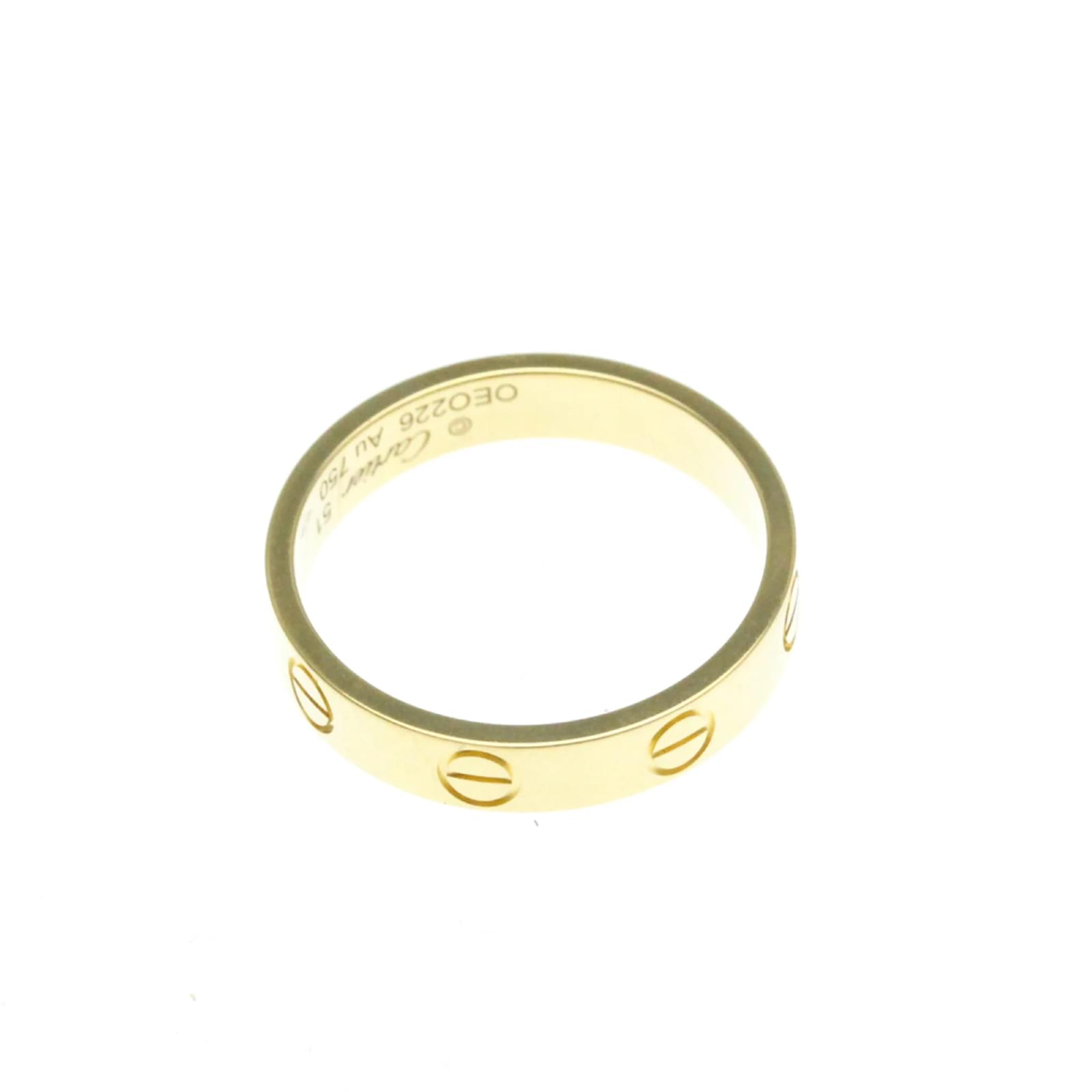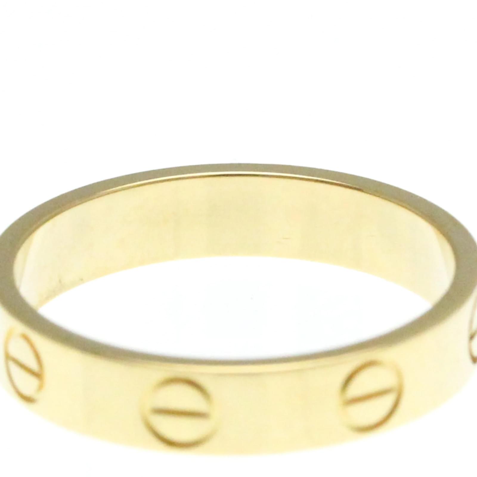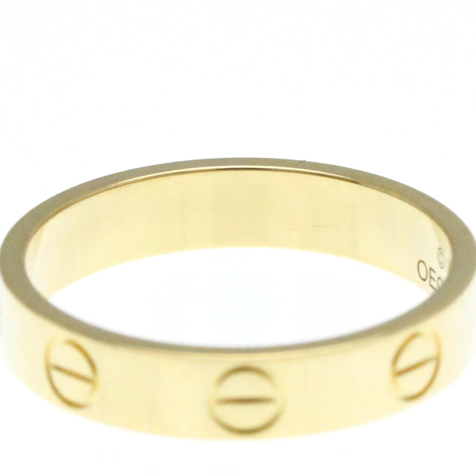 The Cartier Mini Love Ring is a fashion band ring crafted from 18K yellow gold. This piece features a simple yet elegant design, with no stones, making it a versatile addition to any jewelry collection. It has a width of 3.7mm and weighs 3.2 grams. \n\nThis ring is a size 11 in Japanese sizing, equivalent to a brand size of 51 or a US size of 5 3/4. It is in very good used condition, showing only insignificant scratches and traces of usage, and has been polished for maintenance. The ring comes without any accessories and has a serial number of OEO226.