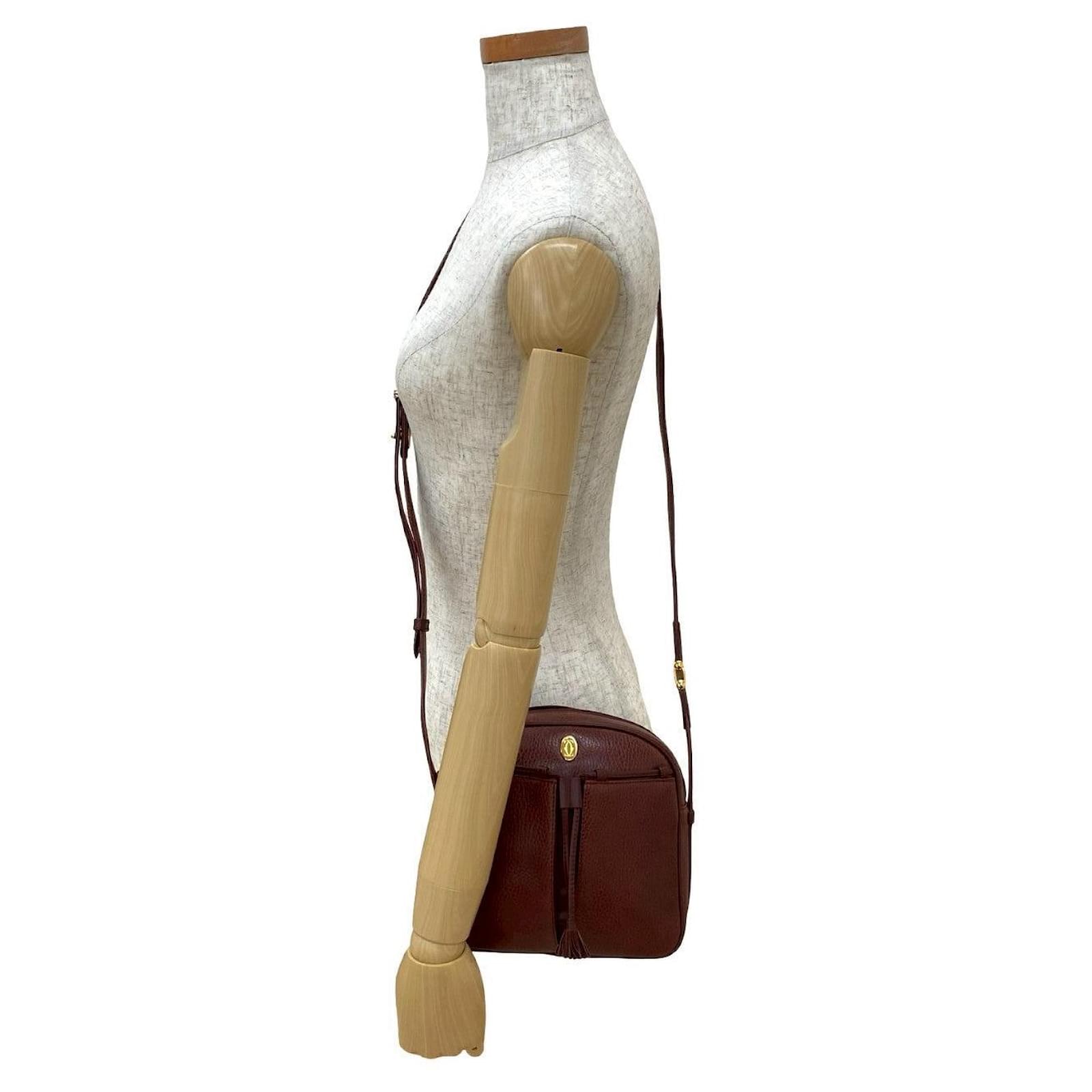 – General information -\nBrand : CartierItem name : Cartier Must Line Leather Mini Shoulder BagModel number : – Design -Type : Shoulder BagMaterial : LeatherColor : MaroonGender : Female- Size -Size : Length : 19Height : 19.5Depth : 5Shoulder strap : 134Item Material : LeatherItem Series : Must LineItem Color : BordeauxClosure Type : ZipperInterior : Main compartment x 1- Inventory -Serial Number : SKU : 120210009720000A0025837870- Included Items -Accessories : Dust Bag*Before purchasing, please refer to the images of the accessories included with the item.- Condition -Condition : Very Good ConditionRank : Used A Used condition with some scratches and stains.Condition Notice : Before purchasing, please refer to the images for the exact condition of the item. Measurments: width: 50 mm length: 190 mm height: 195 mm strap length: 1340 mm \n Product Id: 524354 \n