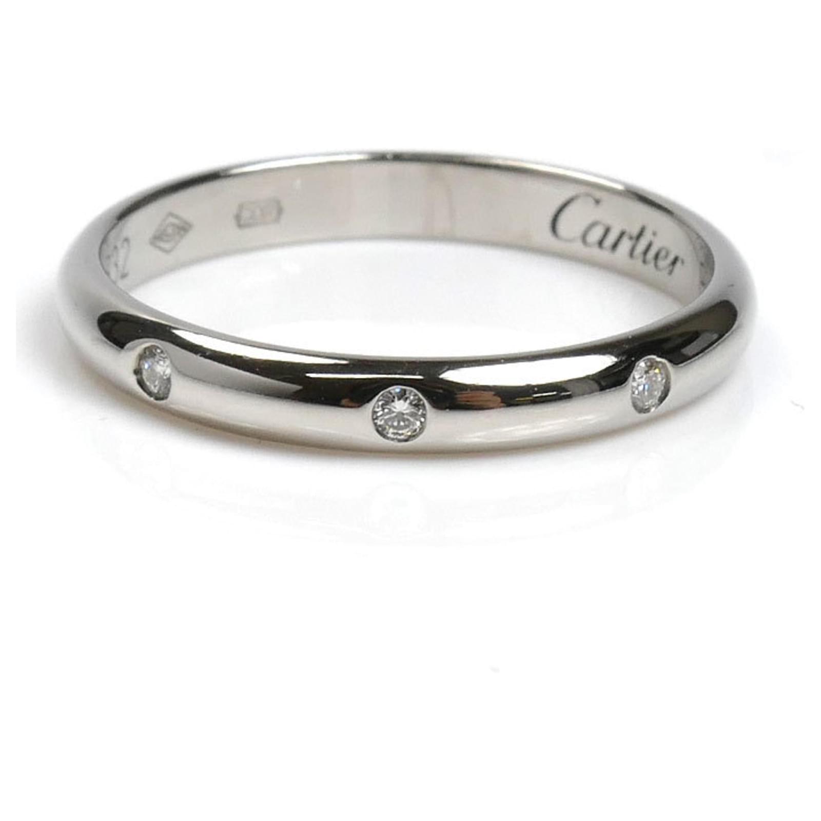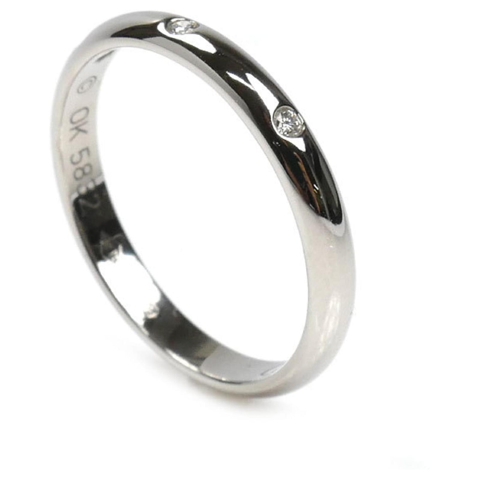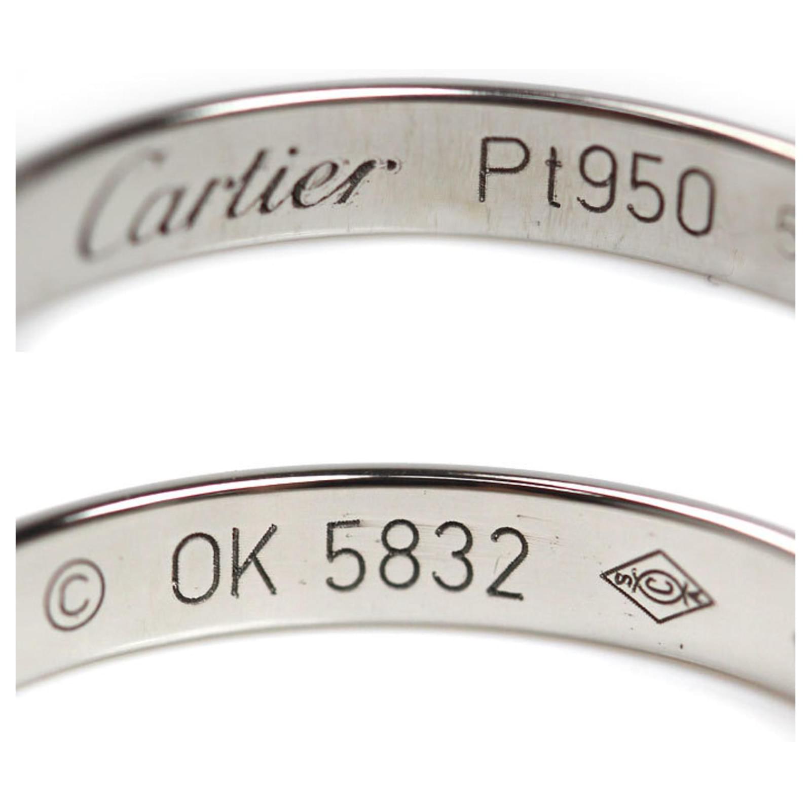 This Cartier band ring is crafted from Platinum 950 and features a diamond accent, making it a refined choice for a wedding band. It is available in a brand size of 50, equivalent to a US size 5.5. The ring is in very good used condition, with only insignificant traces of use, scratches, and dirt. It has been polished for maintenance. Included with the ring is a box, and potential buyers are encouraged to review the images for a detailed view of the item’s condition and included accessories.