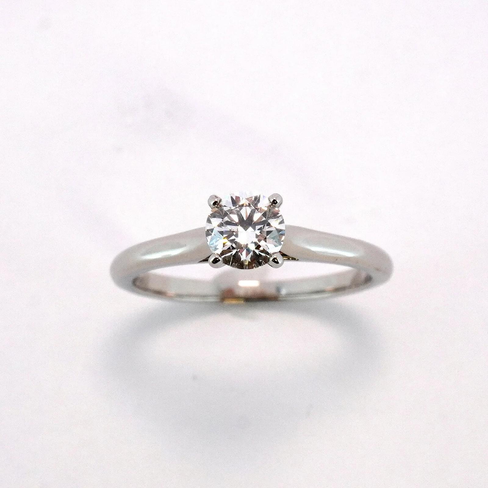 This Cartier band ring is crafted from Platinum 950 and features a diamond weighing 0.36 carats. It is designed as a solitaire piece, making it a classic choice for any occasion. The ring is a brand size 48, equivalent to a US size 4.5. \n\nThe item is pre-owned and classified as being in good condition, with slight traces of use, including minor scratches and dirt. It comes with a sale certificate, and potential buyers are encouraged to review the provided images for a detailed view of the ring’s condition and included accessories.