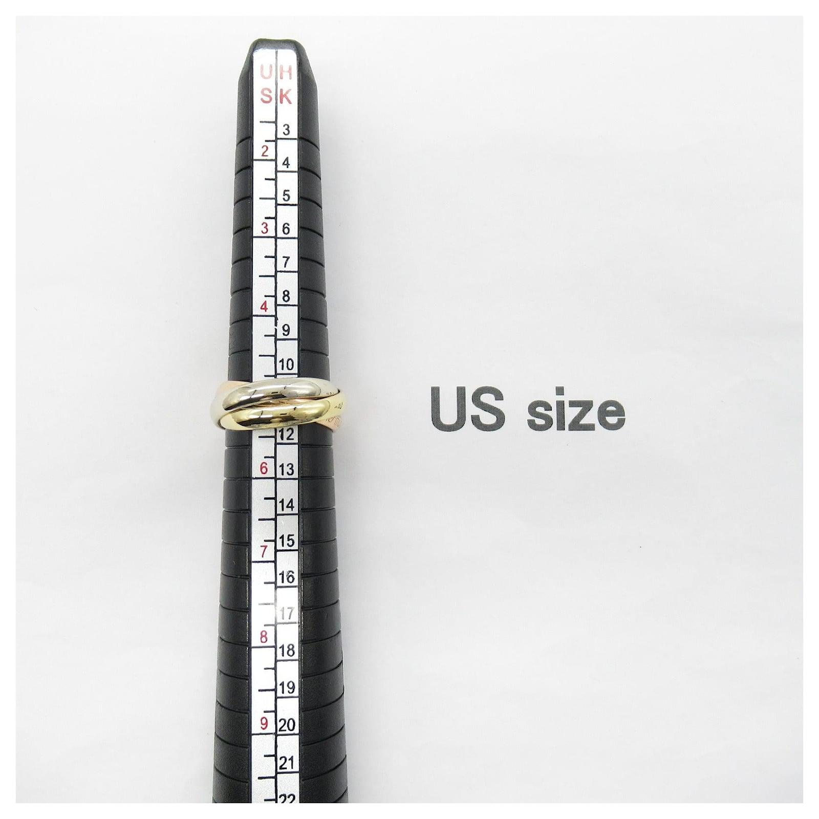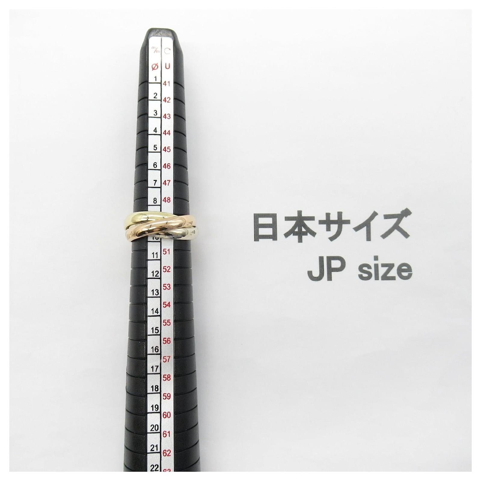 Brand Name: Cartier; Condition: Very Good; Category: Jewelry; SubCategory: Ring; Product Name: Cartier Trinity Ring K18 Gold; Style: Ladies; Weight (g): 6.9; Color: Gold; Material: K18 (Yellow Gold) × K18WG (White Gold) × K18 (Pink Gold); Size: JP | 10; \n Product Id: 516392 \n