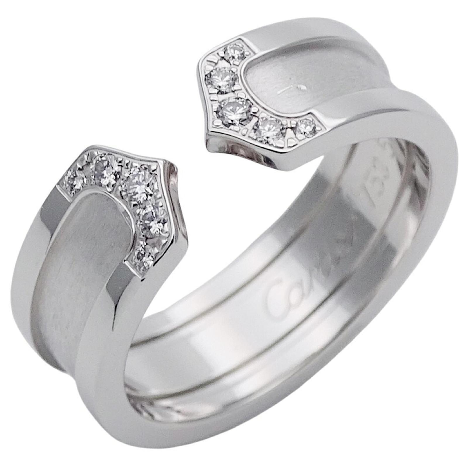 This Cartier band ring is crafted from 18K white gold, featuring a polished finish that enhances its elegant design. Suitable for both men and women, it is identified by the model number C2 and is a size 11 in Japanese sizing, equivalent to a US size 6. The ring is in used condition, classified as \”like new\” with hardly any traces of usage, and has been well-maintained through polishing. Please refer to the images for a detailed view of the item’s condition, as no accessories are included with the purchase.