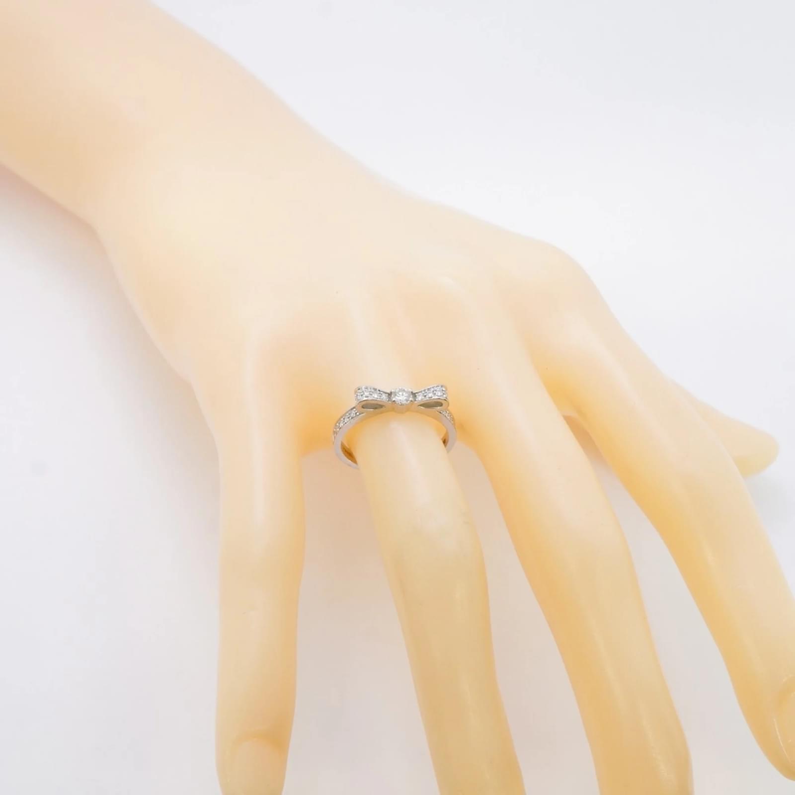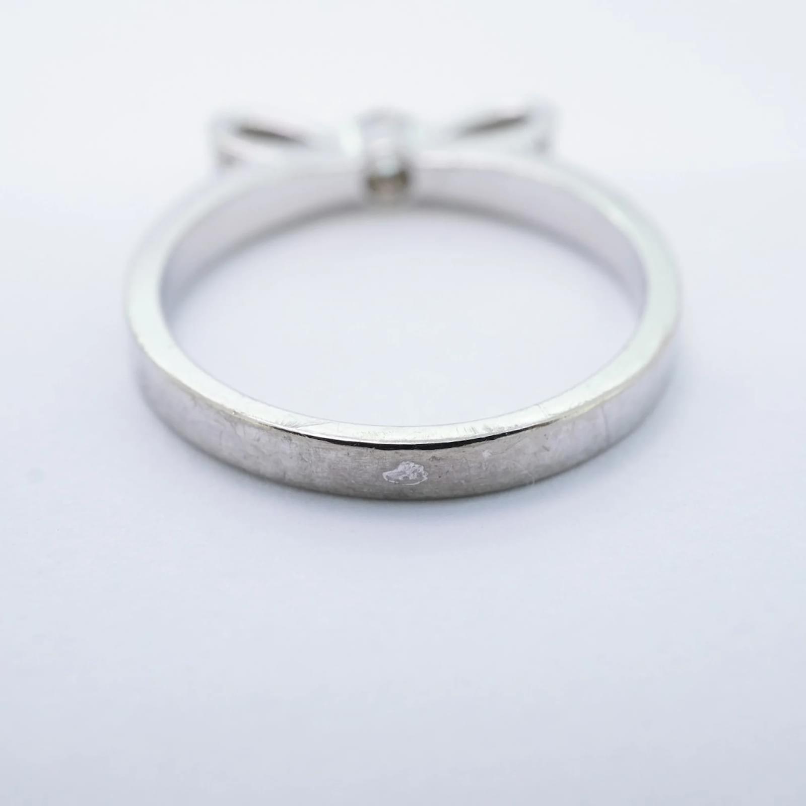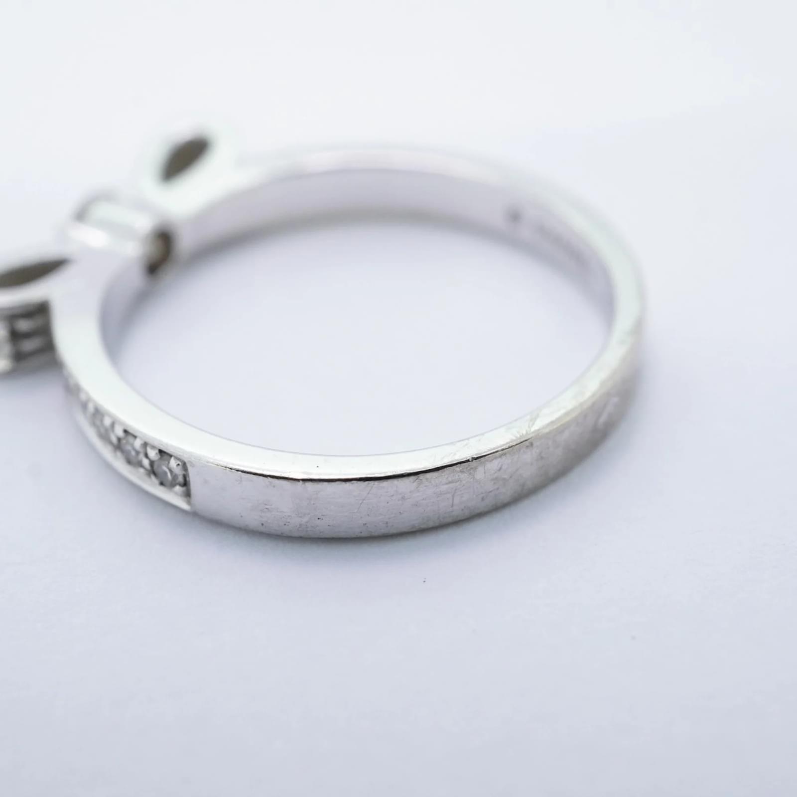 This Chanel ring, known as the Ruban, is crafted from 18K white gold and features a diamond. It is designed as a band ring and is available in a brand size of 51, which corresponds to a US size 6. The ring is pre-owned and classified as being in good condition, with slight traces of use, including minor scratches and dirt. Potential buyers are encouraged to review the images for a detailed view of the item’s condition. No additional accessories are included with the purchase.