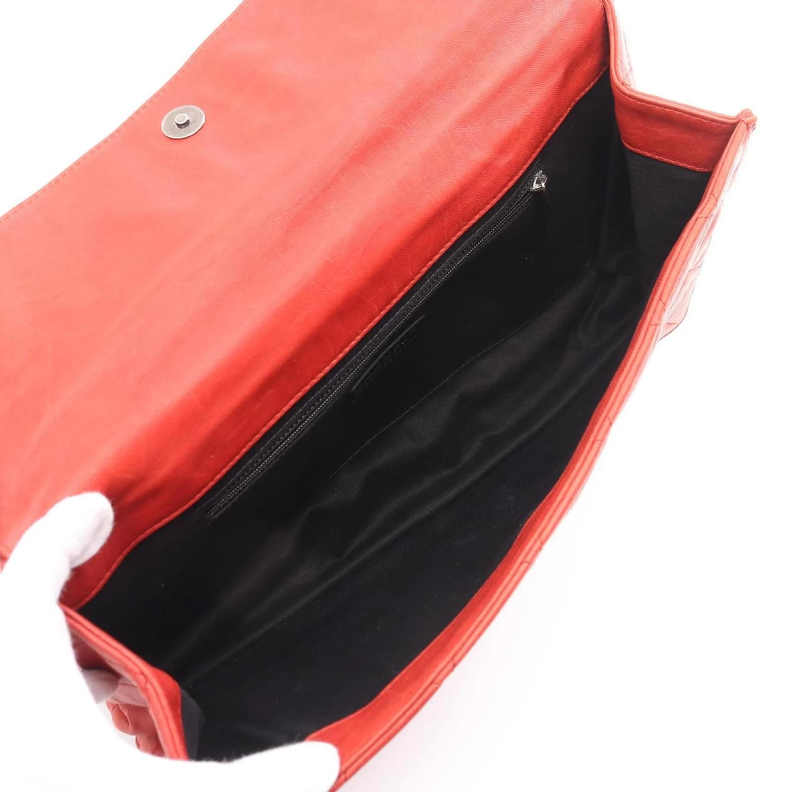 This Chanel 2.55 Matelasse Shoulder Bag is crafted from lambskin leather in a vibrant red color. The bag measures 27cm in height, 36cm in width, and 9cm in depth, making it a practical choice for daily use. It is categorized as used but is in good condition, with slight traces of usage, scratches, and dirt. The seller ranks it as Rank AB, indicating it has been well-maintained despite visible signs of wear. Potential buyers are encouraged to review the provided images for a detailed view of the bag’s condition and included accessories.
