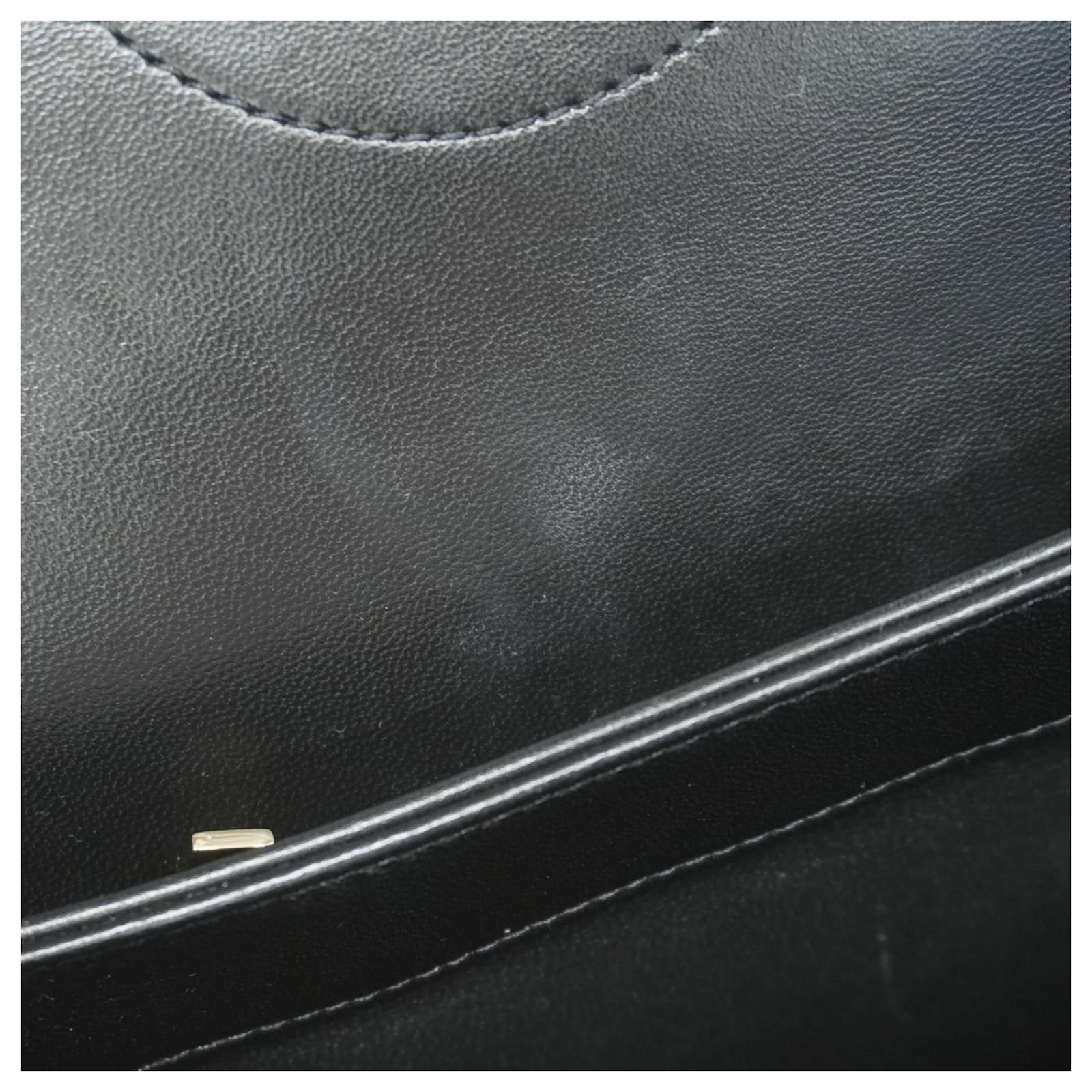 This Chanel handbag is crafted from luxurious lambskin leather in a classic black color, complemented by champagne gold hardware. With dimensions of 18.5cm x 24.5cm x 9cm, it is designed for both style and practicality. The handbag is categorized as used but remains in very good condition, showing only insignificant traces of use, scratches, and dirt. It is important to review the provided images for a clear understanding of its condition. This item does not include any additional accessories.