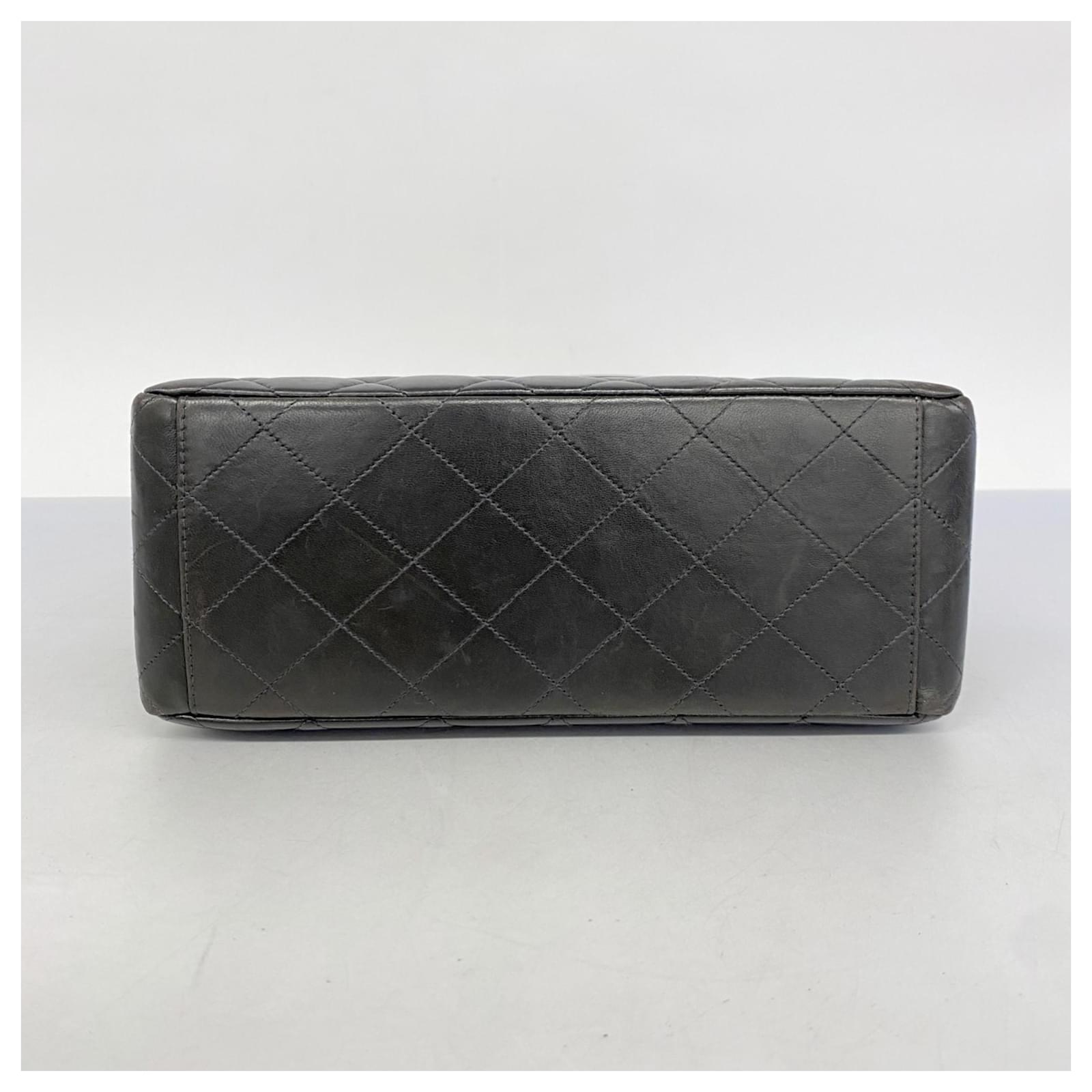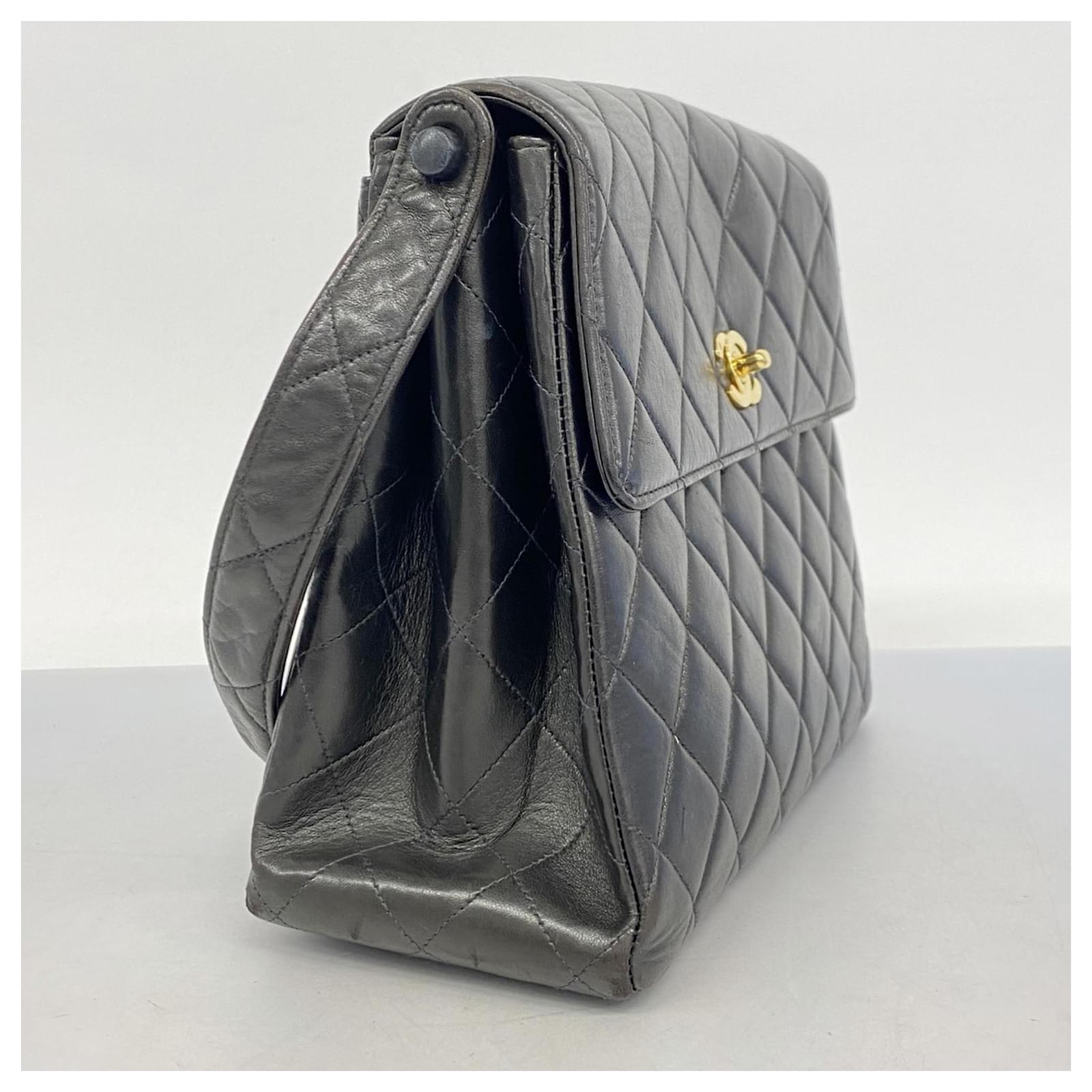 This Chanel shoulder bag is crafted from lambskin leather in a classic black color, featuring gold hardware that adds a touch of elegance. The bag measures 21.5cm in height, 26.5cm in width, and 10cm in depth, making it a practical choice for daily use. \n\nIt is categorized as used but remains in good condition, with slight traces of usage, including minor scratches and dirt. Potential buyers are encouraged to review the provided images for a clear understanding of the item’s condition. This bag does not come with any additional accessories.