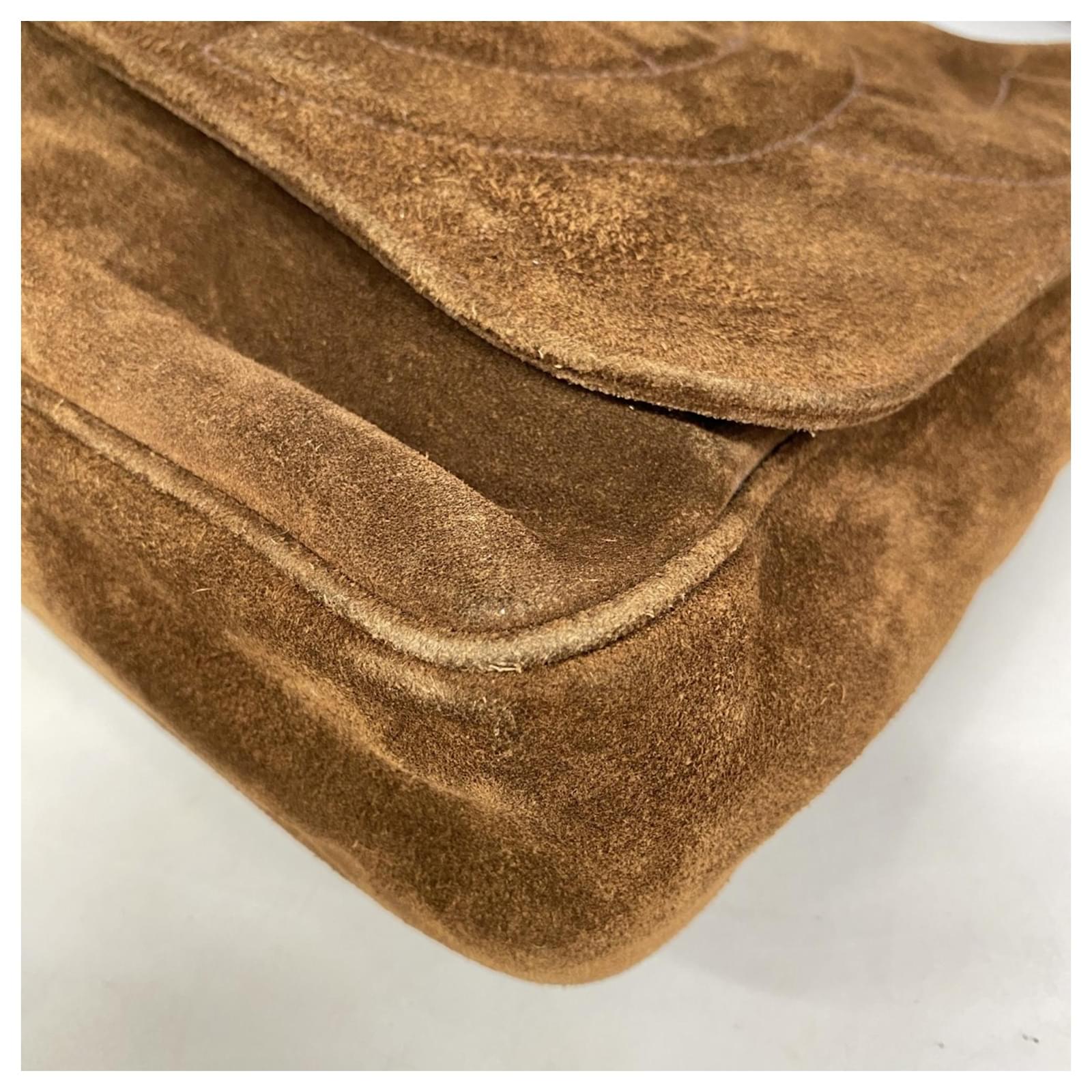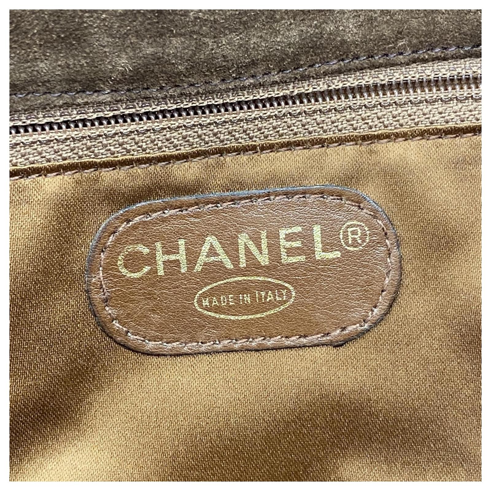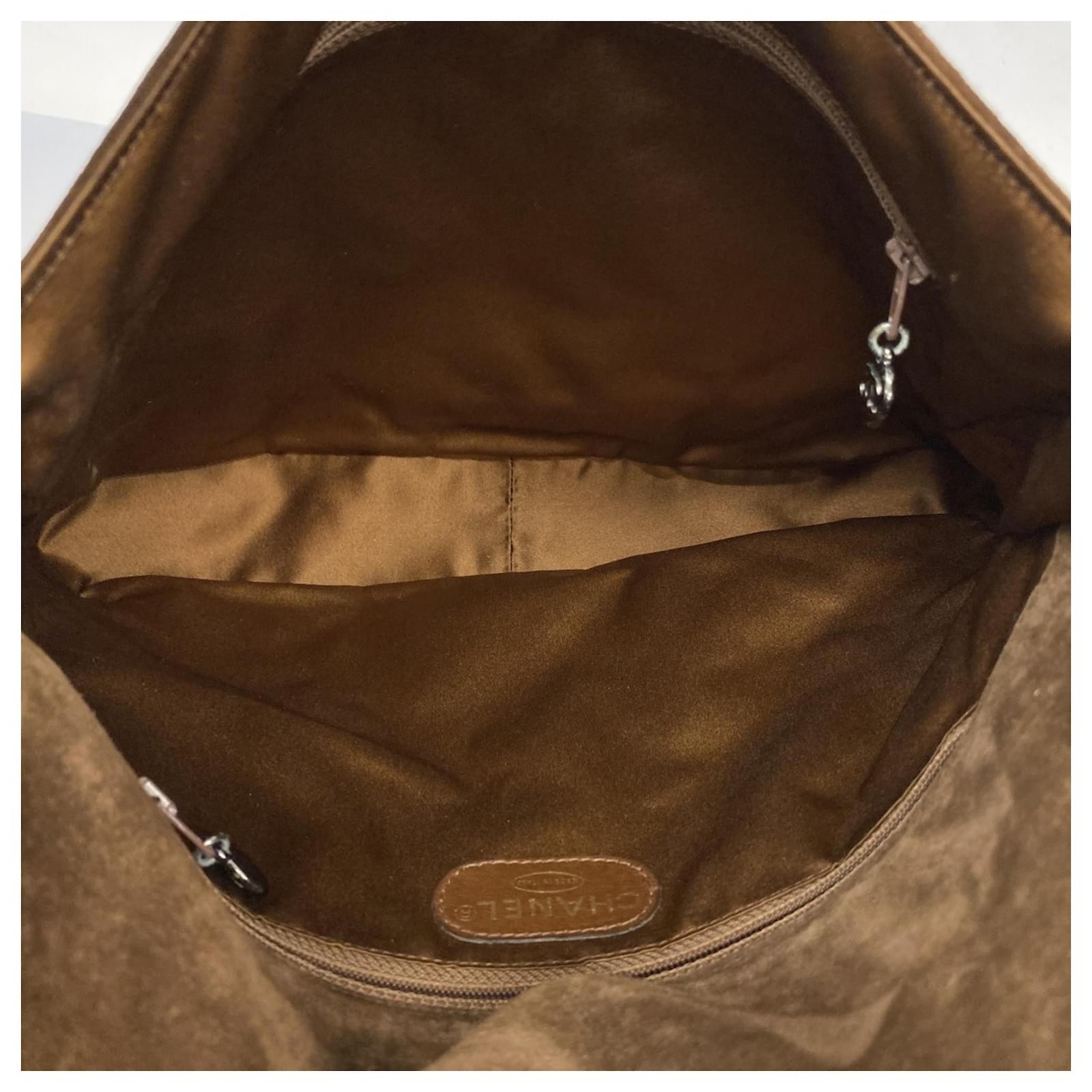 This Chanel shoulder bag features a classic design in brown suede, complemented by silver hardware. With dimensions of 27cm x 30cm x 7cm, it offers a practical size for everyday use. The bag is categorized as used but remains in good condition, showing slight traces of use, including minor scratches and dirt. It comes with a guarantee card, and potential buyers are encouraged to review the images for a detailed view of its condition and included accessories.