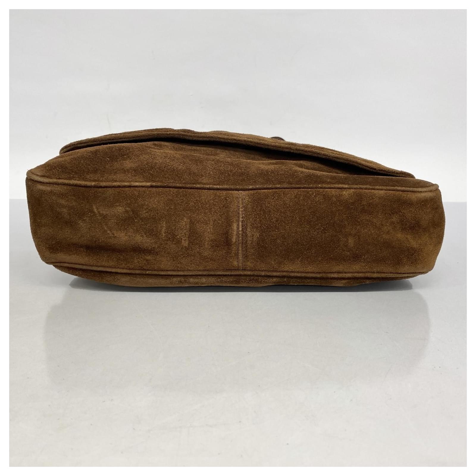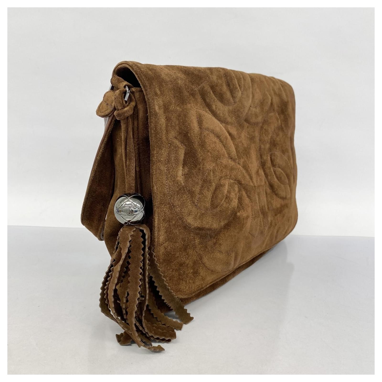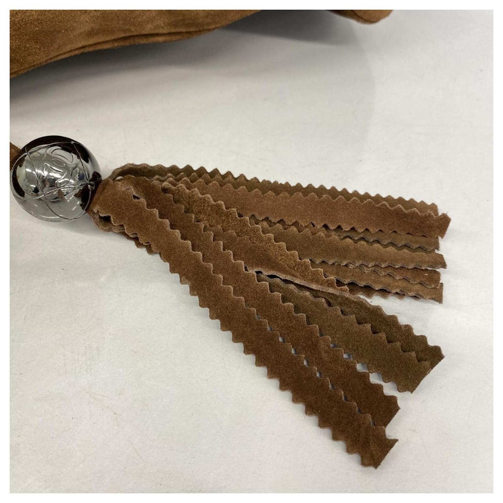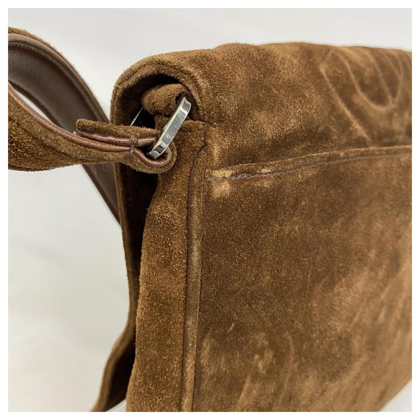 This Chanel shoulder bag features a classic design in brown suede, complemented by silver hardware. With dimensions of 27cm x 30cm x 7cm, it offers a practical size for everyday use. The bag is categorized as used but remains in good condition, showing slight traces of use, including minor scratches and dirt. It comes with a guarantee card, and potential buyers are encouraged to review the images for a detailed view of its condition and included accessories.