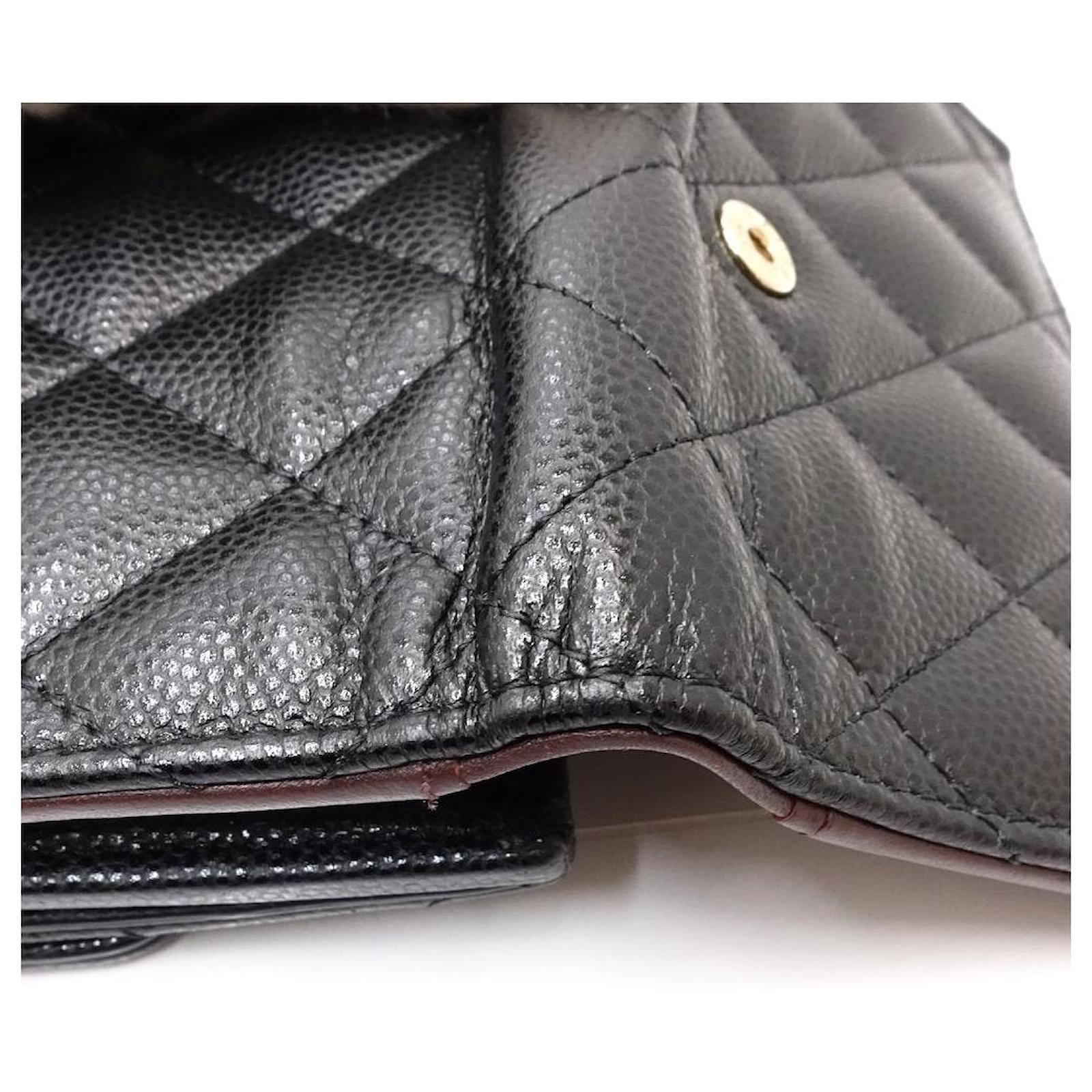 – General information -\nBrand : ChanelItem name : Chanel Classic Small Flap Wallet Leather WalletModel number : AP0230 – Design -Type : Short WalletMaterial : LeatherColor : BlackGender : Female- Size -Size : Item Material : Caviar SkinItem Series : Matelasse ClassicItem Color : BlackClosure Type : FlapInterior : Bill compartment, Coin pocket, Card slotsExterior : Quilted leather, Snap button, Metal logo- Inventory -Serial Number : SKU : 120220034884000A0025852911- Included Items -Accessories : Authenticity Card*Before purchasing, please refer to the images of the accessories included with the item.- Condition -Condition : Very Good ConditionRank : Used A Used condition with some scratches and stains.Condition Notice : Before purchasing, please refer to the images for the exact condition of the item. Measurments: width: 1 mm length: 1 mm height: 1 mm strap length: 1 mm handle drop: 1 mm \n Product Id: 526923 \n
