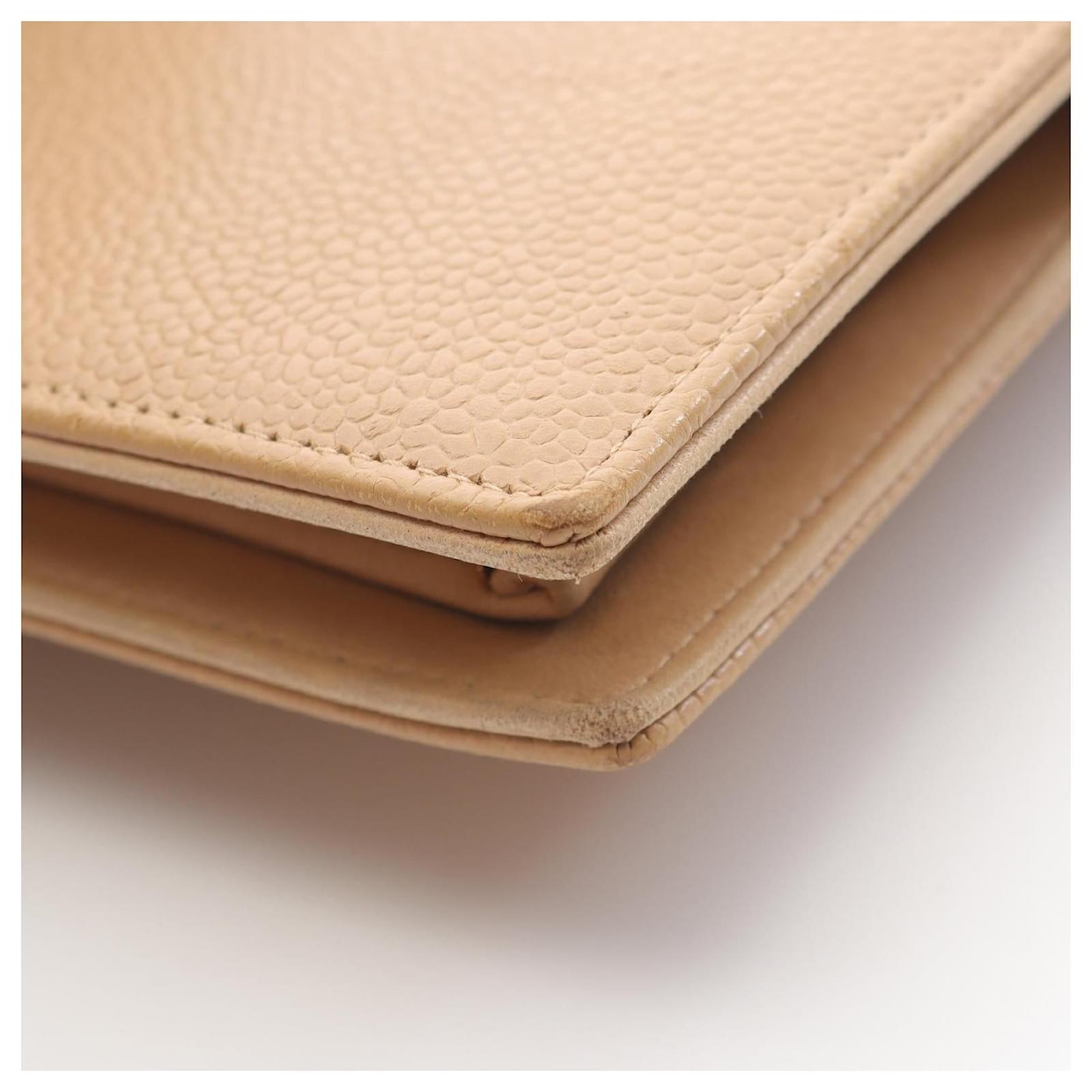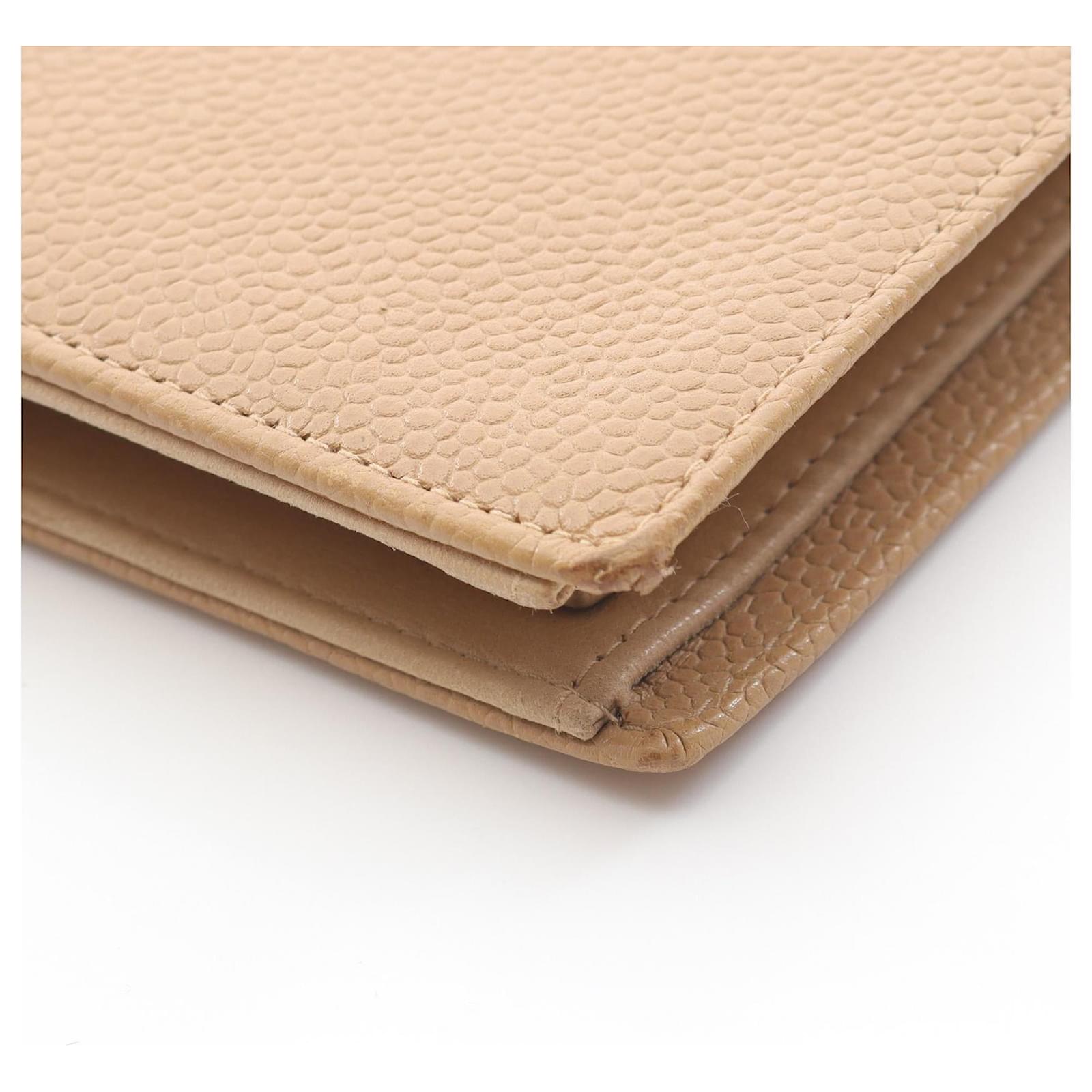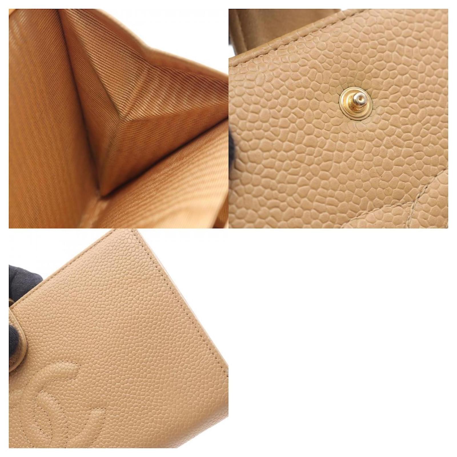 – General information -\nBrand : ChanelItem name : Chanel Coco Mark Grained Calfskin WalletModel number : – Design -Type : Short WalletMaterial : LeatherColor : BeigeGender : Female- Size -Size : Item Material : Grained Calfskin LeatherItem Series : Coco MarkItem Color : BeigeClosure Type : Kiss LockInterior : Bill compartment, Coin pocket, Card slotsExterior : Coco Mark logo, Grained leather, Gold-tone hardware- Inventory -Serial Number : 6311722SKU : 120220016065000A0025852136- Included Items -Accessories : null*Before purchasing, please refer to the images of the accessories included with the item.- Condition -Condition : Good ConditionRank : Used A Used condition with obviously scratches and stains.Condition Notice : Before purchasing, please refer to the images for the exact condition of the item. Measurments: width: 1 mm length: 1 mm height: 1 mm strap length: 1 mm handle drop: 1 mm \n Product Id: 526949 \n